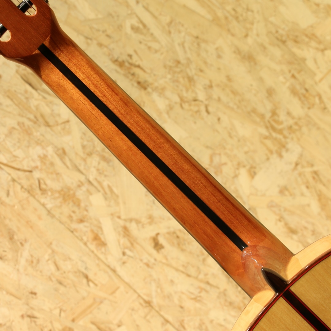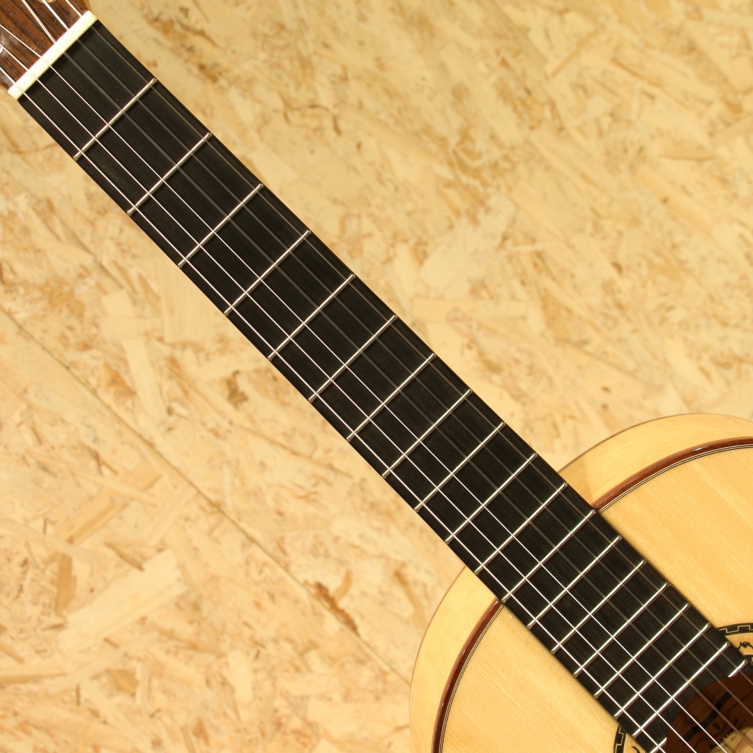 スペインのブランド”Francisco Bros”自分のアイデア、構想、そしてギター製作技術を応用したいという願望から、妻のエルミニアとともに、過去数年間に二人で得た経験を生かして、自分たちの弦楽器製作工房を始めるという重要な一歩を踏み出しました。本器はフラメンコの基本的な表現の一つであるソレアにちなんで名付けられた”Solea Especial 2022年製USED品です。ジャーマンスプルーストップ、スパニッシュサイプレス(ヒノキ)サイド&バック、エボニー指板、ホンジュラスシダーネック、インディアンローズウッドブリッジ、ローズウッドバインディング、52mmナット幅、弦長650mm。ジャーマンスプルースならではの輪郭のはっきりとしたサウンド。スプルースの中でも硬めで弾力があり、上品できらびやかな印象を与えつつ、高音域のサスティンが心地よいスパニッシュサイプレス材の特性で魅惑的な音色を奏でてくれます。ピックアップは2nd factor APU-1を搭載。超軽量に設計されたアルミ削りだしのパーツを使用。独自設計の構造により内部で響くエアー感を損なわずにクリアで分離感に富んだ抜けの良いサウンドが魅力的なピックアップです。ネック6弦側7fあたりに塗装の欠けが見られるものの表層のみでご使用上問題はございません。その他には光にかざせば視認できる程度の擦れキズがある程度と非常に綺麗なコンディションが保たれている本器。魔法のように鋭く響く音色と、うっとりするような響き。国内での流通量も少なくなかなかお目にかかれないブロスギター。汎用ハードケースが付属いたします。