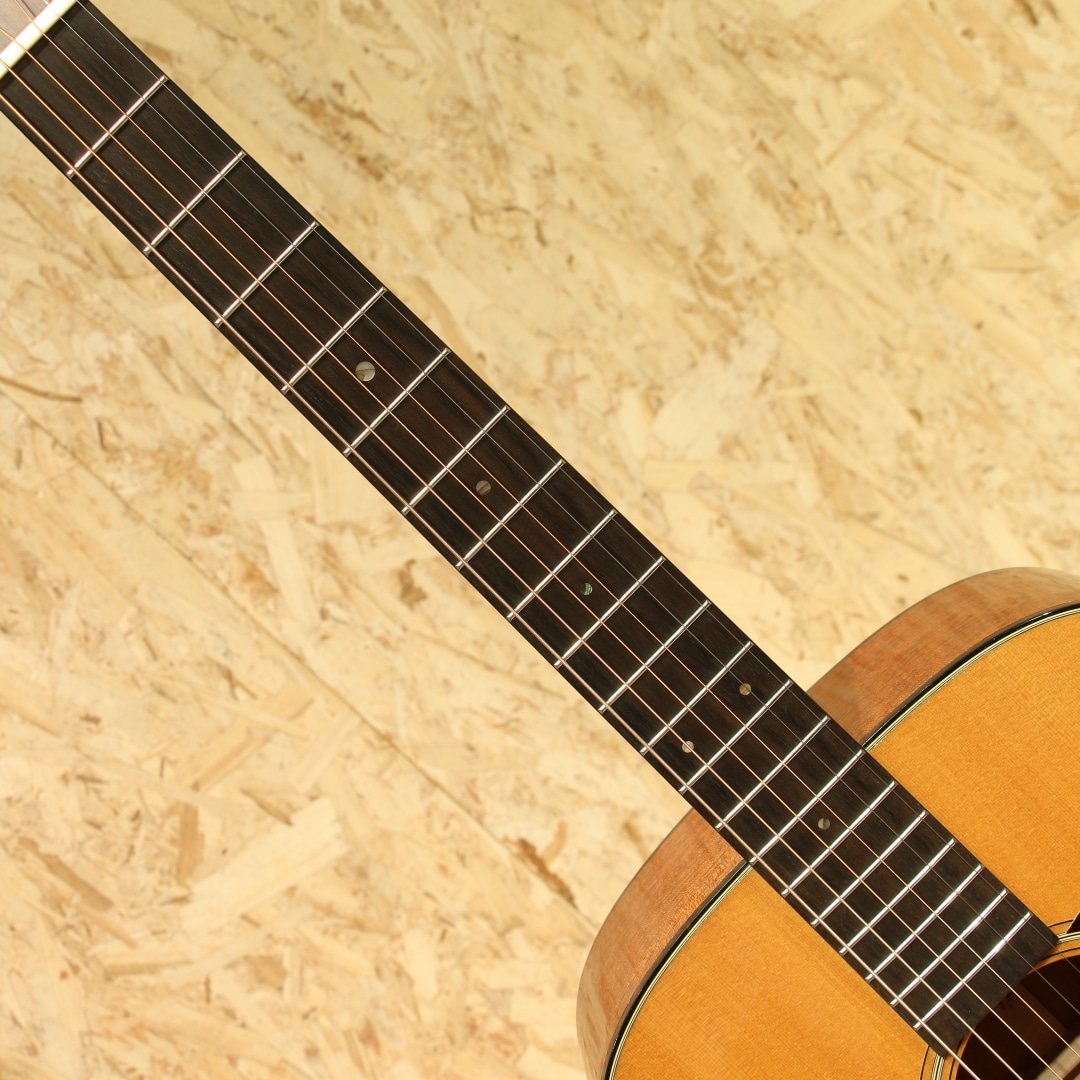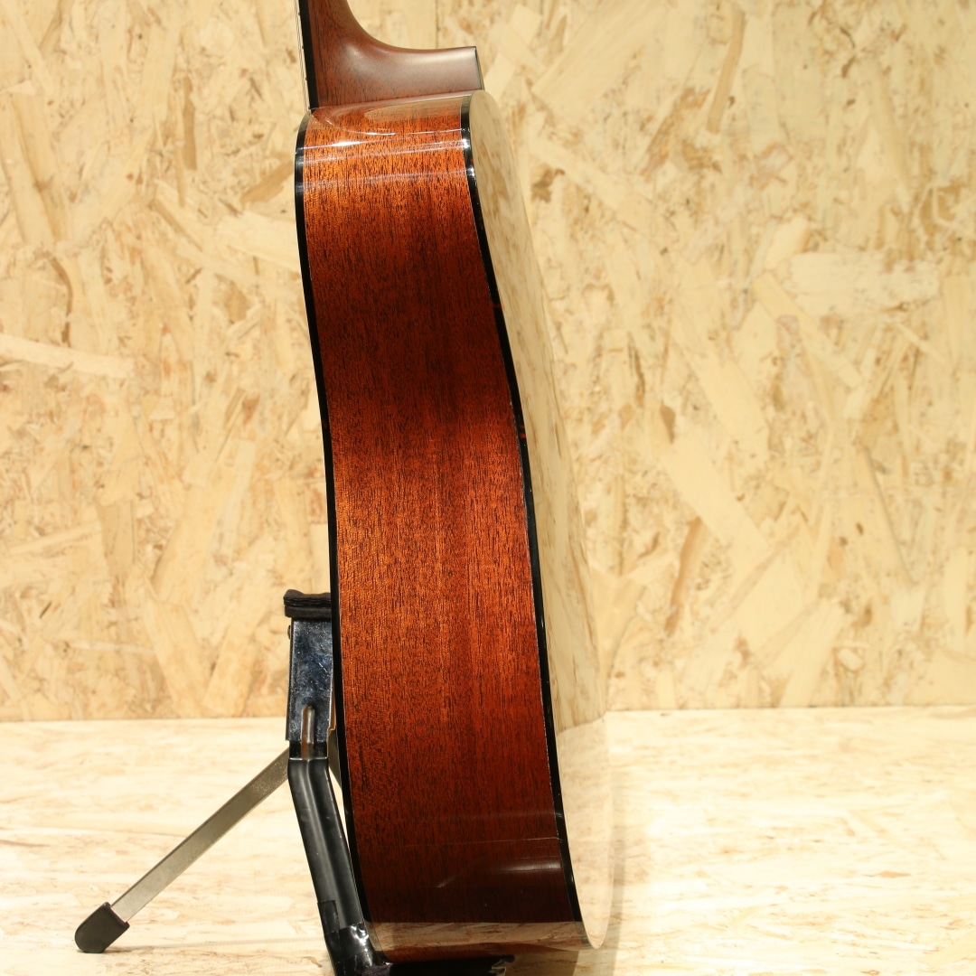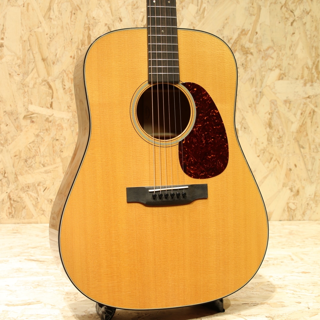 "D-28"とともに歴史を創ってきた、マーチンギターを代表するモデル"D-18"。シトカスプルーストップ、ジニュインマホガニーサイド&バック、エボニー指板&ブリッジ、グローバーオープンバックペグ、ヘッドデカールロゴ、アバロンドット指板インレイ、スタイル18ロゼッタ、べっ甲柄ピックガード、44.5mmナット幅、ハイフレット部まで薄いモディファイドロウオーバルネックシェイプ、フォワードシフテッド・スキャロップドXブレイシング。ブレイシングやPG、オープンバックのペグなど、戦前仕様を意識したトラッドなデザインながら、44.5mmナット幅にプレイアビリティの高いネック形状を持ち合わせたモダンなワールド・スタンダードモデル。躍動感のあるサウンド、ブライトな高音と深い低音。手元でボリューミーに鳴り、ストレスのない音抜けが爽快なトーン。28とは違う、マホガニーS&Bの18ならではの魅力を存分に楽しむことができる秀逸なモデルです。フラットピックを使ったプレイはもちろんのこと、レスポンスが良いのでフィンガースタイルでも気持ちよく扱えます。サドル部はスタンダードシリーズらしくショートサドルで、PUなどの搭載への拡張性も高い仕様。近年マーチンではよく見られるバインディング剥がれが4か所見られますが、全て修正済みで問題なく使用することが出来ます。ヘッド表の角に薄い当てキズが若干見られるのが非常に惜しい点、その他にはピックガードの薄い弾きキズやボディバックの薄い擦れキズ等と比較的キレイな状態を保たれたUSED品。ネックのコンディションも上々、サドル残りも充分と演奏性も憂いの無い抜群の状態をキープされております。これを知らなくてマーチンは語れない、永遠のスタンダード。28だと低音が出すぎる、重たすぎると感じる方にもオススメです。是非ご検討下さいませ。