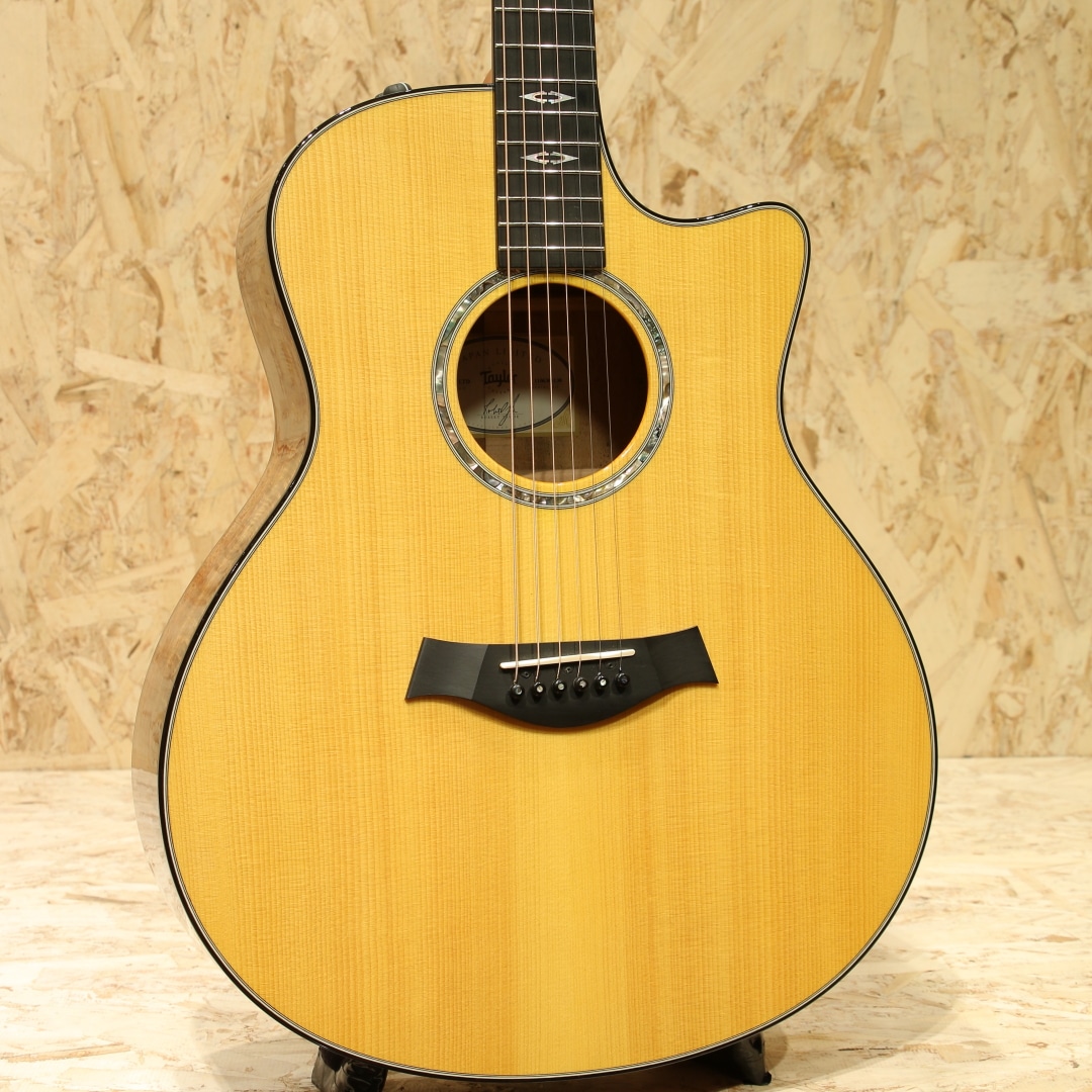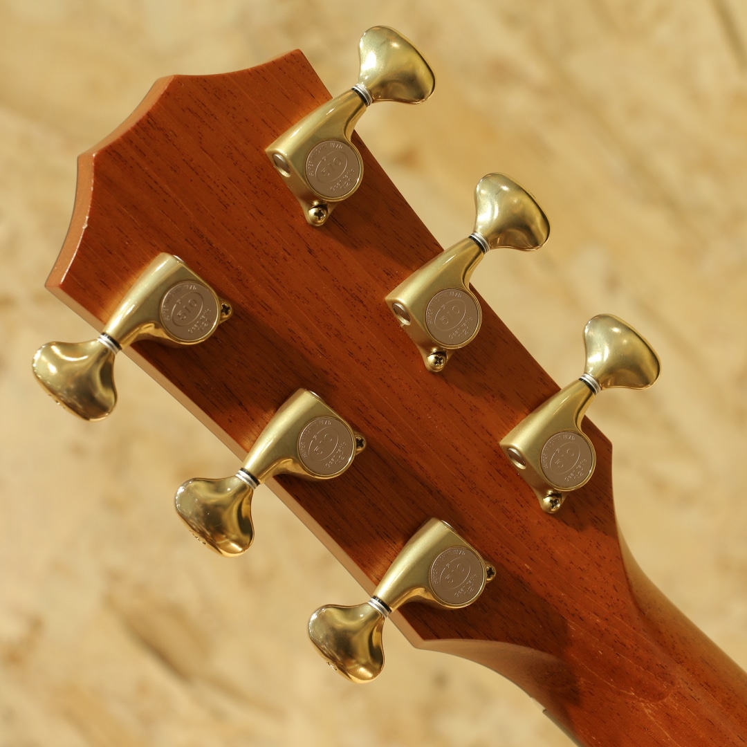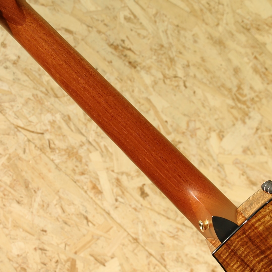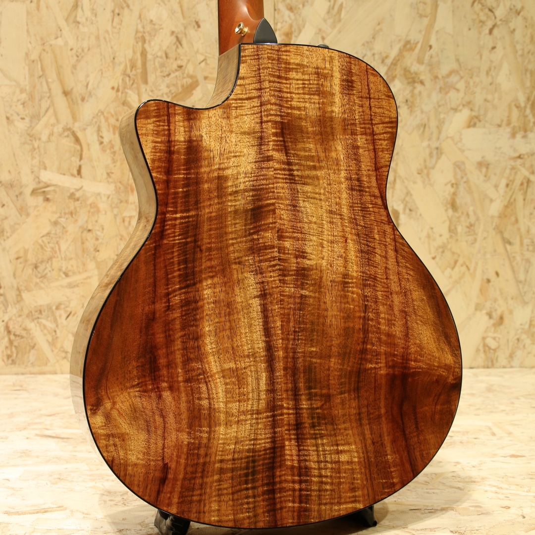 1974年にボブ・テイラーとカート・リスタグの2人によって創立されたテイラー・ギター。革新的なアイデアと高い技術力、ハイセンスなマーケティングで2000年代より急速に成長し、今や世界のトップアコースティックブランドとして、一般ユーザーからプロミュージシャンまで、幅広い層から確固たる支持を得ています。本器はテイラーのラインナップ上杢目が特徴的な”Kシリーズ”。ハワイアンコアのエキゾチックな杢目を活かした高級なシリーズ、日本限定モデルとして製作された機種”K16ce LTD”。2016年製USED品。アディロンダックスプルーストップ、ハワイアンコアサイド&バック、エボニー指板&ブリッジ、ノンピックガード、ベネチアンカッタウェイ、グロストップ仕上げ、スキャロップブレイシング、オリジナルES2ピックアップ搭載。テイラーは木材の保護活動も行っており、カメルーンでエボニーの植林を行う等ギターを作りながら環境にも配慮した製作を行っています。その一環でハワイ島のコアの森を復元・再生活動も行いサスティナビリティのあるモノづくりを現在においても継続しています。その保護している木材であるハワイアンコアを贅沢に使用した高級シリーズがKシリーズ。本器はテイラーのオリジナルシェイプの中でも中間的なサイズに位置するグランドシンフォニー(GS)サイズ。お馴染みの薄めネックで細やかなフレーズも演奏しやすく握り込みやすいグリップ、カッタウェイも搭載されハイポジションまでも弾きやすい仕様とされています。トップにアディロンダックスプルースを採用しているだけあり、太く躍動感のあるサウンド。ですがサイドバックもハワイアンコア材がパリッとした中高音から高音にかけてピークのある材のため、キラっとした煌びやかさも持ち合わせています。艶やかでもたつきの無いスッキリとした響き、各弦の分離感もありますが、適度に混じって纏まる等オールマイティにこなせるポテンシャル。元より上品なサウンドを生み出すテイラーらしいトーン、よりダイナミックで華やかな音色を味わえる限定モデルです。ピックアップシステムにはテイラー独自のシステムES2を搭載。テイラーが研究しサドルの動きが上下ではなく前後である事を突き止め、それを基にサドル横にピエゾを仕込んだ構造。エア感のあるナチュラルなサウンドを出力することが出来ます。EQを掛けて出力可能、コントロールはVol,Treble,Bassと非常にシンプルな構成。簡単な操作で最適なサウンドを造りやすい人気の高い優秀なシステムです。ヘッド先端に薄い当てキズが見られるのが非常に惜しい点。その他ヘッド表とボディバックに極々僅かな範囲に擦りキズが見られますが、非常に使用感の薄い状態をキープされています。ネックコンディションもストレートを保たれ抜群の演奏性、弦高も現代の標準弦高に揃えられておりモダンなテイラーの演奏性を存分に体感できる1本です。サイドバックの贅沢にびっしりと入った杢、眺めて良し弾いて良しサウンド良しの1本。日本限定モデルとして製作、普段のテイラーとは異なったテイストを楽しめる個体。杢目フェチの方にもご納得頂けるであろう外観、エレアコとして実用性を求める方にも満足感の高いギターです。是非お手元にいかがでしょうか。