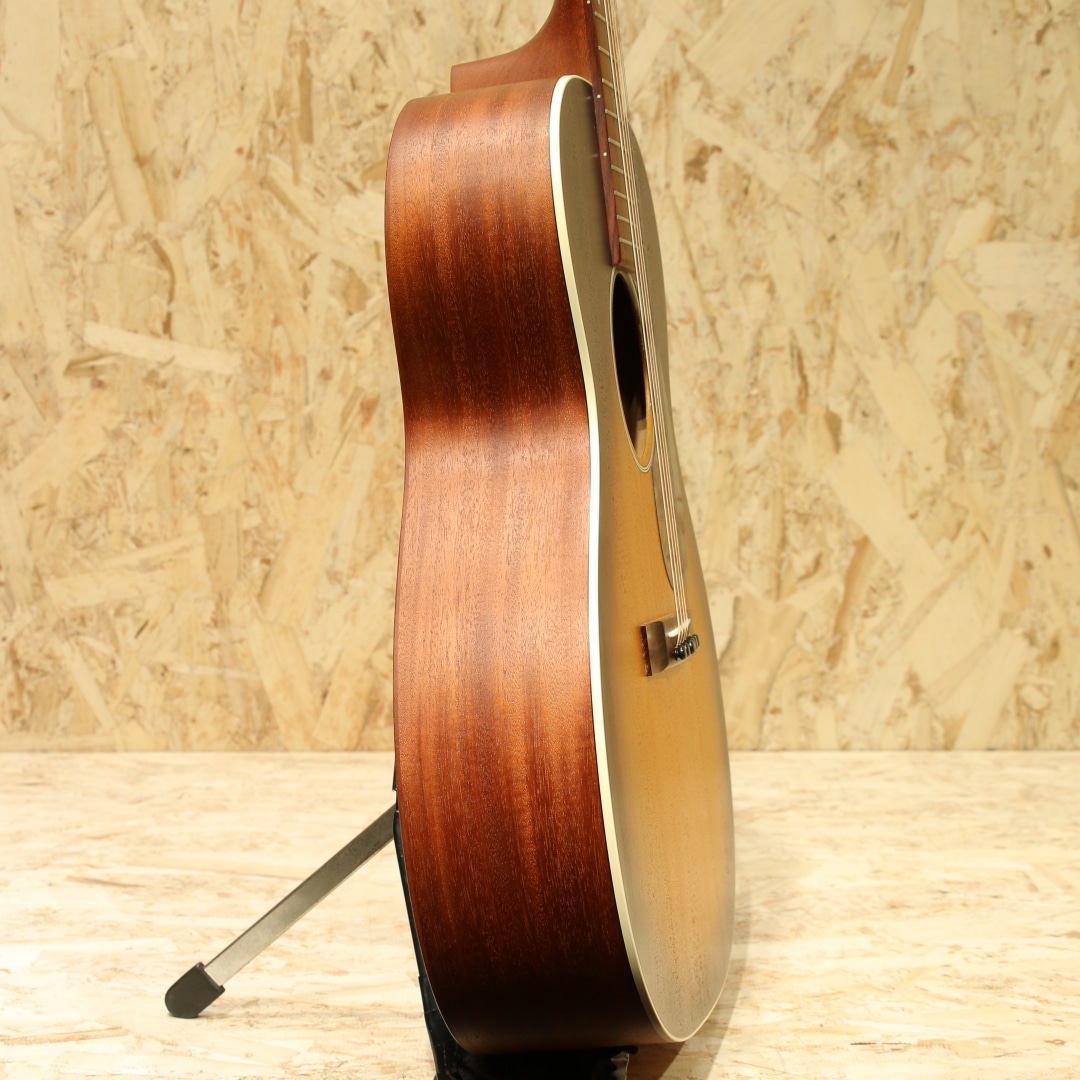 王道スペックとモダンなスタイルをかけ合わせたOOOサイズボディモデル"OOO-17"、ヴィンテージの雰囲気を醸し出すウイスキーサンセットバーストにて仕上げられた2021年製USED品。シトカスプルーストップ、マホガニーサイド&バック、ハードウッドネック、ローズウッド指板&ブリッジ、ゴールデンエイジレリックペグ、べっこう柄ピックガード、スキャロップドXブレイシング。モディファイド・ロウ・オーバルのネックシェイプはコード時の収まりも良く、44.5mmナット幅の広さをあまり感じさせません。ボディ自体は軽量で取り回しに優れたボディサイズ。その取り回しの良さとは裏腹に、軽快ながらボリュームのあるサウンドが印象的です。ピックで弾けばカラッとしたクリスピーなトーンを、指で弾いた際には太くメロウなトーンを奏でます。ドレッドノートサイズの演奏が億劫な方、ご自宅等で気軽に抱えてしっかりとした音質で楽しみたい方などには是非オススメしたい1本です。ボディエンド穴は12mmに拡張されており、現在は開いたままの状態です。(別途DeArmond/Tonebossが付属しております。)サウンドホール周りにピッキングウェアにより塗装剥がれがいくつか確認できますが、ペグのレリック具合やフィニッシュのヴィンテージ感との雰囲気が上手く合わさりさほど気になりません。ネックコンディションも良好、まだまだこれから弾き込みの期待できる1本です。質感の良いサテンフィニッシュに長年使いこまれたかのようなウイスキーサンセットバーストカラー。初めてのMARTINギターをお探しの方にはオススメのモデルです。MARTIN社ハードケースが付属します。