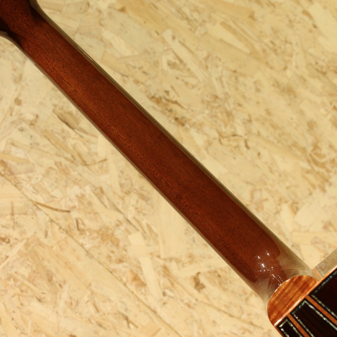 岐阜県中津川市にて製造する”Takamine”。長きにわたりエレアコのトップブランドとして世界をリードする国内屈指のギターメーカーであり、アメリカや日本をはじめ世界各国の著名ミュージシャンが多く愛用する純国産のブランドです。 本器はカスタムオーダーにて製作された2018年製極上USED品。目幅の整った端正なスプルーストップ、木目の濃淡が美しいハカランダサイド&3ピースバック、マホガニーネック、エボニー指板&ブリッジ、フィギャードコアボディバインディング、オリジナルダイアモンドスクエアー指板インレイ、ベネチアンカッタウェイ、スキャロップドXブレイシング。指板インレイやボディトリム、パフリング、ロゼッタはアバロン装飾にて纏まられており、シンプルなデザインでありながら高級感のあるルックスへと仕上がっています。ヘッドバインディングには木目の強いフレイムメイプルが採用、ヘッドにもアバロン装飾が施され、ゴールドペグとも相まって存在感のある仕上がりです。なんといってもジャンボボディに採用されたハカランダの強い存在感は一層特別さを演出します。近年では限定生産モデルでしか見かけなかったタカミネハカランダモデル。出来上がったスペックやルックスからオーダー時の強い拘りを感じます。ジャンボボディが故のパワフルな低音と締りのあるサウンド。輪郭のハッキリとした明瞭なハカランダトーンとの相性は良く、しっかりと確保された音量と音圧は本器ならではです。ピックアップには”TLD-2”を搭載。従来のオンボードイコライザーなどはなく、エンドジャック部に内蔵されたプリアンプとプリEQにより、シンプルかつ実用的なサウンドに仕上げられています。使用感は無く、とても大切に扱われてきたことがうかがえる本器。ネックコンディションも大変良好、低めな弦高設定となっておりプレイアビリティも抜群です。内部ラベルにはオーダーされた方の氏名が印字されています。実用性もありながら、コレクションとしてもステージ映えとしても圧倒的な存在感を放つカスタムオーダーモデルの本器。オリジナルハードケースが付属します。