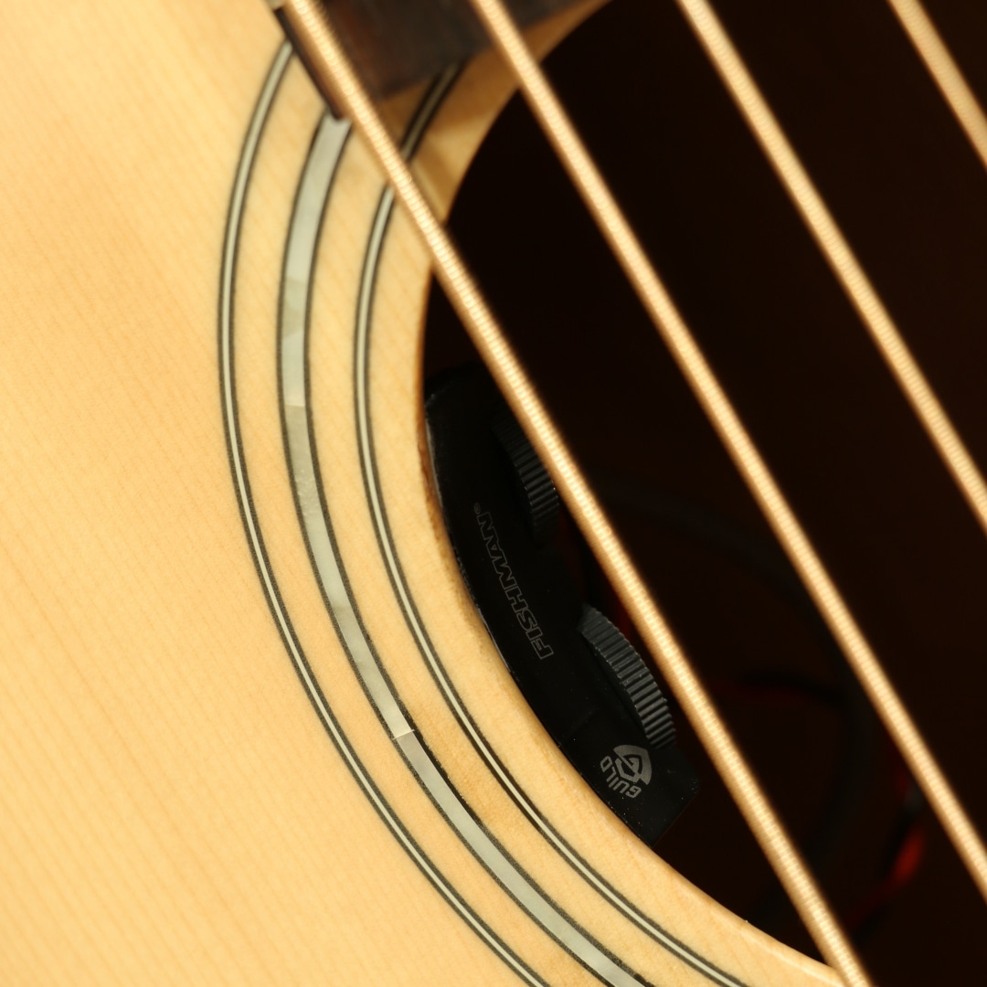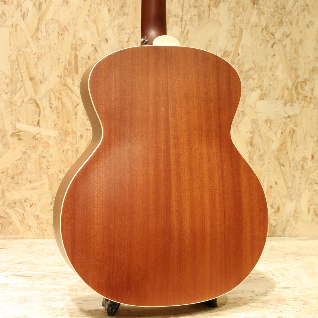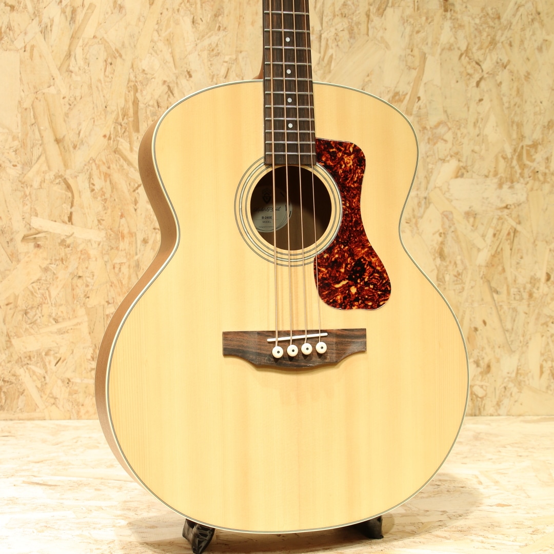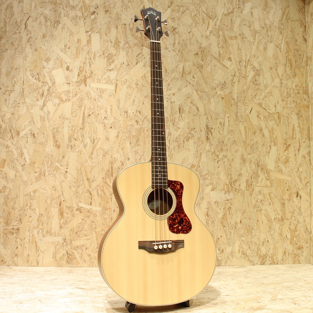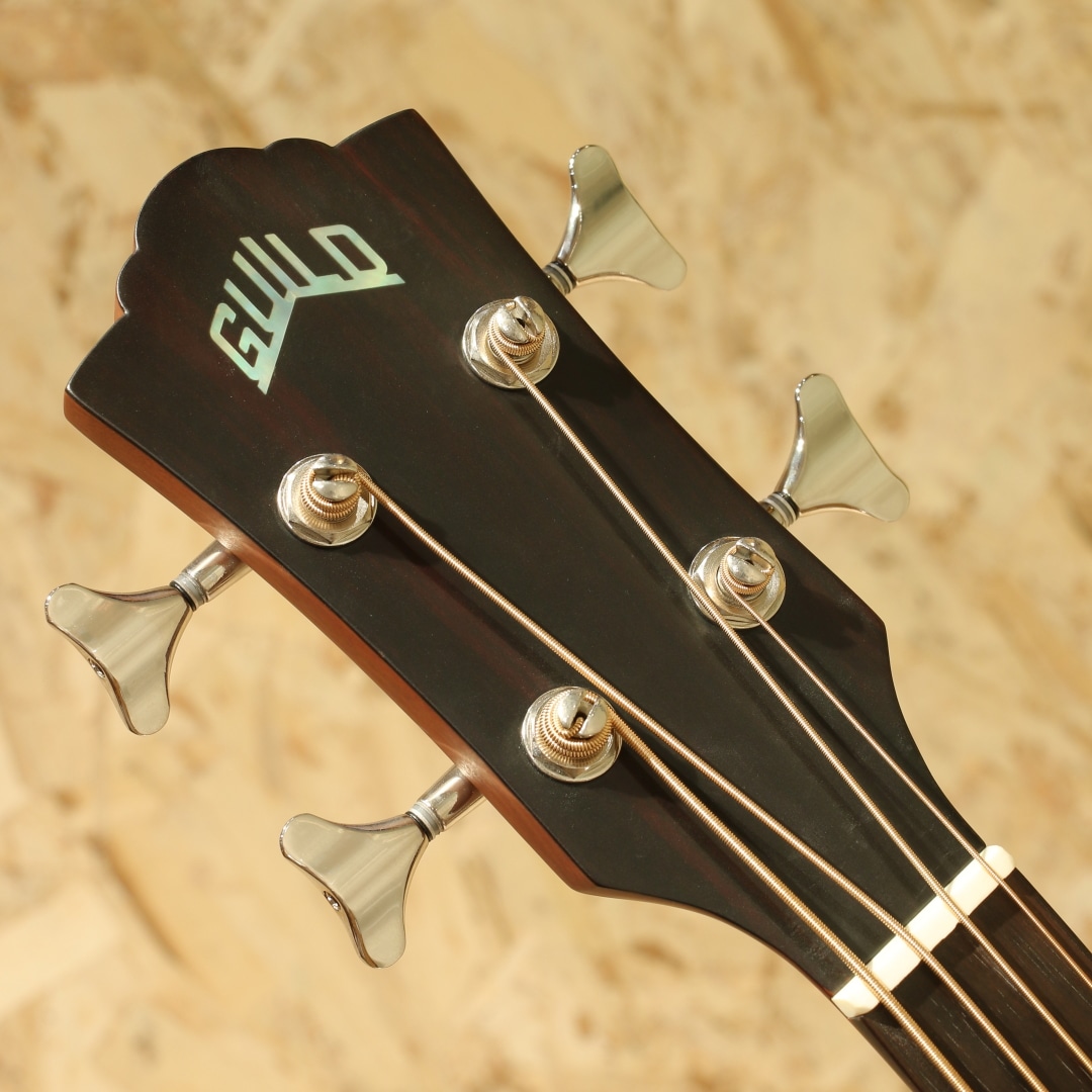 古くはマーティンやギブソンと並んで御三家と呼ばれていたブランド”ギルド”。現在でも製造を行っており、リーズナブルなモデルから伝統的なフラッグシップモデルまで幅広くラインナップするファンの多いブランドです。本器はジャンボサイズボディ、ピックアップ搭載のアコべ”B-240E”。2020年代製のUSED品です。シトカスプルース単板トップ、マホガニーサイド&アーチドバック、マホガニーネック、パーフェロー指板&ブリッジ、41mmナット幅、781mmスケール、オリジナルシールドクローズドギアニッケルペグ、スキャロップドXブレーシング、トップはセミグロスフィニッシュ、その他はサテンフィニッシュ、Guild/Fishman BT-1ピックアップシステム搭載 。意外と店頭で見かけることの少ないアコースティックベース。程よい中古品の出回りも少なく、お探しの方もおられると思います。今回お買い得な1本が入荷しました。元々1970年代に現在のアコースティックベースの形で製作を行ったパイオニア的モデルのB-50。B-240Eはその特徴を引継ぎ、現代的なアレンジを施して製造を行われています。スケールはミディアムとショートの中間、フレット数は23Fです。マホガニーをサイドバックに使用した暖かみやふくよかさを感じさせる音色、ボディバックを立体的に曲げたアーチドバックの為に音を前に飛ばしやすくなっています。ピックアップにはアクティブのアンダーサドルピエゾタイプを内蔵しており、音の芯を捉えた立ち上がりの早いサウンドが特徴。ソリッドのエレキベースに比べて箱の空気感を出しやすく、ドライなトーンを持ち味とします。サウンドホールに縁にピックアップのコントローラが装着されており、VolとToneの2つのみの操作で容易に音色調整が出来ます。アコースティック編成でのラインサウンド、ソリッドとは異なるアプローチやアレンジを行える可能性を持った1本です。ボディサイド1弦側のショルダー箇所に極僅かな当てキズ、ボディトップ面の塗装がやや艶っぽくなっていますが、全体を通して使用感の薄いアコべ。ネック周りの状態も良く、フレットの凹みも無しと良好な演奏性をキープされています。普段ソリッドのエレキベースを弾く方のサブ機として、またアコースティック編成で使う1本として、箱モノ特有の演奏スタイルやサウンドを楽しめる1本として、生で弾いても良し。出来ることの多そうなUSEDアコべです。手頃なアコべをお探しだった方はお早めに。