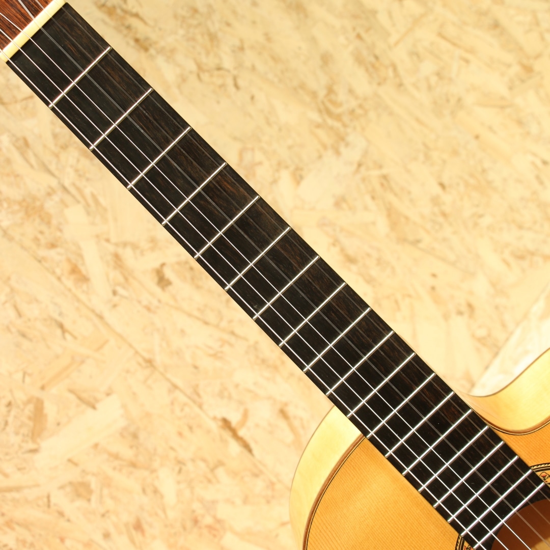 クラシックギターとフラメンコギターの本場スペインで1945年に創業した”CAMPS”。伝統的な製法を守りつつも、現代の最新技術も積極的に取り入れておりハイブリッドなスタイルで製造を行うブランドです。本器はフラメンコ白タイプのカッタウェイ&ピックアップ搭載モデル"CUT-500-S"。2000年代製USED品。スプルーストップ、珍しくメイプルを使用したサイド&バック、シダーネック、エボニー指板、ローズウッドブリッジ、ローズウッドバインディング、オリジナルロゼッタ、アジャスタブルトラスロッド、ネックヒールサイドにストラップピン搭載、Fishman PREFIX Pro Blendピックアップ搭載。鉄弦からの持ち替えに便利なクロスオーバータイプとは異なり、ナット幅52mmで通常のフラメンコギターと近しい感覚で弾けるエレガットモデル。既存のフラメンコギターやクラシックギターを弾くプレイヤーが持ち替え易く、ハイポジションの演奏性を向上させつつもラインアウトが出来るようにされた仕様です。より軽いシープレスを使うことも多々見られますが、本モデルはメイプルを採用。ローズウッドよりも倍音感を抑えられ歯切れの良さを獲得、より甘く厚みのある響きを生み出しています。メロウなサウンドからJAZZやボサノバなどで使用するも良いでしょう。搭載ピックアップはFISHMAN社のアンダーサドル+コンデンサマイクのデュアルピックアップシステム"PREFIX Pro Blend"。アンダーサドルピックアップで音の芯を拾い、マイクで空気感を足せる非常に優秀なピックアップです。3バンドイコライザにノッチ、フリケンシーコントロール、ピエゾP.U.とMicの出力ブレンドなど手元の操作盤で細かなサウンドメイクが可能です、ライブステージやレコーディング、宅録配信でも活躍すること間違いなしです。ボディトップ面下部に数か所当てキズによる凹みが見られ、その上をタッチアップしている様子が窺えます。その他にもボディバック面の薄いバックルキズや擦れキズ、ボディサイドのボトムに当てキズ、ヘッド先端箇所にも当てキズと若干の使用感は見られますが全体を通して大きな使用感は感じさせない個体。比較的キレイな状態に整えられており、ネック周りの演奏性も良好です。本格的なフラメンコギターとして使うも良し、レコーディングでのラインサウンドやライブ用のエレガットとして使うも良し、扱いやすく手頃なUSED品です。是非ご検討下さいませ。