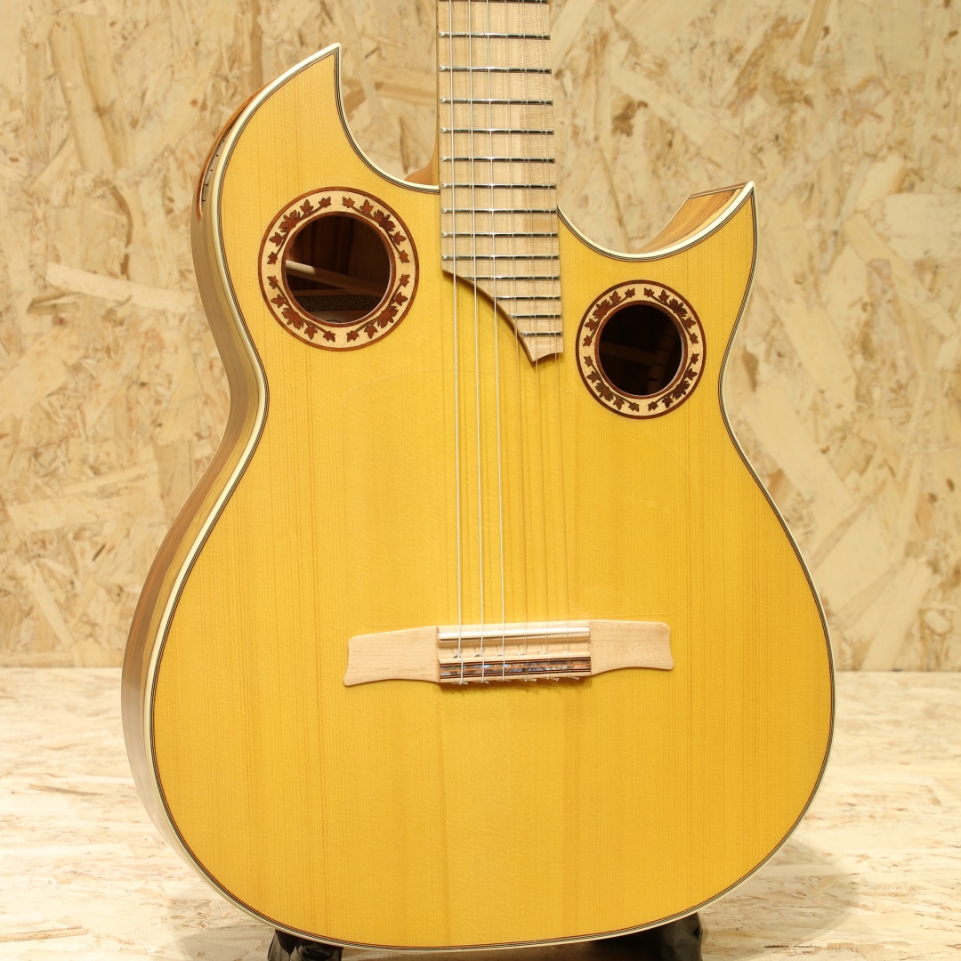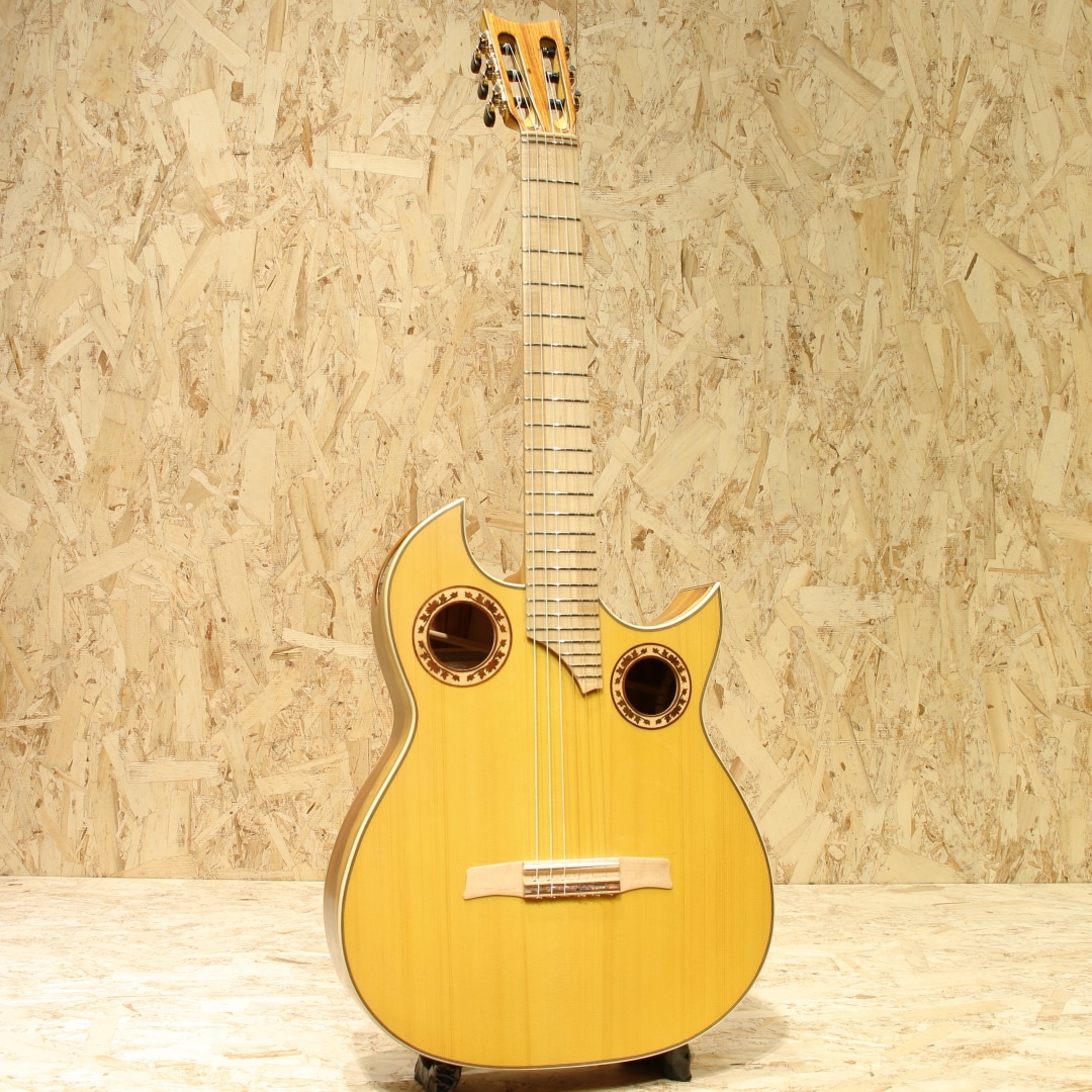 スペイン発、小規模な工房にて1本1本を少数精鋭の職人たちにより製作される革新的なギターブランド"Andalusian Guitars"。本器はトリプルサウンドホールやダブルカッタウェイなど珍しい仕様の1本。2021年製USED品。