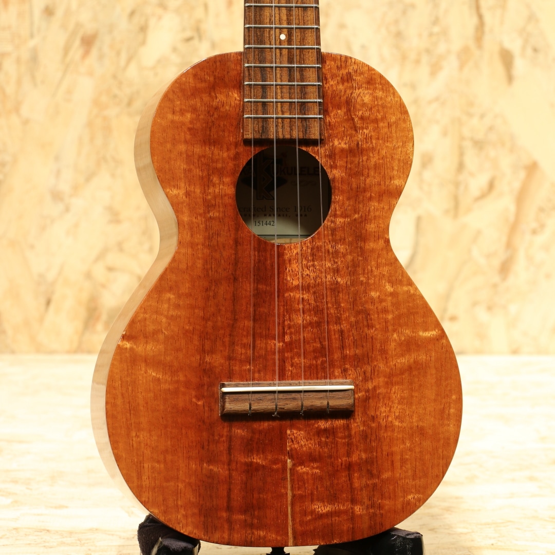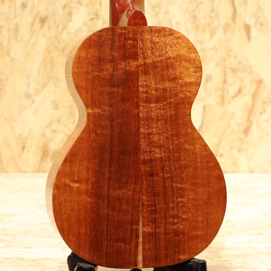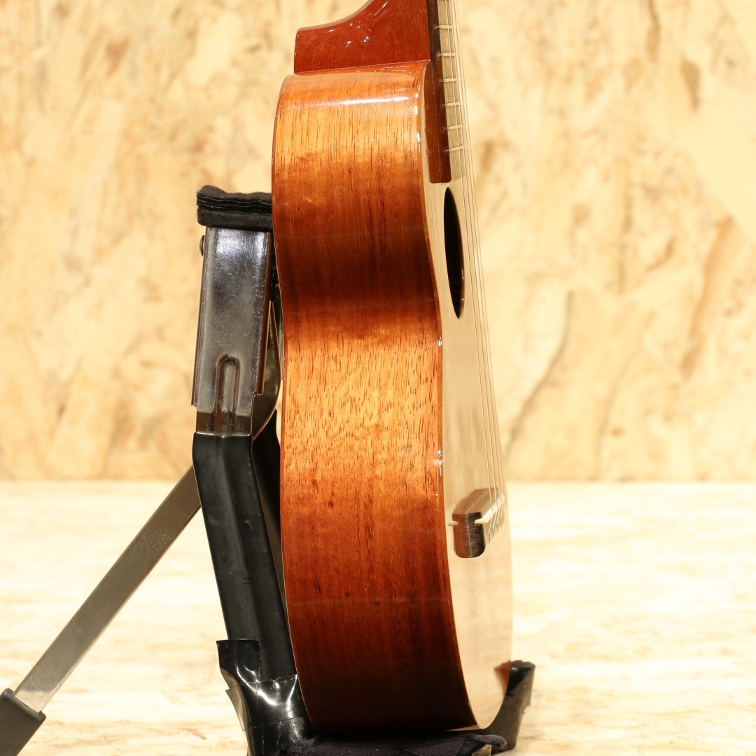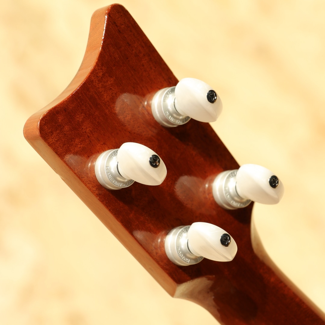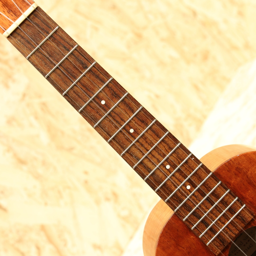 1916年、サミュエル・K・カマカによって創業された"カマカウクレレ"。熟練した職人技と徹底した品質管理を誇り、ハワイアンウクレレメーカーのトップブランドとして君臨し続ける人気ブランド。本器はスタンダードコンサートモデル"HF-2"の2015年製USED品。ハワイアンコアボディ、マホガニーネック、ローズウッド指板&ブリッジ、ゴトー製UPTLペグ、グロスフィニッシュ。現在は半ツヤ仕上げの塗装になっておりますが仕様変更前のグロスフィニッシュも根強い人気を持ちます。コンサートサイズモデルの本器は中間的なサイズ感、ソプラノの取り回しの良い部分とフルサイズの良さを掛け合わせた万能なタイプ。カマカ独特の太く甘いサウンドも健在で、柔らかく響く音色に心癒されます。ふくよかに、軽やかに、耳に優しいサウンドを奏でることが出来、このトーンは他のブランドでは体感できない格別の音色です。ヘッドサイドに打痕、その他薄っすらとした擦り傷が見られる程度と大きな使用感は無く、比較的良好な状態が保たれた本器。ボディエンドホールは12mm径に拡張されておりますが、エボニー材のコンバージョンピンが取り付けられておりストラップの取り付けも可能です。ネック・プレイコンディションも良好。トップ&バックに継ぎ目箇所にはうっすらとサップ杢も確認でき、シンプルな装飾がゆえに映える杢の美しさです。オリジナルハードケースが付属します。