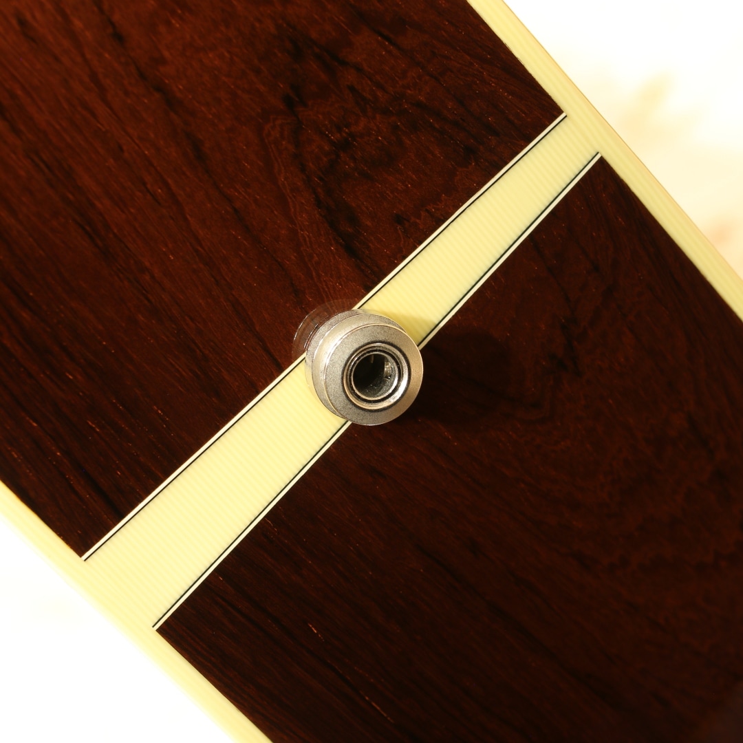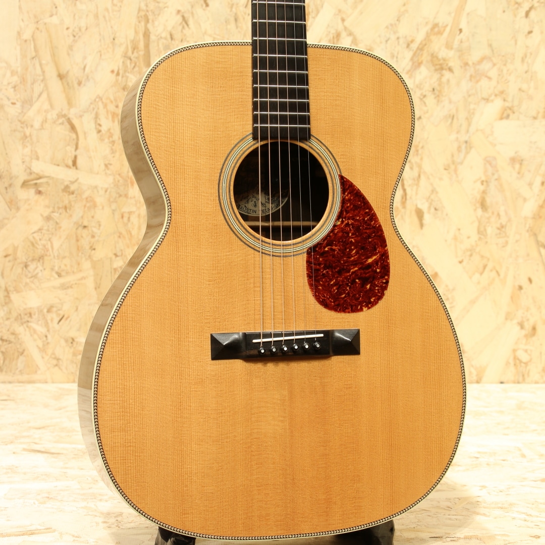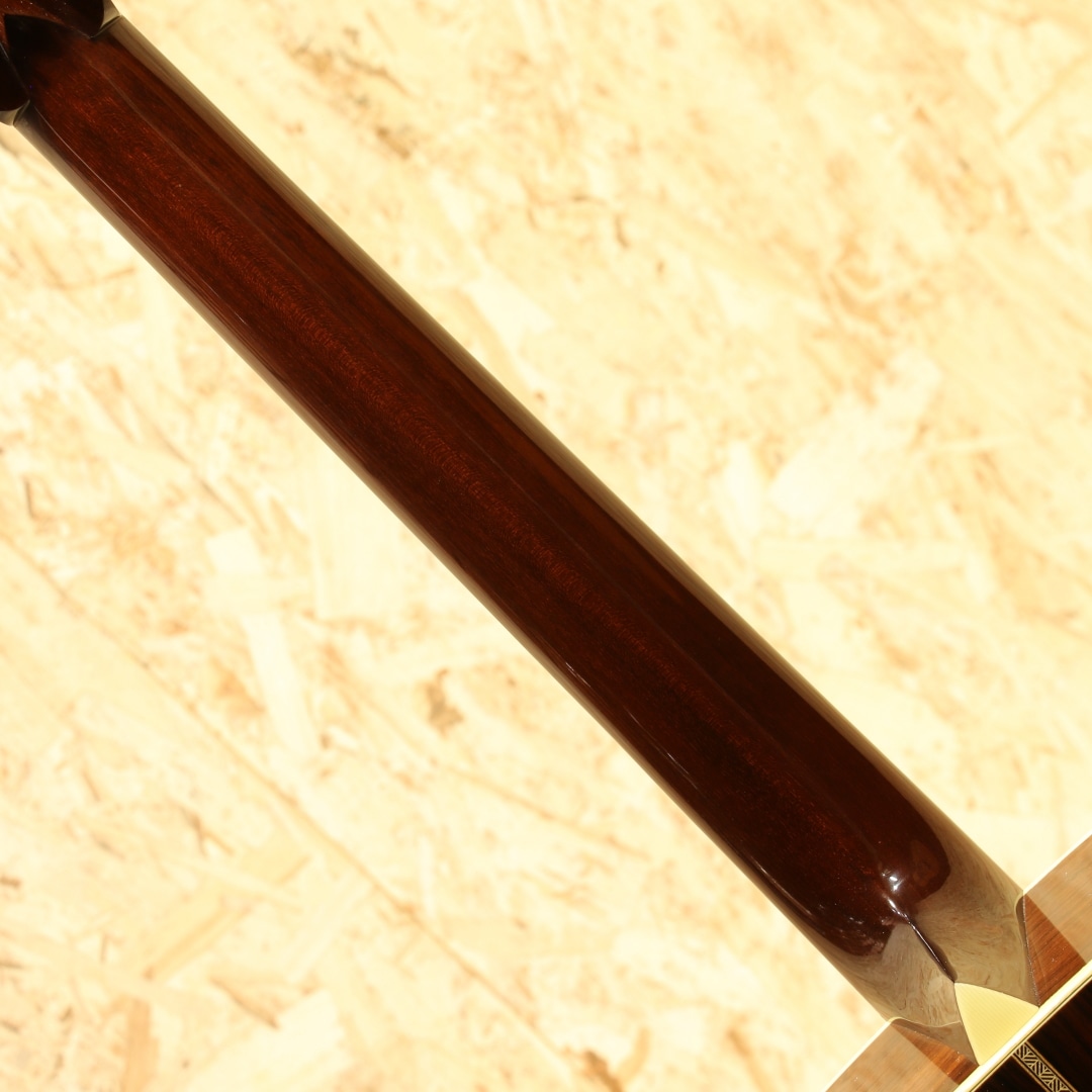 世界的にもっとも高い評価を得ているブランドの一つであるコリングスギター。コリングスの高く保たれたその完成度は、プレイヤーがその楽器を手に持つだけで見惚れてしまう美しさを持ち、音を出せば納得する響きを放ちます。本器は流通稀なハカランダS&Bの逸品”OM2H Ba Jacaranda”。ラッカー塗装期に作られたカスタムモデル。1994年製USED品。目幅の狭い柾目杢が浮き出る極上スプルーストップ、センターにしっかりと柾目杢を配した極上ハカランダサイド&バック、ホンジュラスマホガニーネック、エボニー指板、エボニーレクタングルピラミッドブリッジ、ウェバリーオープンバックペグ、べっ甲柄ピックガード、ヘリンボーントリムパーフリング、ジグザグバックストリップ、アイボロイドバインディング、トップ構造は戦前マーチンの問題点を考慮したオリジナルスキャロップブレイシング、ラッカーフィニッシュ。エキゾチックウッドS&Bモデル自体が流通少なく、またハカランダモデルは他社に比べても珍しいコリングス。音色の太さとキメの細やかな解像度の高いサウンド、磨き抜かれたような艶やかさのある響き。ハカランダ特有の硬質さや抜けの良いハイレンジサウンドも相まって透明感を持った音色を生み出してくれます。各弦の分離感や立ち上がりの素早さに関しては流石としか言えません。どのポジションにおいても余すことなく使える粒立ちの良さ、倍音の乗ったファットなトーンとサスティンに富んだコシのある響き。スケール長も充分な為ダウンチューニングにも十分対応できるオールマイティさを兼ね備えた王道トラッドなOMです。後付けでOval Witz Passiveピックアップを搭載。コンタクトピエゾによってボディトップ面の振動をキャッチ、ピックがボディに当たる音や打音にも反応するポテンシャルを持ちます。パッシブ仕様で電池を必要とせず、出力こそ低めではあるものの足元にプリアンプを置くことでより自由度の高い音作りが可能となります。使用に伴う若干の小傷は見られますが、30年経過してることを考えると大切に弾かれてきたことが伺えます。大きく目立つ傷や使用感もなく、割れなどもなく良好。ネックまわりのコンディションは言わずもがな。パーフェクトなコンディションで弾き心地とも抜群です。コリングスがその実力を馳せたOMモデル。流通稀なハカランダモデルのまさにコレクタブルな1本です。お見逃しなく。