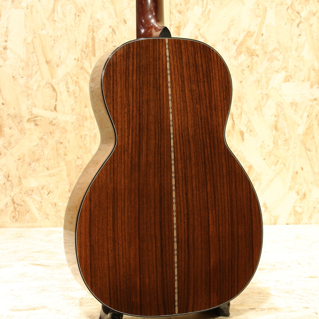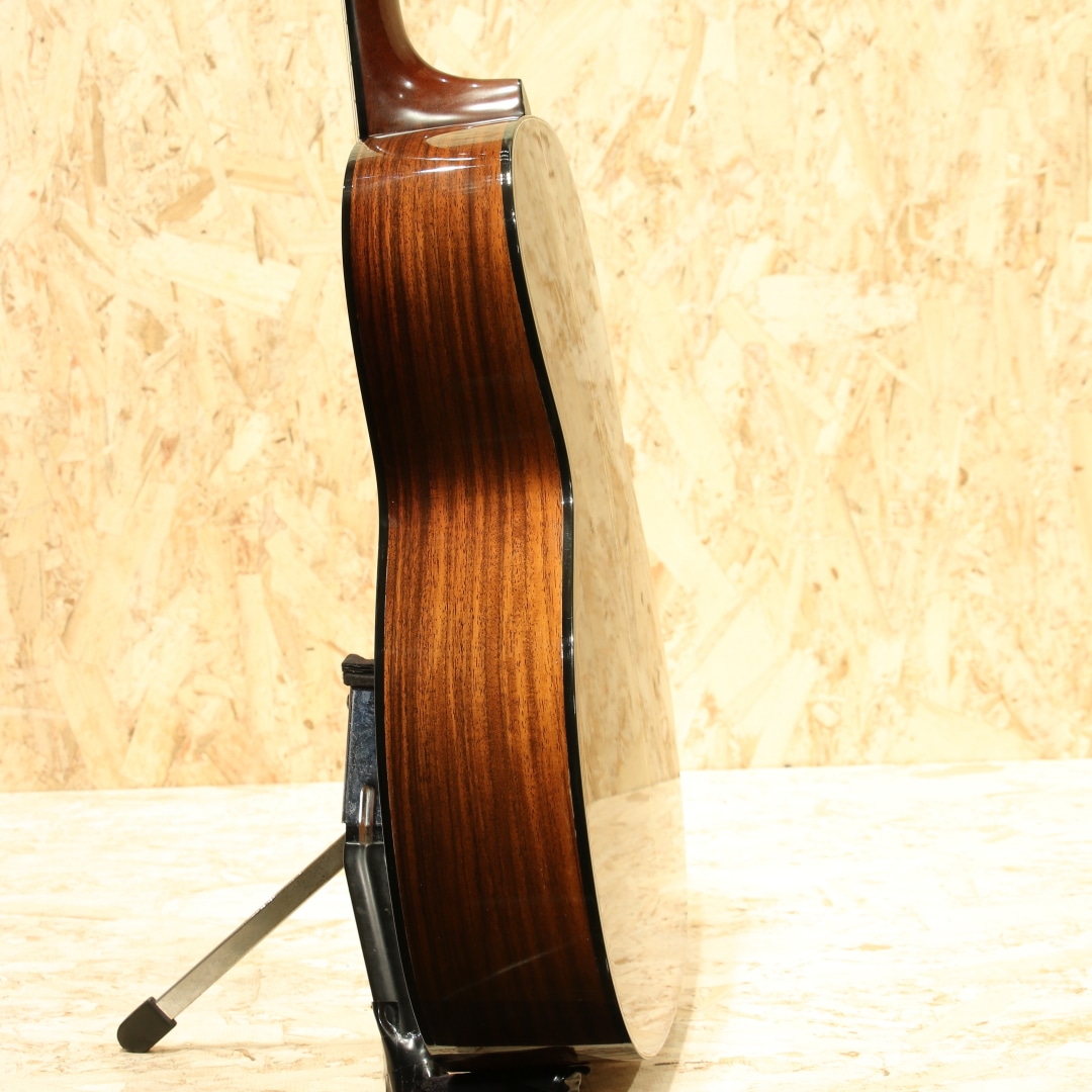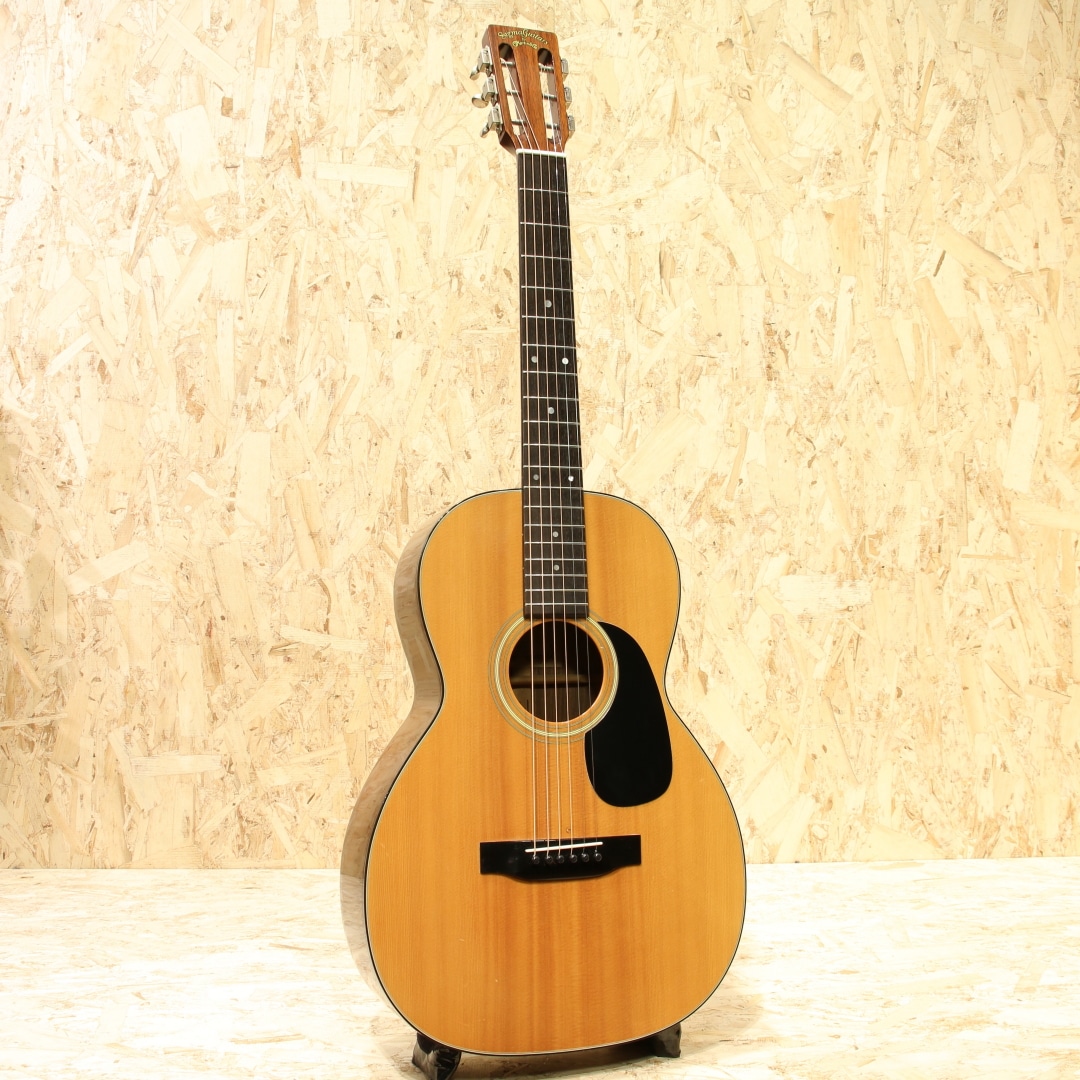 品質管理をマーチン社で徹底して行い、他国で製造することでコストダウンを図りつつ確かなクオリティを目指した"Sigma by Martin"。1970年に始まりその後製造拠点が数度変わり、日本国産時代、韓国製時代、台湾製時代、インドネシア製時代と経て2007年にその幕を閉じたブランドとなります。現在では別の会社によってシグマブランドは復活していますが、マーチンが関与していない為別のブランドとなっています。本器は国産時代に製造が行われたOO-21タイプ”SOO-21”。国産時期とラベルの印字タイプから1980年前後に作られたと思われる1本です。スプルーストップ、ローズウッドサイド&バック、マホガニーネック、スロテッドヘッド、ローズウッド指板&ブリッジ、クルーソンペグ、ドット指板インレイ、ブラックピックガード、ADJトラスロッド、ウッド製のジグザグバックストリップ、スキャロップドXブレイシング、12Fジョイント仕様。1970年頃からアジア製のブランドが台頭し始め、それに対抗する形でシグマブランドは立ち上げられました。スチューデントブランドの為リーズナブルでありつつもマーチンが携わっている以上確かなクオリティを目指し、コストパフォーマンスに優れた楽器を製造。未だに通な方に人気の高いブランドの1つです。本器はこれまた通なOO-21を基にしたスタイル、12Fジョイントかつスロテッドヘッド仕様というマニアックな1本です。ローズサウンドを求めつつ若干お手頃という点からも通な方の心を掴んでいるモデルです。小型なボディ故に音の立ち上がりが早く中域に密度感のある響き、ローズウッドによってややレンジ感は広くなりバランス感の良いトーンを持ちます。12Fジョイント特有の余裕のある響き、コンプ感ではなくオープンなトーンも魅力の一つ。テンション感のある音色でしっかりとした音像で響きます。国産らしくクリアなトーンを備えたOO-21タイプ。ボディトップ面3弦と4弦の間に塗装のタッチアップ跡が見られるのが惜しい点、全体を通して細やかな当てキズや擦れキズこそ見られますがおよそ40年ほど経過しているであろうことを考えるとキレイな状態を保たれている個体。ネック周りの状態も良し、演奏性良好なニューヨーカータイプのUSED品です。老舗ブランドが立ち上げた通なブランド、通なモデルに通なスタイルとマニアックさの塊のような1本。当時の人気を考えるとOOサイズの出回りは少なかったのではないでしょうか。ましてやスタイル21ともなればなおさらでしょう。当時手に入れられなかった方、セカンドギターとして使える1本をお探しの方にもオススメできるリーズナブルかつ良質な1本です。