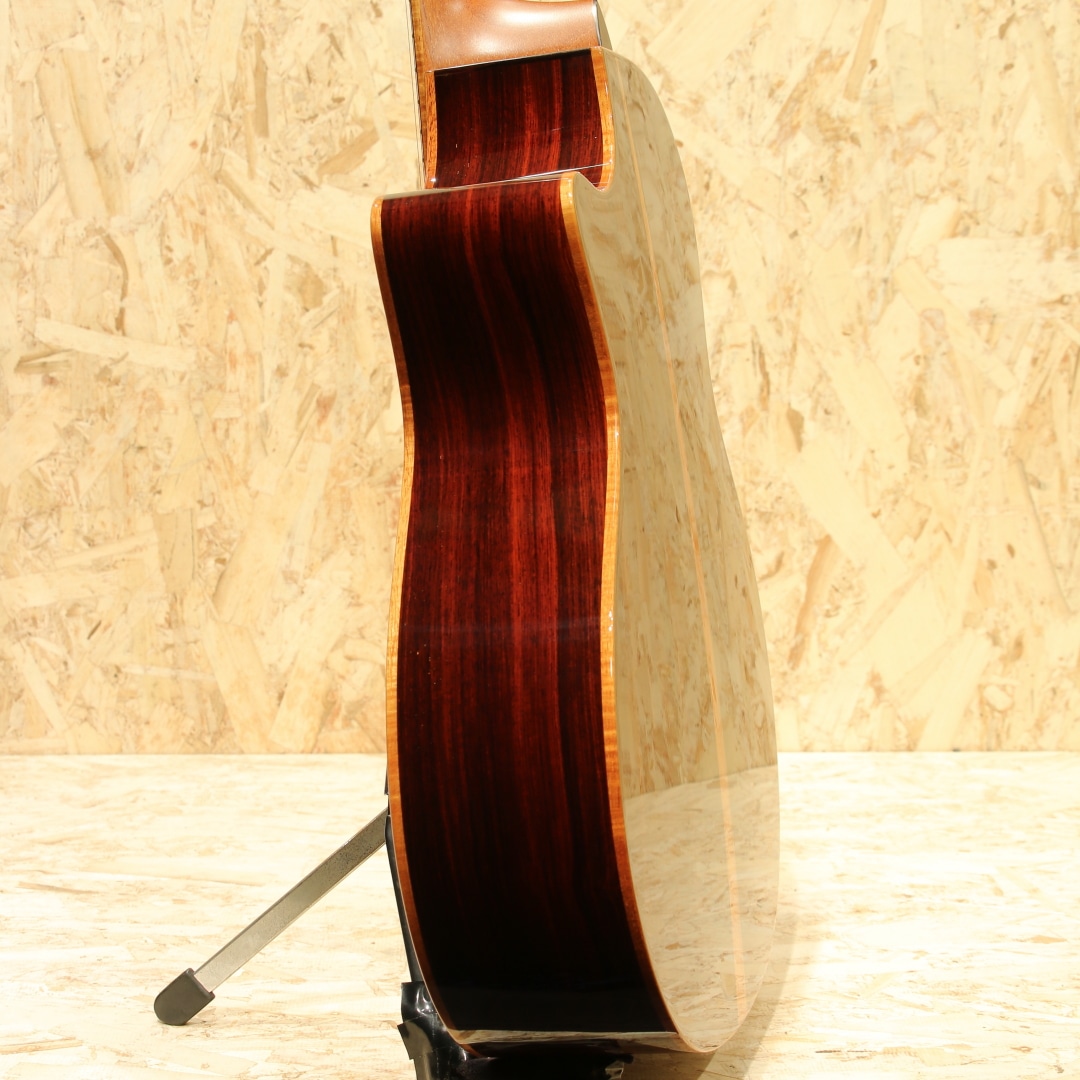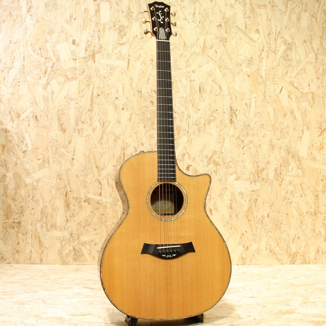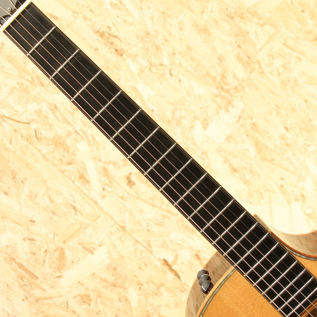 1974年にボブ・テイラーとカート・リスタグの2人によって創立されたテイラー・ギター。革新的なアイデアと高い技術力、ハイセンスなマーケティングで2000年代より急速に成長し、今や世界のトップアコースティックブランドとして、一般ユーザーからプロミュージシャンまで、幅広い層から確固たる支持を得ています。本器は2008年製のリミテッドモデル”Cocobolo GA”。スプルーストップ、赤みがかった柾目が美しいココボロサイド&フィギャード杢が入ったコアを挟んだ3ピースバック、トロピカルマホガニーネック、エボニー指板&ブリッジ、510ゴールドペグ、アバロンロゼッタ&トリム、フィギャードコアバインディング、ベネチアンカッタウェイ、スキャロップドXブレイシング、ES1ピックアップ搭載。ベースシェイプはグランドオーディトリアムボディ。OOOタイプに近しい抱え心地と比較的大きな容積を両立させたシェイプ。取り回しに優れた点を持ちつつも、豊かな低音感やレンジの広さが魅力的でバランスに優れたサイズで同ブランドの象徴ともいえる形状です。握りやすさに定評のある薄めなネックシェイプはエレキギターからの持ち替えにも違和感を覚えづらく、細やかなフレージングにも追従出来る操作性の高いグリップです。GAシェイプとココボロS6Bとの相性は良く、重厚で豊かな倍音を響きを音圧は損なわないまま、スッキリとしたボリュームでアウトプット。クリア且つ繊細にタッチニュアンスにも追従する優れた反応性、抜けやすいトーン。歌モノでの安定感は勿論のこと、リードプレイ時などでもしっかりと個性を発揮してくれます。指弾き時の煌びやかさと柔らかさを兼ね備えた華やかなトーンも魅力の1つです。ピックアップにはES1ピックアップシステムを搭載。指板エンド下に仕込まれたマグネットピックアップとトップに貼り付けられたボディセンサーから成るES1ピックアップシステム。ライン出力時にもナチュラルなサウンドで、現行のES2ピックアップとはまた違った方向性の響きとなっております。コントローラーもお馴染みとなったVol,Bass,Trebleのシンプルな構成。操作も簡単、音作りも容易です.パッと見てほとんどキズの見られないとてもきれいな状態が保たれた本器。丁寧に扱われてきたことがうかがえます。ネック周りも良好に保たれ、テイラーの持つ優れた演奏性を存分に体感できるリミテッドモデル。是非ご検討下さいませ。オリジナルハードケースが付属します。