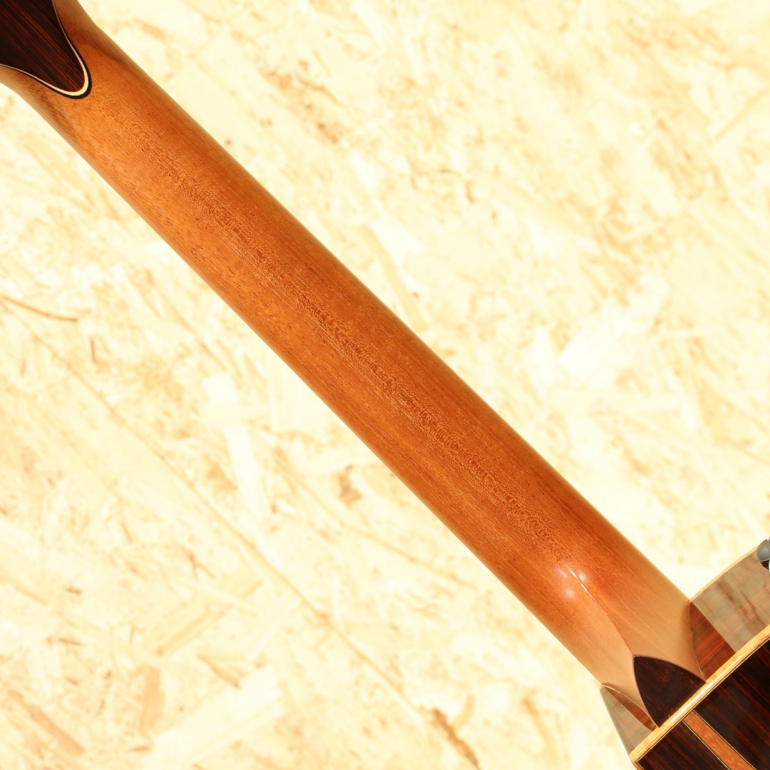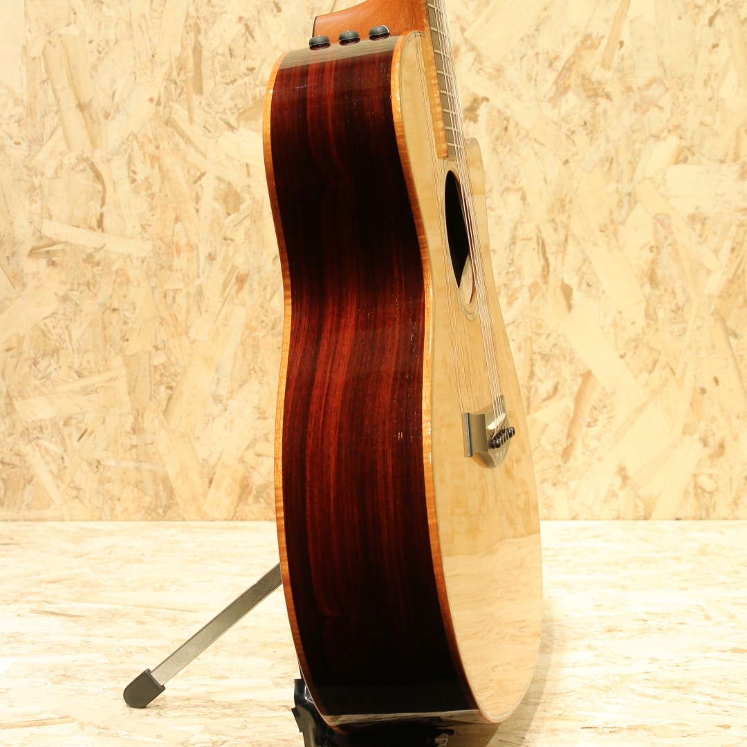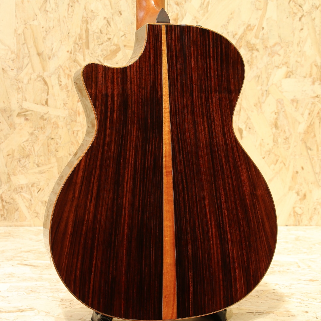 1974年にボブ・テイラーとカート・リスタグの2人によって創立されたテイラー・ギター。革新的なアイデアと高い技術力、ハイセンスなマーケティングで2000年代より急速に成長し、今や世界のトップアコースティックブランドとして、一般ユーザーからプロミュージシャンまで、幅広い層から確固たる支持を得ています。本器は2008年製のリミテッドモデル”Cocobolo GA”。スプルーストップ、赤みがかった柾目が美しいココボロサイド&フィギャード杢が入ったコアを挟んだ3ピースバック、トロピカルマホガニーネック、エボニー指板&ブリッジ、510ゴールドペグ、アバロンロゼッタ&トリム、フィギャードコアバインディング、ベネチアンカッタウェイ、スキャロップドXブレイシング、ES1ピックアップ搭載。ベースシェイプはグランドオーディトリアムボディ。OOOタイプに近しい抱え心地と比較的大きな容積を両立させたシェイプ。取り回しに優れた点を持ちつつも、豊かな低音感やレンジの広さが魅力的でバランスに優れたサイズで同ブランドの象徴ともいえる形状です。握りやすさに定評のある薄めなネックシェイプはエレキギターからの持ち替えにも違和感を覚えづらく、細やかなフレージングにも追従出来る操作性の高いグリップです。GAシェイプとココボロS6Bとの相性は良く、重厚で豊かな倍音を響きを音圧は損なわないまま、スッキリとしたボリュームでアウトプット。クリア且つ繊細にタッチニュアンスにも追従する優れた反応性、抜けやすいトーン。歌モノでの安定感は勿論のこと、リードプレイ時などでもしっかりと個性を発揮してくれます。指弾き時の煌びやかさと柔らかさを兼ね備えた華やかなトーンも魅力の1つです。ピックアップにはES1ピックアップシステムを搭載。指板エンド下に仕込まれたマグネットピックアップとトップに貼り付けられたボディセンサーから成るES1ピックアップシステム。ライン出力時にもナチュラルなサウンドで、現行のES2ピックアップとはまた違った方向性の響きとなっております。コントローラーもお馴染みとなったVol,Bass,Trebleのシンプルな構成。操作も簡単、音作りも容易です.パッと見てほとんどキズの見られないとてもきれいな状態が保たれた本器。丁寧に扱われてきたことがうかがえます。ネック周りも良好に保たれ、テイラーの持つ優れた演奏性を存分に体感できるリミテッドモデル。是非ご検討下さいませ。オリジナルハードケースが付属します。