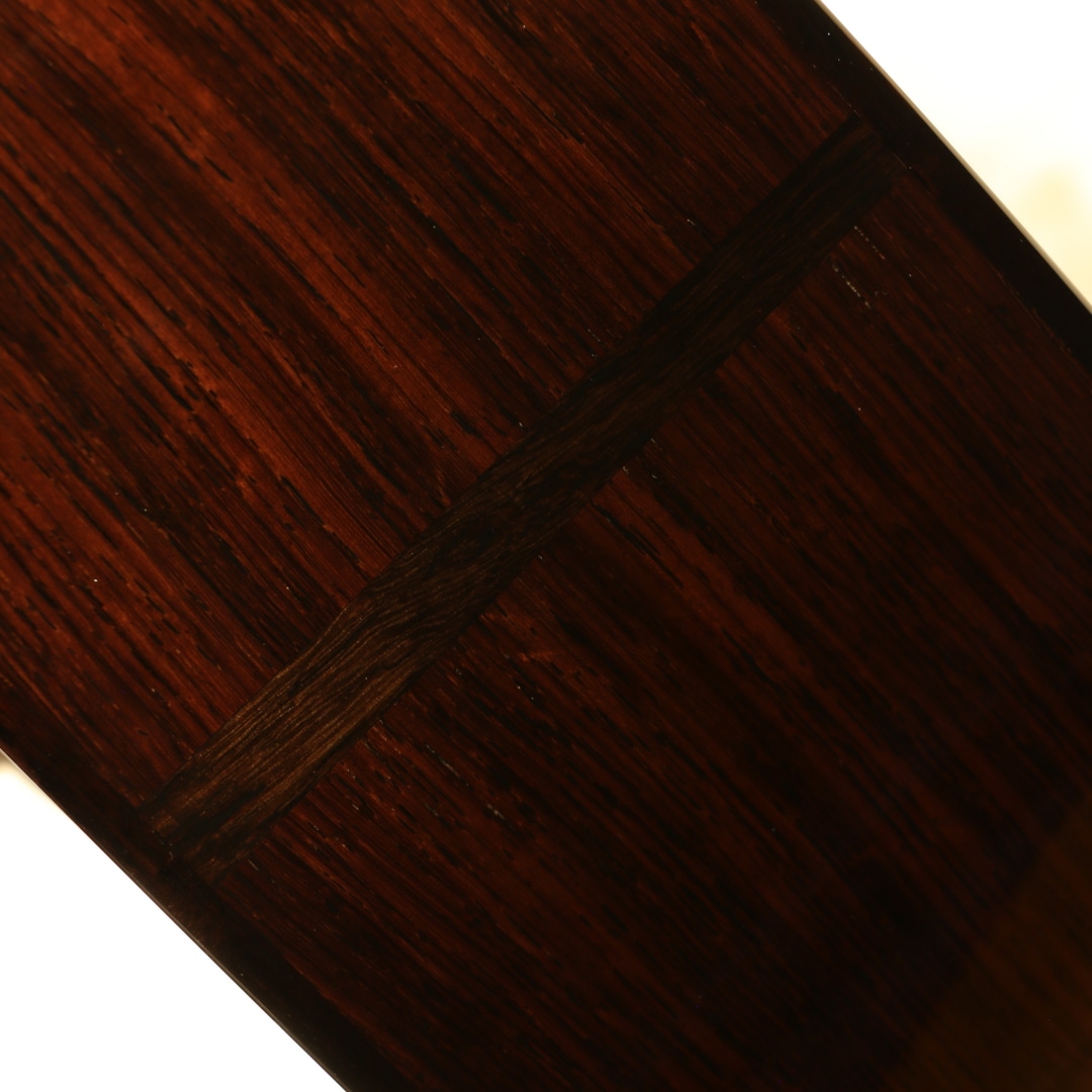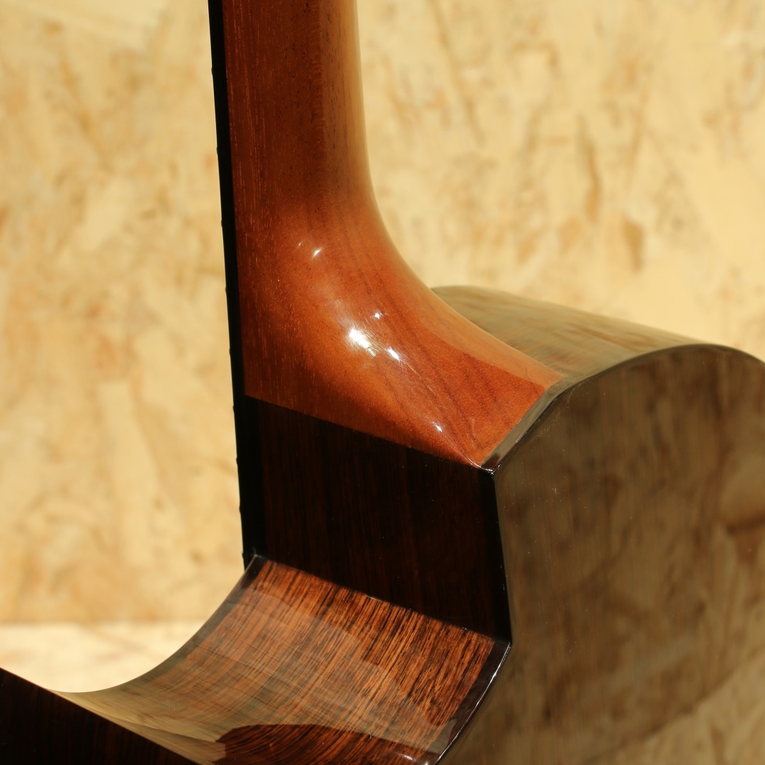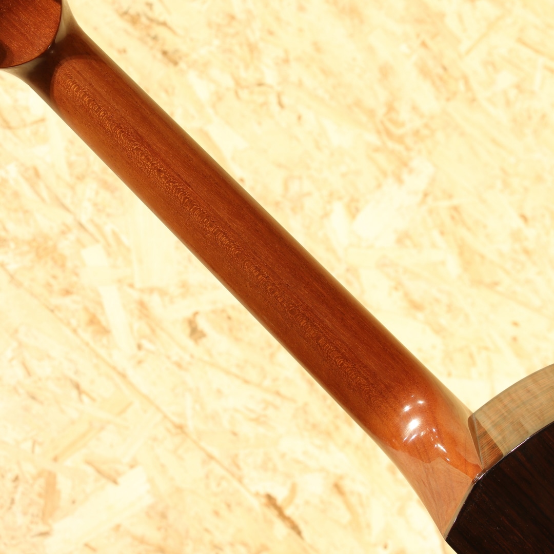 平光ギターは愛知県にてギター製作をするルシアー平光泰典氏によるブランド。一柳一雄氏のもとクラシックギター製作のノウハウを学び、音質・演奏性にこだわりをもって製作される国内屈指の人気ルシアーです。過去の作品一つ一つからデーターを蓄積しブラッシュアップを重ねた平光氏最新のデザインと独自に開発した近年完成したと言われる平光ブレイシングパターンを採用してしています。日々進化をとげ益々の完成度を持ち合わせます。本器は"Type OO 12F Cutaway German Spruce Madagascar Rosewood”。抱えやすく可愛らしい小ぶりなサイズ、フローレンタインカッタウェイを持つ1本です。黄色目のジャーマンスプルーストップ、マダガスカルローズウッドサイド&バック、ホンジュラスマホガニーネック、エボニー指板、ハカランダブリッジ、ゴトー510ゴールドカラー(エボニーノブ)、立体形状に削られたローズウッド天神板、スポルテッドメイプル指板ポジション、ダークローズウッドバインディング、フローレンタインカッタウェイ、カリンで装飾されたロゼッタ、平光ブレイシングと命名されたオリジナルXブレイシングは計算されつくされた独自の曲線と組み合わせによりトップに流れる振動を想定しながら、長年制作で徐々にブラッシュアップを進めていった独自構造。残すべくポイントと落とすべきポイントを抑えた驚くべき形状のブレイシングです。ファットでふくよかな空気感と同時に放たれる締まりの効いたキンとした音像で分離感の良い出音が持ち味の平光ギター。クリアで滑舌の良いトーンでかつフラットトップながらジャズギタリストも唸らせる単音の伸びでロウフレットからハイフレットまでデッドな箇所が少なく均一で変わらぬしっかりとした密度を持ち、OOサイズならではの小回りの利いたレスポンス良さと抜け感も相まってとても上質で使い勝手の良いサウンドになっています。12Fジョイント機種定番のスロテッドヘッドではなく、ソリッドヘッドで扱いやすく、ヒールレスのカッタウェイがハイポジションまでのアクションをスムーズにしています。12フレット仕様にしながらジョイント箇所を弾きやすくしている構造は一見矛盾したようにも見られるかも知れませんが、音色を得るためのもの。12Fジョイントと14Fジョイントの根本的構造が故、12Fジョイントで得られる音像の太さは14Fジョイントでは得られません。音痩せやコシの細さが見られない、太く伸びやかで芯のある音色は平光氏の真骨頂。フィンガーでもピッキングでも、弾き方を選ばずにあらゆるプレイの表現を可能にする平光ギター。多くのトッププロからも信頼を寄せられており、一線で活躍するミュージシャンよりフィードバックされるノウハウがその造りにダイレクトに反映されています。当店ではカスタムオーダーも承りますのでお気軽にご相談ください。オリジナルNAZCA製ギグケース付属。