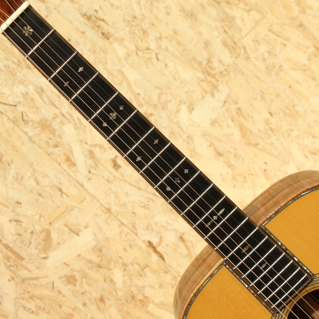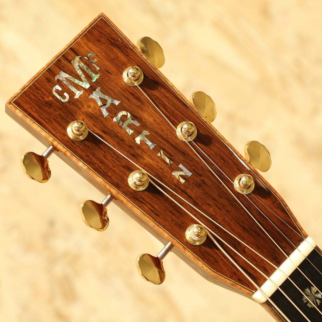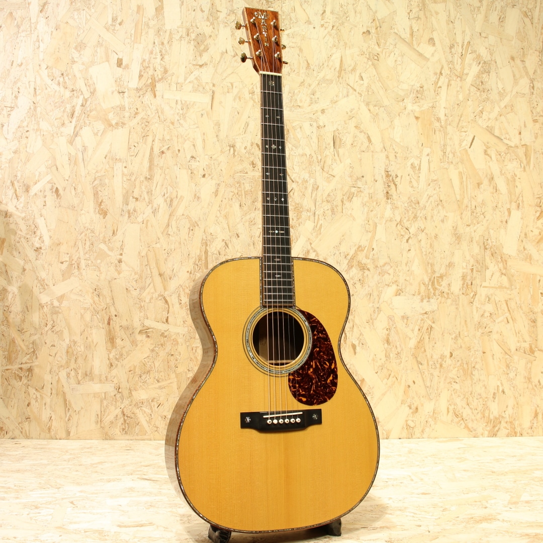 高い技術と完成度にて素晴らしいギターを造り出すマーチンカスタムショップ製の"CTM OOO-42 Madagascar Rosewood Anaheim"。2012年のアナハイム・ナムショウで発表された限定モデルで2012年から2013年のレンジで限定生産されました。本器は2013年製。少し飴色に焼けた顔が特徴の端正な杢のアディロンダックスプルーストップ、陰影が濃く追柾目でワイルドなグレインの最高級マダガスカルローズウッドサイドバック。エボニー指板&ブリッジ、ウェバリーゴールドペグ、デルマー社ベッコウ柄セルロイドピックガード、表板アバロントリム&ロゼッタ、アバロンスノウフレイクス&キャッツアイ指板ポジション、ホワイト指板サイドポジション。マダガスカルローズウッド天神板、フレイム杢が美しいコアウッドバインディング、スキャロップドXブレイシング。ふくよかで柔らかく、倍音豊かな上質な42サウンド。きらびやかで甘いトーン、広がりのあるワイドレンジサウンド。弾く毎に引き込まれる、カスタムショップ製ならではの完成度の高いサウンドです。ヘッドプレート3弦ポストの上あたりにそれほど目立たない浅めの小さな打痕、その他は光をかざせば分かる程度のわすかな小傷や擦り傷程度、すり合わせが必要でないわずかなフレットヘリがみられる程度でほとんど使用感のない美品状態をキープしています。ネックもストレートでプレイコンディションも大変良好。弾きやすくセットアップされており、ストレスなくスムーズな演奏ができる状態で用意されています。本モデルはウッドマテリアルの組み合わせや装飾のパターンが素晴らしく良い顔でとても人気が高く、中古で入荷しても足が速いモデル。お探しだった方はぜひお早めに。迷われているうちに売り切れ必至のアイテム。ご存知でなかった方は是非、この機会にチェックして下さい。オリジナルハードケース付属。