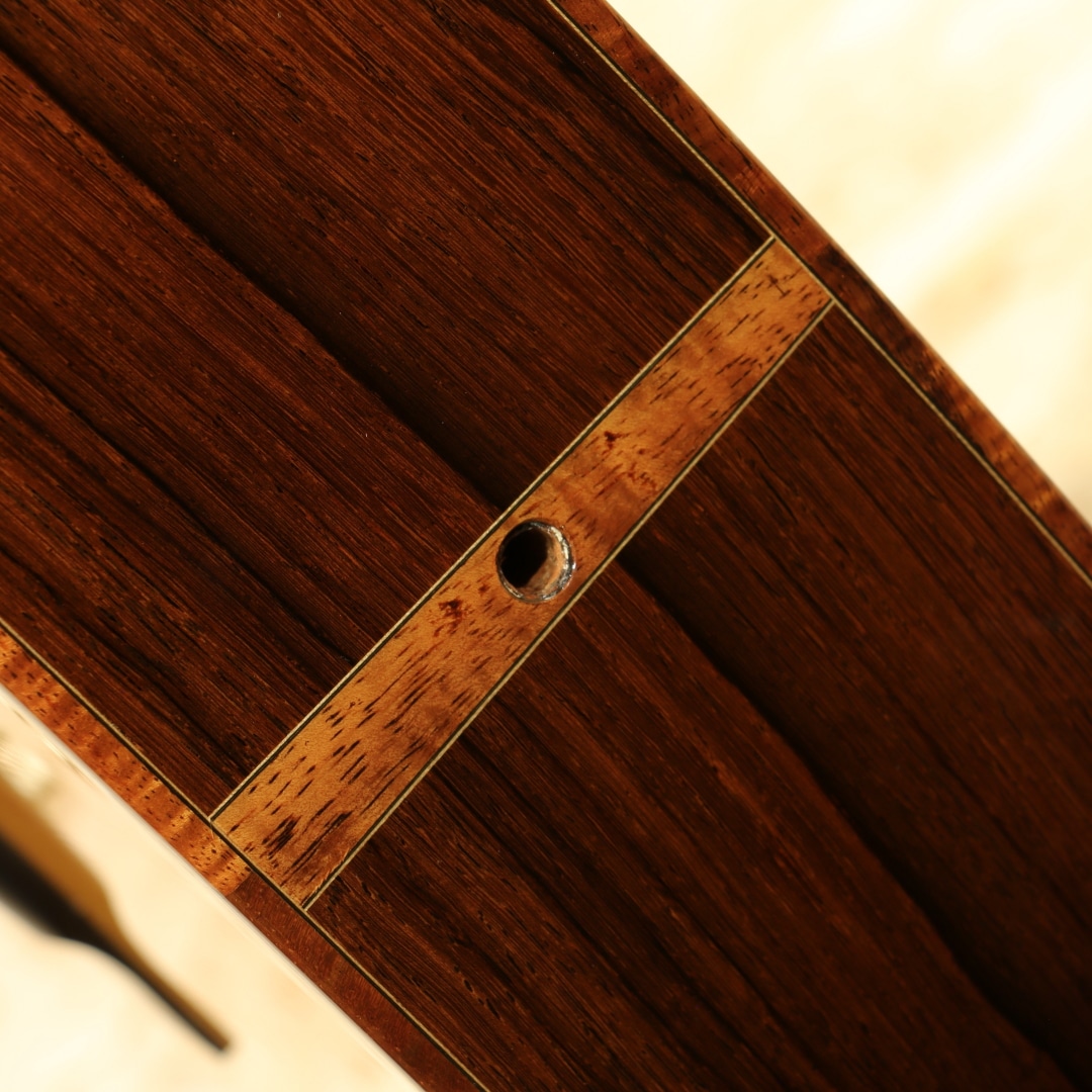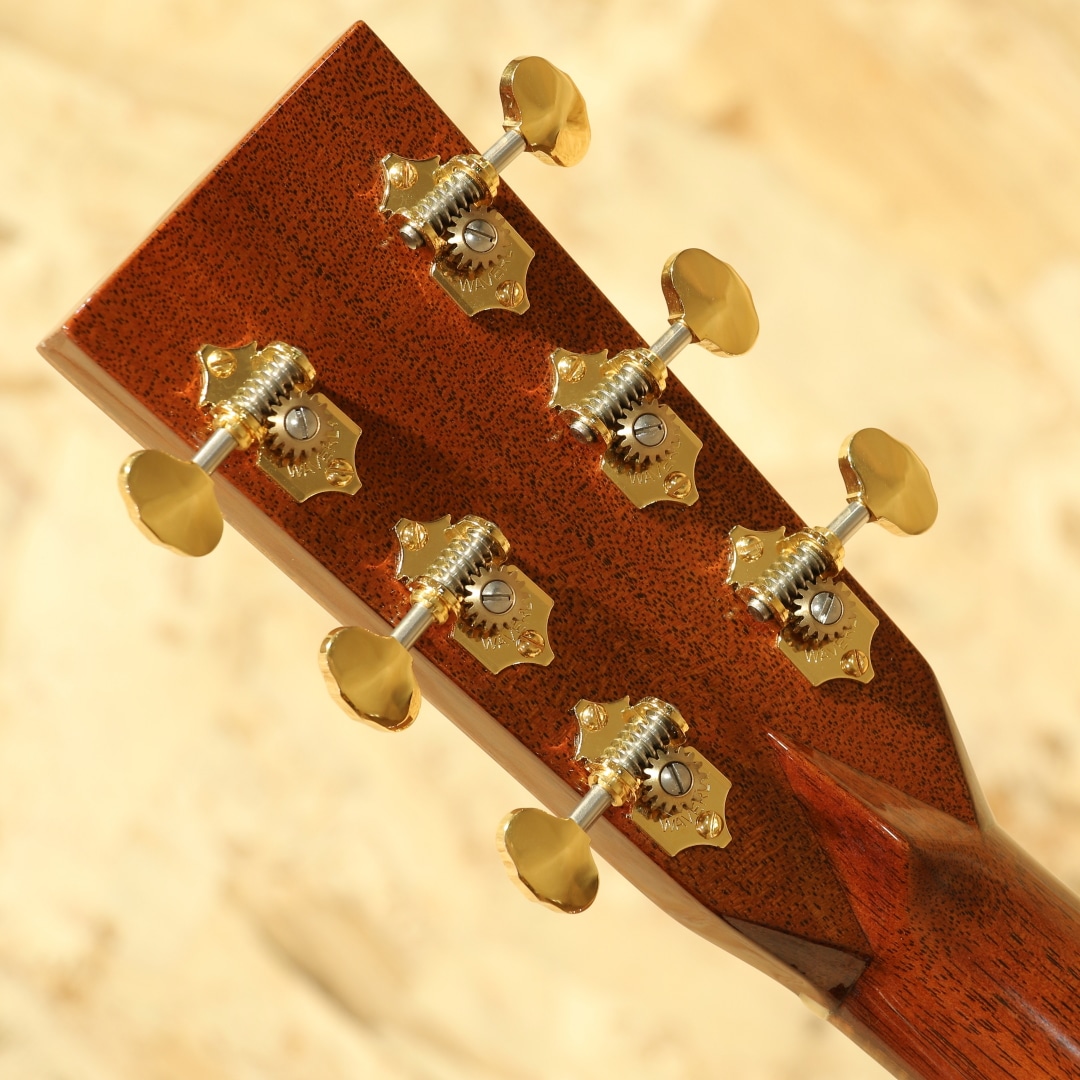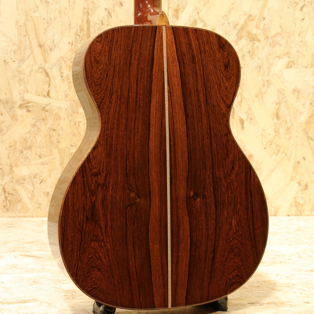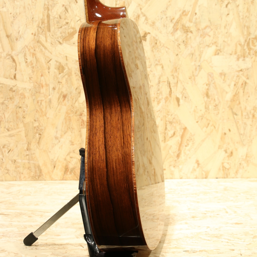 高い技術と完成度にて素晴らしいギターを造り出すマーチンカスタムショップ製の"CTM OOO-42 Madagascar Rosewood Anaheim"。2012年のアナハイム・ナムショウで発表された限定モデルで2012年から2013年のレンジで限定生産されました。本器は2013年製。少し飴色に焼けた顔が特徴の端正な杢のアディロンダックスプルーストップ、陰影が濃く追柾目でワイルドなグレインの最高級マダガスカルローズウッドサイドバック。エボニー指板&ブリッジ、ウェバリーゴールドペグ、デルマー社ベッコウ柄セルロイドピックガード、表板アバロントリム&ロゼッタ、アバロンスノウフレイクス&キャッツアイ指板ポジション、ホワイト指板サイドポジション。マダガスカルローズウッド天神板、フレイム杢が美しいコアウッドバインディング、スキャロップドXブレイシング。ふくよかで柔らかく、倍音豊かな上質な42サウンド。きらびやかで甘いトーン、広がりのあるワイドレンジサウンド。弾く毎に引き込まれる、カスタムショップ製ならではの完成度の高いサウンドです。ヘッドプレート3弦ポストの上あたりにそれほど目立たない浅めの小さな打痕、その他は光をかざせば分かる程度のわすかな小傷や擦り傷程度、すり合わせが必要でないわずかなフレットヘリがみられる程度でほとんど使用感のない美品状態をキープしています。ネックもストレートでプレイコンディションも大変良好。弾きやすくセットアップされており、ストレスなくスムーズな演奏ができる状態で用意されています。本モデルはウッドマテリアルの組み合わせや装飾のパターンが素晴らしく良い顔でとても人気が高く、中古で入荷しても足が速いモデル。お探しだった方はぜひお早めに。迷われているうちに売り切れ必至のアイテム。ご存知でなかった方は是非、この機会にチェックして下さい。オリジナルハードケース付属。