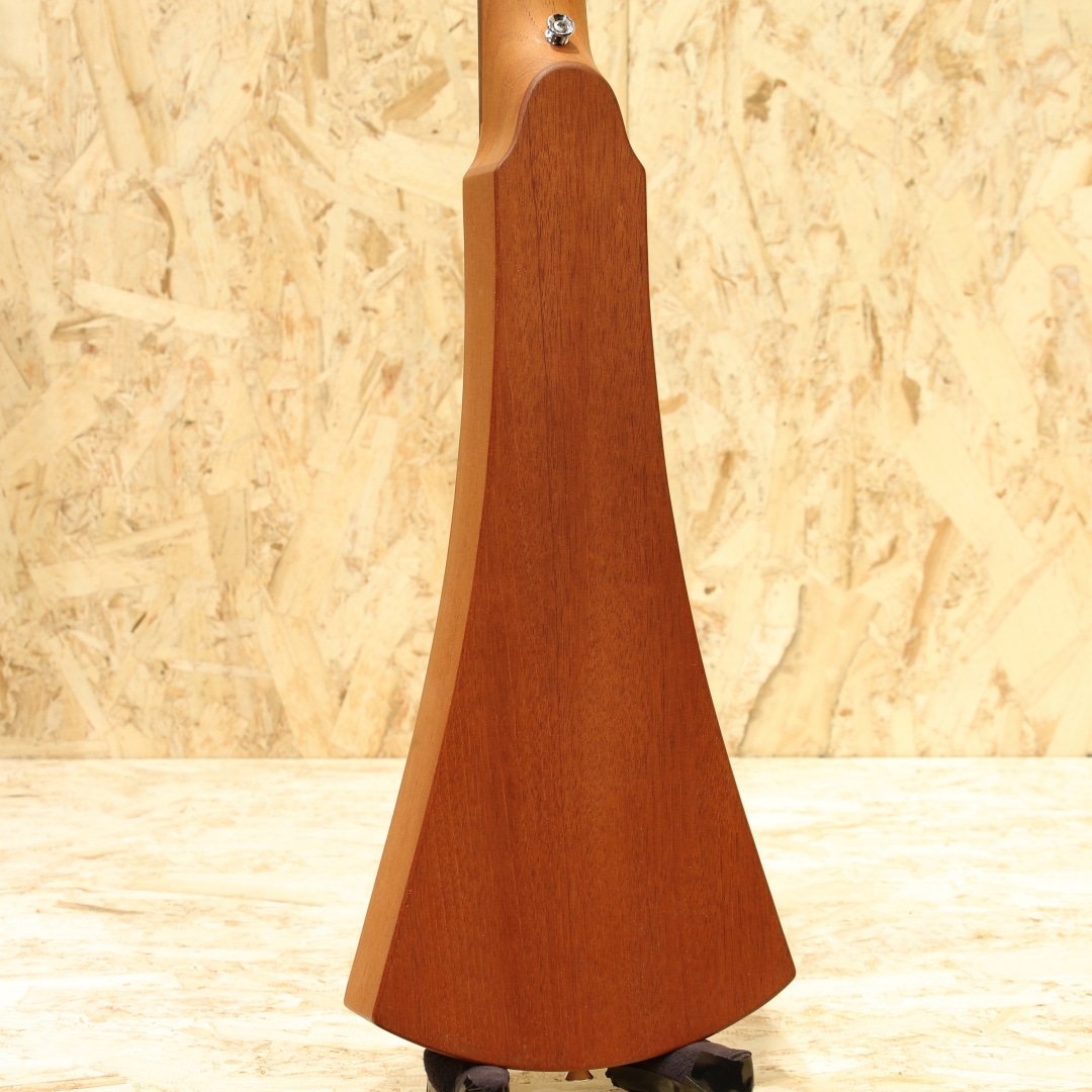 アコースティックギターを弾く人間は必ず耳にするギターメーカー”Martin”。現在のアコースティックギターという形を作り出し、180年以上楽器を製作し続けている老舗メーカーです。そのマーチンが楽器用の良質な木材の端材を利用して1992年に生み出したのが”Backpacker”。20年以上もバックパッカーたちに愛用されてきたトラベルギターの代名詞的存在です。本器は2000年代製のUSED品。スプルース単板トップ、トーンウッド単板サイド&バック、セレクテッドハードウッドネック、リッチライト指板&ブリッジ。楽器用材は一般の木材に比べて数少ない良質な部分を使用しているなど高価であることも多く、製作する上で出る端材をどうするかは職人にとっても課題と言えます。楽器を作る道具に使用することも多く見られますが、やはり楽器用材である以上楽器として使いたいところ。その端材を利用して少ない面積で製作できるような縦長のシェイプでバックパッカーは誕生しました。端材を利用して製作が行われているため、環境にも優しいエコと言えるギターです。細長いシェイプはリュックにも入れやすく、登山愛好家が持ち運ぶにも丁度良かった等バックパッカーに愛用されてきました。もちろん旅先での演奏、山だけでなく海などのアウトドア、部屋での気軽な演奏と使える場面を選ばないギターです。そして単板ボディでサイズ感からは考えられないふくよかさとリッチなサウンド。小型のギターでありつつも本格的な音色を持つトラベルギターのベストセラーと言える1本です。経年によって全体的に日焼けをしており、良い風合いとなってきたUSED品。ヘッド表の薄い擦れキズや角の当てキズ、ボディ1弦側角に擦れて薄っすら木が見えている箇所やボディ表面の薄い弾きキズや細やかな当てキズなど使用感は感じられますが、主な使用目的を考えるとキレイな状態をキープされています。ネックの状態も問題なし、これからも一緒に旅をして思い出を彩ることの出来る個体です。ギターと共に旅をしたいと思っていた多くのギターファンの夢を叶えた究極の旅ギター。一家に一台、何なら1人1台でも良いでしょう。手軽に使えるトラベルギター、是非お手元に如何でしょうか。