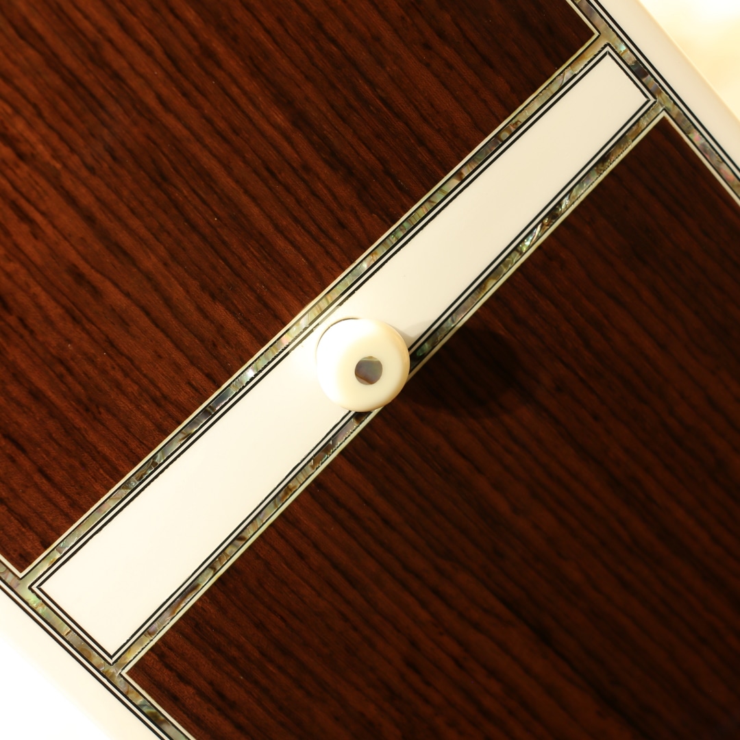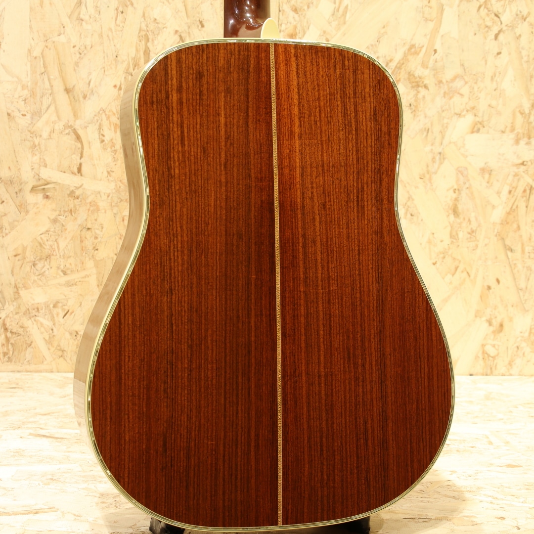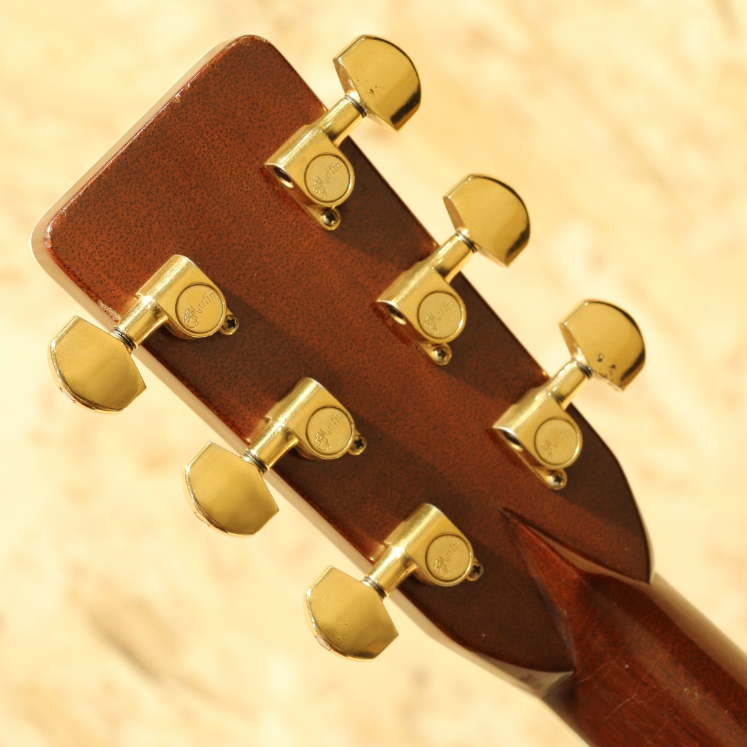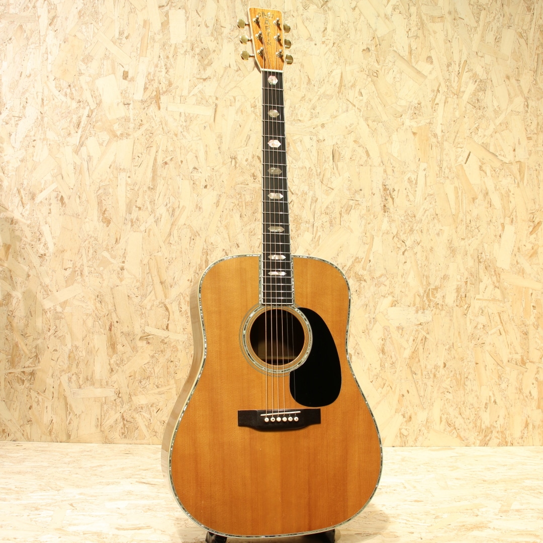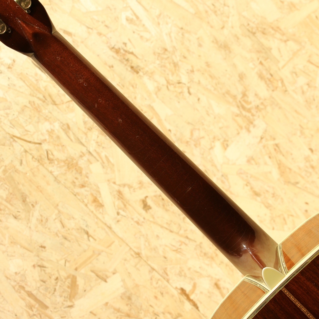 マーチン"D-45"はカントリーシンガー"Gene Autry(ジーン・オートリー)"からのからの特別オーダーから生まれたマーチンギターの最高級機種。1933年から1942年の間に91本が製造された後、1度その幕を閉じます。その後、マーチンギターの広報・研究家として活躍したマイク・ロングワースによって1968年に再生産が実現されました。マーチンスタイル45はこの型番に見合う材料を供給できない場合には生産されません。常にこの上ないクオリティを誇る最高のシリーズとなります。本器は2007年製の1本。最高級シトカスプルーストップ、最高級イーストインディアンローズウッドサイド&バック、マホガニーネック、アジャスタブル(AJ)ネックロッド、エボニー指板&ブリッジ、ゴールドゴトーロトマチックペグ、バーチカルヘッドロゴ、べっ甲柄ピックガード、アバロンヘキサゴン指板インレイ、アバロンロゼッタ&トリム、スキャロップドXブレイシング。豪奢な外観と華やかで煌びやかなサウンド、いつの時代も変わらない憧れの最高級機種。濃密で奥深い倍音、きらびやかで芯のあるトーン、広がりのあるワイドレンジな音色。"45"を冠するギターのみに許されたサウンドです。色味は綺麗な飴色に焼け、程よく弾き熟れ深みと広がりのある豊満なサウンドになっていますが、ネック周りもしっかりと手入れされ鼻通りの良いスッキリとしたサウンドの中に包容力があります。大きな使用感は見られず、塗装面やピックガードの極表面に薄いクロスで拭いたような擦れキズが見られる程度の非常に中古品とは思えない程のキレイな状態をキープされた極上USED品。ネック周りの状態ももちろん非常に良好なままにキープ。サドルでの調整幅を残し、ロッド残りも締め緩め共にありと今後の使用においてもバッチリな1本。憧れの45、眺めて愛でて良し、長年の気持ちを込めてガシガシ弾いても良しの1本。このモデルでしか体感し得ないサウンドを是非お手元でご堪能下さいませ。