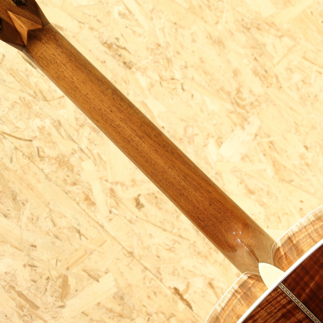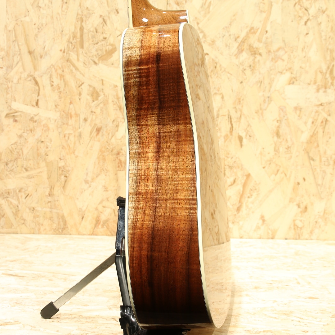 現マーチン工場の中でも、卓越した技術と豊富な経験から至極のギターを造り出す"Martin Custom Shop"。広大なマーティン工場の中でも一線を画し、時代をさかのぼったような空間で昔ながらの工法と最高レベルの技術によって生み出されるエリートセクションです。マーティンラインナップの中でも最高級モデルである"オーセンティックシリーズ"の製作をはじめ、高い完成度を誇るこだわりのカスタムモデルを製造するトップクラスの部門です。弊社スタッフが訪米し数ある極上材の中からさらに厳しく材を厳選しハンドピックを行い現地でカスタムオーダーをした弊社カスタムモデルです。ドレッドノートD42をベースに最高級のハワイアンコアを使用したK2スタイルです。最高級プレミアムグレードのハイリーフレイムドハワイアンコアをトップ&サイドバック材に使用、ジェニュインマホガニーネック、ブラックエボニー指板&ブリッジ、べっこう柄ピックガード、一時の期間のみ製造され人気の中惜しくも現在生産完了となった(ペンシルベニア州に生息するムラサキツバメ、ペンシルベニアの州花であるカルミアがモチーフ)パープルマーティンの指板インレイを採用。極上のコアとのマッチングは最高でその美しさは手前味噌ながら素晴らしいマッチングのアイディアで生まれた一本だと確信しています。バーチカルヘッドロゴ、アバロンパーフリングボディトップ、モザイクバックストリップ、グローバーバタービーンゴールドカラーチューナー、フォーワードシフテッド・スキャロップドXブレイシング、44.5mmナット幅、フルスケール。スプルーストップに比べ、ややダークで太く芯の通った音像、下に重心がありながらどこまでも伸びる豊かなサスティン。幾重にも重なる倍音はタッチによってその表情をかえ音色を豊かにしてくれます。凛としたサウンドキャラクター、ビジュアルの美しさと品、嫌みがなく程よいバランス感であらゆる側面で満足感の高い一本です。もちろん演奏性も抜群でデフォルトでとても弾きやすいセットアップに仕上がっています。いつ枯渇するかわからない最上級のコアモデル。1本のみのオーダー品です。早い者勝ちです。