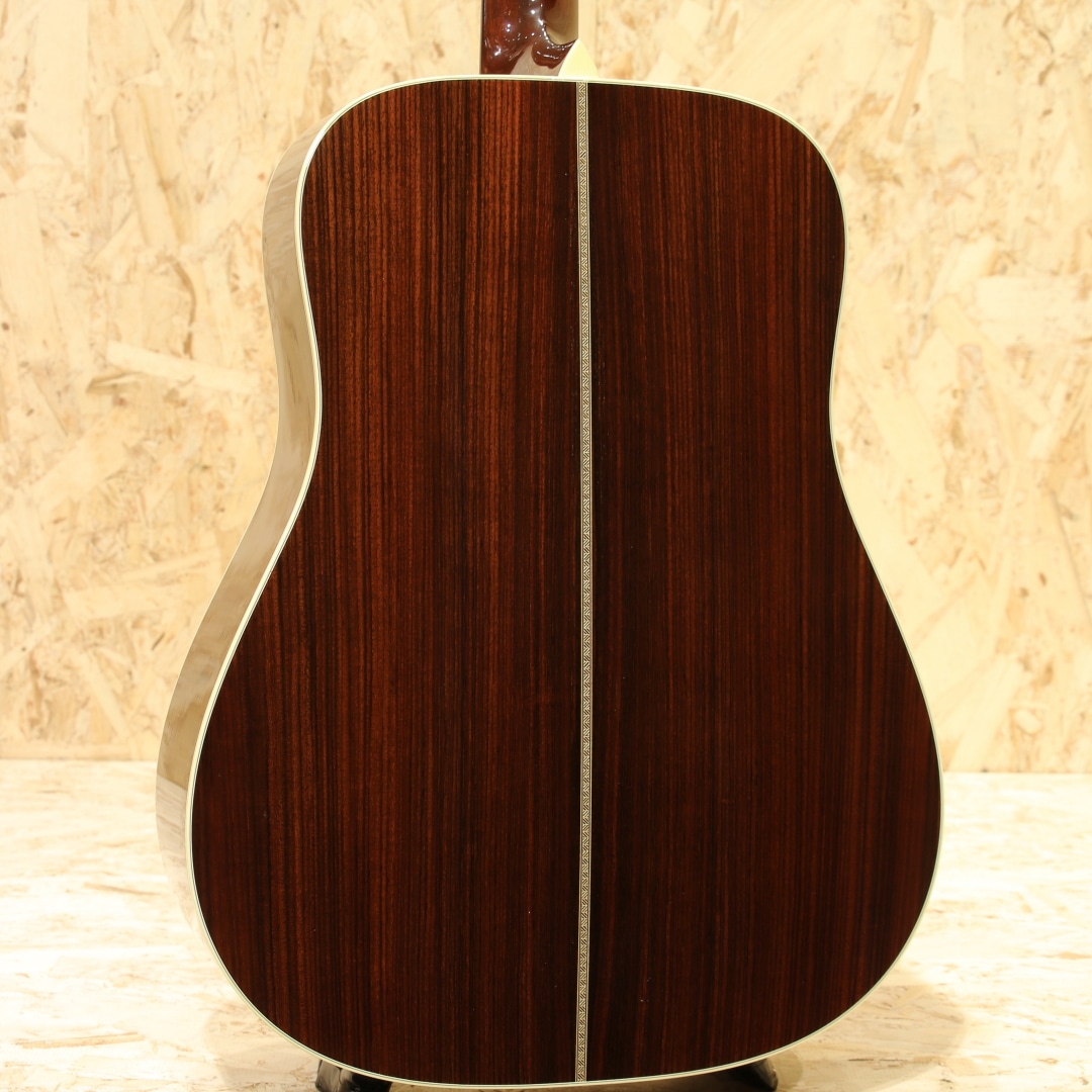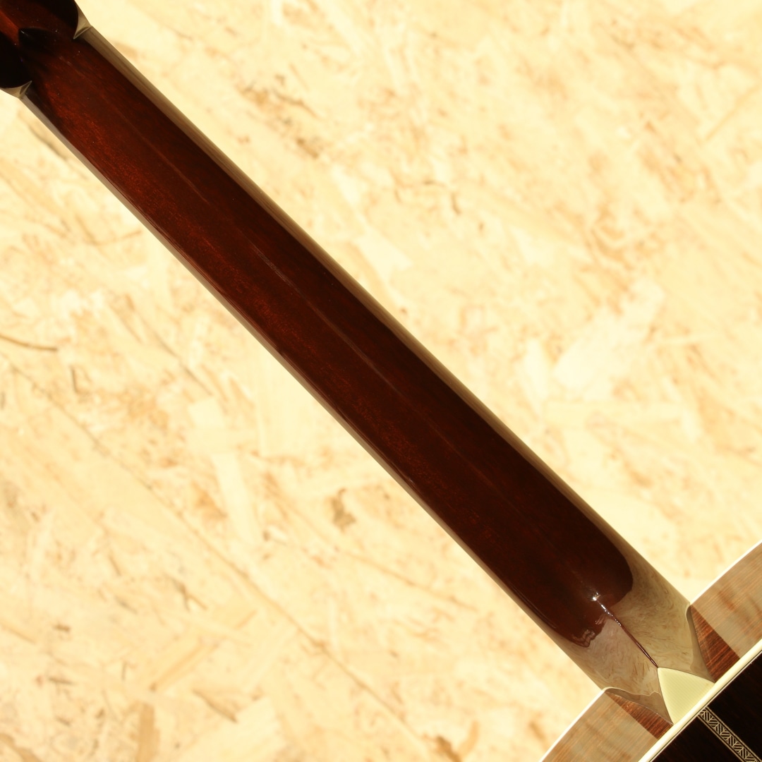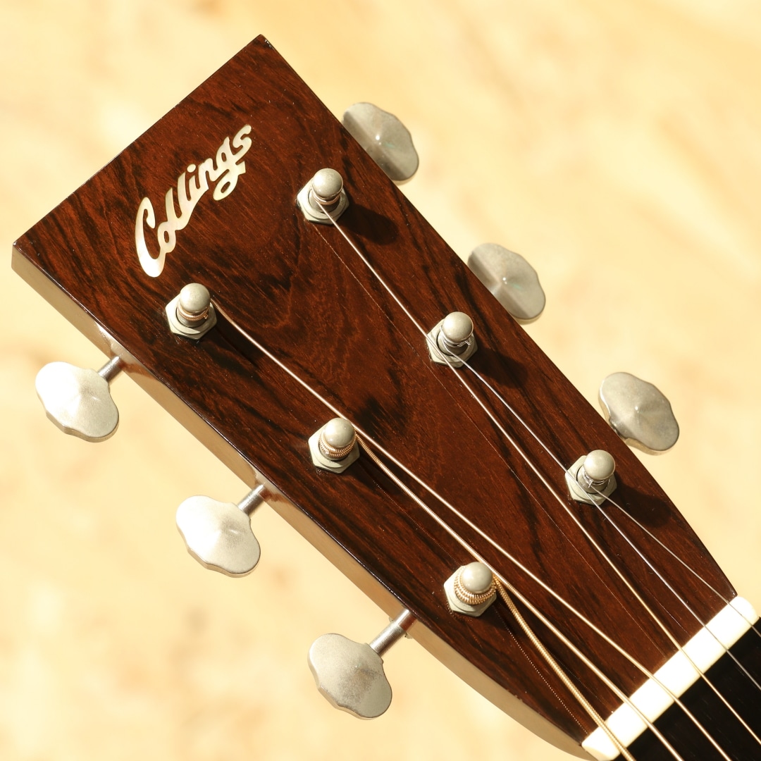 1980年代に創業者ビル・コリングスが小さな工房からスタートしたコリングス。戦前マーティンよりインスパイアされたスタイルで製造を開始し、みずからに昇華させたスタイルは唯一無二となり、世界的にもっとも高く評価を得ているブランドの一つとなっています。コリングスの高く保たれたその完成度は、プレイヤーがその楽器を手に持つだけで見惚れてしまう美しさを持ち、音を出せば納得する響きを放ちます。本器はスタイル28を基にしたモデル"D2H"。1996年製USED品です。現在の仕様であるUV塗装に変更になったのは1998年。オールラッカーフィニッシュを採用していた時代のものでフィニッシュのマテリアルは現行のトラディショナルシリーズに相当します。シトカスプルーストップ、イーストインディアンローズウッドサイド&バック、マホガニーネック、エボニー指板&ブリッジ、ノーマルスロットサドル、ウェバリー4060オープンギヤペグ、ダイアモンドスクエアー指板インレイ、べっ甲柄セルロイドピックガード、ヘリンボーントリム、ジグザグバックストリップ、アイボロイドバインディング。コリングスを象徴する点としてはピッチの正確さ、ハイポジションまでトーンの変わらないピアノのような発音、そして一貫したクオリティーの高さが挙げられます。理屈から基づくドラスティックな工夫やアイデアと忠実に再現できる技術力は腕利きの職人をそろえた盤石の布陣で織り成す木工技術の高さ。どの角度から見ても唸らせてくれるほどのハイレベルさです。D2HはトラッドなD-28スタイルを踏襲し、迫力のあるサウンドや空気感を含んだレンジ感の広いトーンを継承しています。太い音色、芯の強い輪郭のハッキリとしたサウンド、磨き抜かれたような煌びやかで金属的なコリングスサウンド。唸るように響く低音感、ボリューム感のある出音。立ち上がりの鋭さは細やかなフレイシングにも追従し、押弦し音を奏でるイメージとズレることなく出音が響きます。タッチによる強弱への追従性も高くダイナミクスレンジの広さ、緩急をつけた演奏にも存分に対応。強いタッチ感でのダイナミックなサウンド、繊細なタッチでも太く響くトーン、そのボリューム感や響きは中々他では体感することが出来ません。コリングスらしい魅力を存分に体感できる1本。指板エンドのトップ付近やセンターシーム付近にはわずかに引きが見られますが、この時期の個体では珍しく全体的にラッカーチェックがほぼ見られない個体。全体的にも極僅かな薄い擦り傷等は見られますがプレイヤーに好まれるコリングスとしては使用感が大変薄い素晴らしいコンディションの個体です。ペグはエイジドさながらの使用感はありますが、外観的なもので機能には問題ありません。ネックもストレートで演奏性も非常に高い1本です。クオリティーに高さから圧倒的に玄人ユーザーからの支持を受けるハイブランドコリングス。現在もどんどん高騰をみせています。是非お手元でご体感下さいませ。