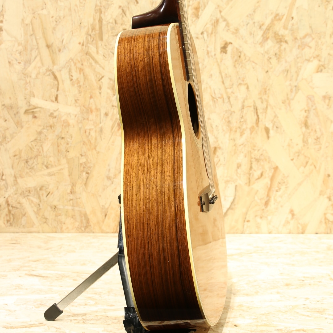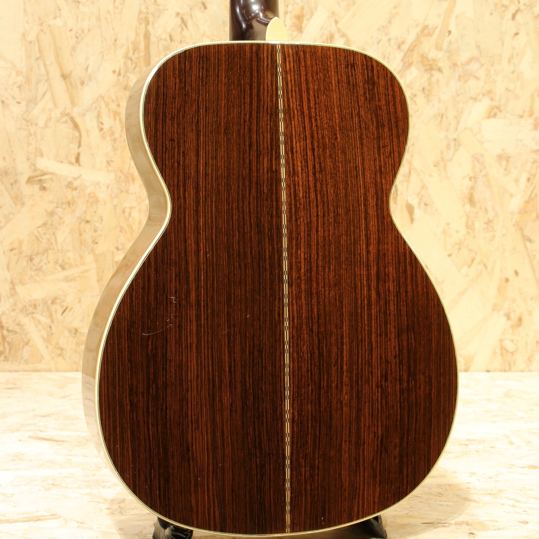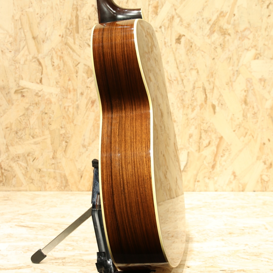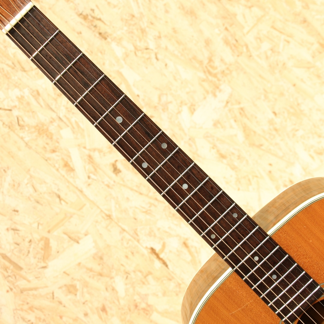 1983年より生まれたシェナンドー。当時のアコースティック不振の最中に、手頃に手に入るギターを作ろうとして立ち上げられたブランドでした。80年代は日本で製作したボディとネックを、マーチン社で組み上げと仕上げまでを行っていました。その後完全に国産で作られる時代を経て終幕を迎えたブランドです。本器はOOO-28タイプで製作を行われた”OOO-2832”。1980年代製のUSED品です。スプルーストップ、マホガニーサイド&バック、マホガニーネック、ローズウッド指板&ブリッジ、ドット指板ポジション。シェナンドーブランドは1984年から1987年までマーチンの売上の25%以上を支えたとも言われており、マーチンが苦境を乗り越えることが出来た1つの要因でもありました。マーチンのスタンダードなモデルをベースとして、合板のサイドバックを使用したスペックで製作。標準でThinline-332ピックアップとADJトラスロッドを搭載した仕様を採用されていました。このブランドで製作を行う中でピックガードの接着方式も見直され、後にマーチンブランドでもADJトラスロッドとピックガード後貼り方式は採用されていきます。更にその後には合板を使用したモデルを本家マーチンで発表し、本ブランドで培ったノウハウを活かした製作を開始しました。マーチンの歴史的にも一つの転換点となったブランドと言えますが、およそ9年程でマーチンでの製作を終了しています。本器はOOOサイズで機動性に優れた特徴と抱え易さ、そしてトーンバランスに優れたサウンドが持ち味。低音が出すぎずに高音が埋もれないことから、美味しいところを前に出しやすい点も魅力と言えます。そしてDサイズよりも音域が中域寄りとなるため、音の密度が上がり解像度の高い響きとなる点も美味しいポイント。フィンガーでのキレイな響き、アルペジオの粒立ち良いサウンド、ストロークでも音の分離感からコード感を伝えやすいメリットを持ちます。演奏スタイルを問わず扱いやすい点、ギターだけをメインで弾く方にも抱えやすく演奏性が高い点や押し出し感のある響きから好まれるであろうオールマイティな1本です。ヘッド付け根に黒い塗装が施されておりますが、割れや折れの痕跡は見られず使用上問題の無い状態となっています。やはり経年故に細かな擦れキズ、若干深めの擦れキズ、細やかな当てキズやサウンドホール周りに弾きキズ等見られますが使用上問題のある状態ではなく、板の割れは見られずでまだまだ使用していける状態です。ネックのコンディションも良好、サドル残はこの当時の楽器の為若干少なくなっていますが弦高としても現代的なセッティングで演奏性良し。廉価版として製作されていたシェナンドー、掘り下げると本家の歴史にも僅かながら影響を与えていました。アコースティック不遇の時代を乗り切るために本家マーチンを支えたブランド。その歴史を垣間見ることができ、比較的リーズナブルな点からも手に取りやすい1本。是非ご検討下さいませ。