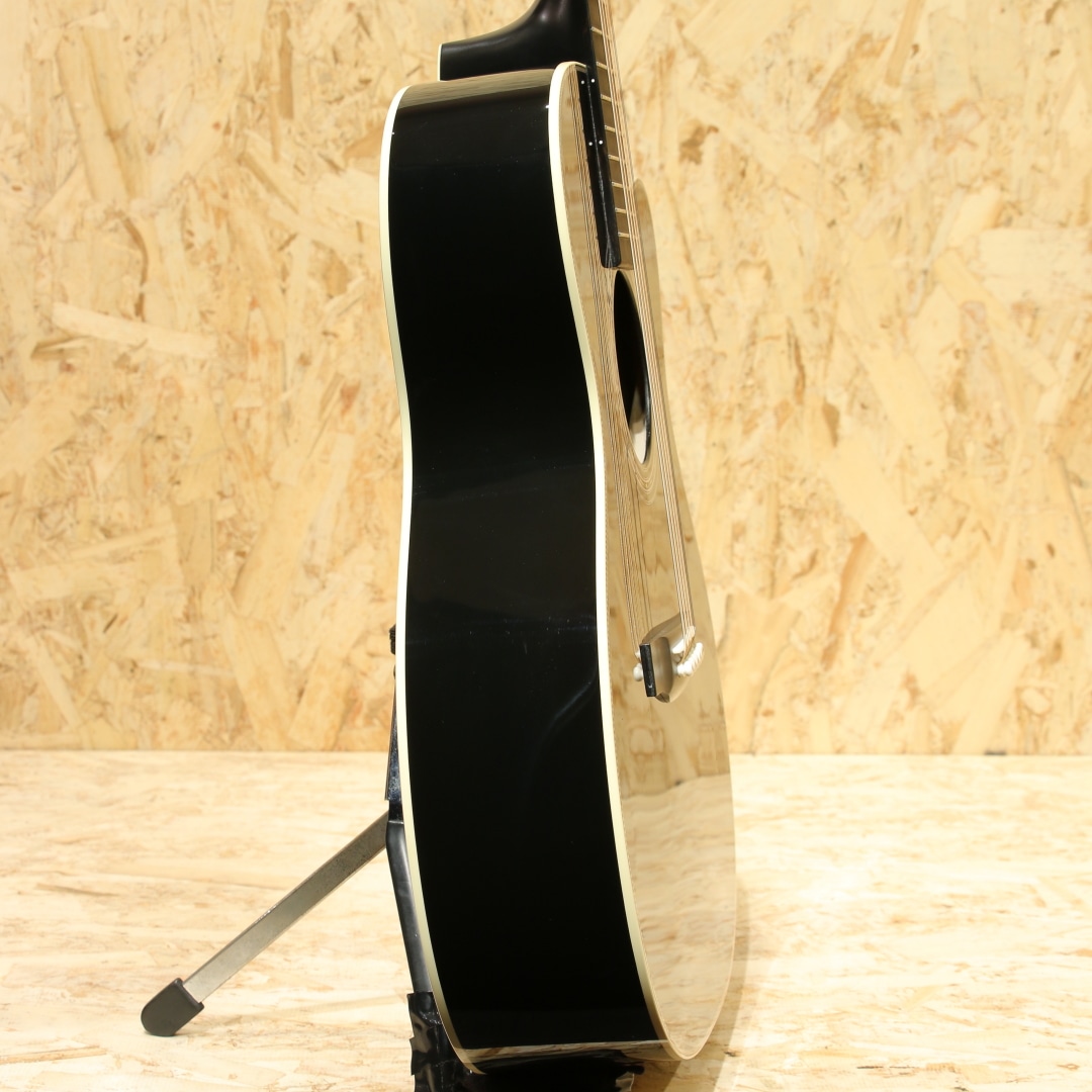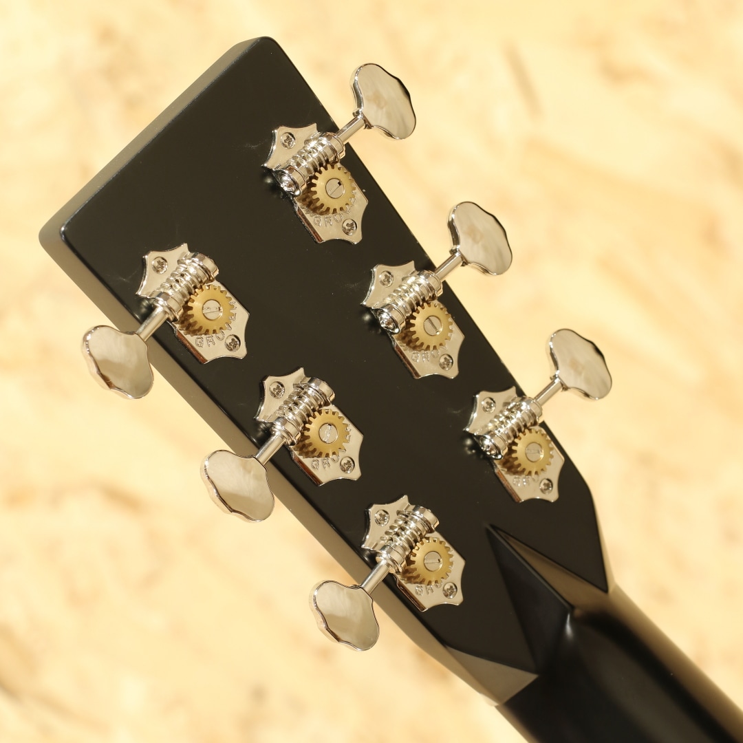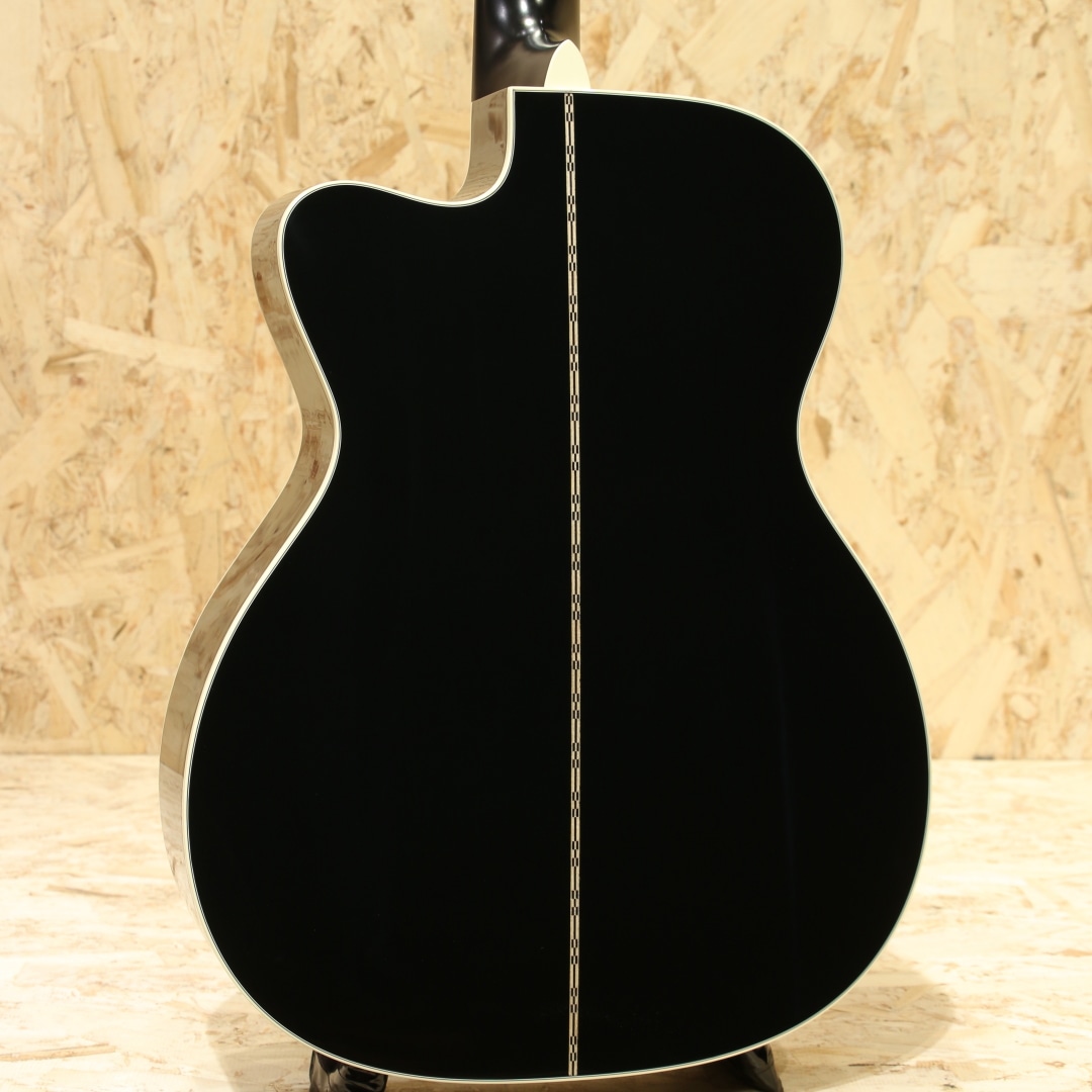 現マーチン工場の中でも、卓越した技術と豊富な経験から至極のギターを造り出す"Martin Custom Shop"。レギュラーラインとは全く異なった環境、工程にて製作。工場の一角に専用の区画があり、昔ながらの工法を継承しながらより精度の高い製作を行っています。ラインナップ上最高峰と言えるオーセンティックシリーズの製作をはじめ、高い完成度を誇るカスタムモデルを製造するトップクラスの部門です。本器は弊社スタッフによるカスタムオーダーモデル”CTM OMC-28 Cedar Black”。ウェスタンレッドシダートップ、インディアンローズウッドサイド&バック、セレクトハードウッドネック、この仕様であればナット幅は45mmにしたいところですがMartinサウンドでよりフィンガースタイルにフューチャーするべく本器は現行品と同じ44.5mm幅を採用、645mmスケール、モディファイド・ローオーバルシェイプネック、スタンダードテーパー、ブラックエボニー指板&ブリッジ、ダイアモンド&スクエアロングアバロン指板ポジション、グローバーオープンバッククロームペグ、オールドスタイルヘッドロゴ、ゴールデンエラ(GE)スキャロップドXブレイシング、ベネチアンカッタウェイ、ブラックカラー仕上げ。ベネチアンカッタウェイにモディファイド・ローオーバルシェイプのネックと演奏性を快適且つ向上させる仕様も嬉しいポイント。後述するサウンド面も拘りの仕様ですが、ルックス面も拘った本器。OMスタイルでは数の少ないカッタウェイ仕様、マーチン社でも珍しいシダートップ且つブラックカラーは他のモデルでは見られず唯一無二の特徴となります。音の情報量が多く、輪郭の明瞭さや中域の密度感の高さを感じられる本器。トップに用いられているウェスタンレッドシダーは通常モデルに採用されているスプルースと比較するとより暖かく甘い音像。スプルースよりも柔らかく軽量な為、スプルースのようなシャキッとした明瞭さよりも、包み込むようなウォームさが際立ちます。繊細なタッチでも十分に鳴りやすく、中低域が豊かで柔らかく温かみのあるトーン。ローズウッド材がもつ重厚で煌びやかな音色と立ち上がりの良い中高音域を感じつつその素早いレスポンスと豊潤な倍音でフラットピッキングはもちろんのこと、フィンガースタイルとの相性が高い音色。どのポジションでももたつかず安定したトーンで発音される為一度爪弾くだけでその心地よい音の抜け感と高域の甘く美しい倍音を体感でき、硬すぎず馴染みよく入ってくるサウンド特性と嚙み合わさりメロウに弾けるギターへと仕上がっています。企画者の拘りが詰まったカスタムショップ製OMC-28。是非この演奏性とサウンドクオリティの高さを一度お試し下さいませ。オリジナルハードケースが付属いたします。
