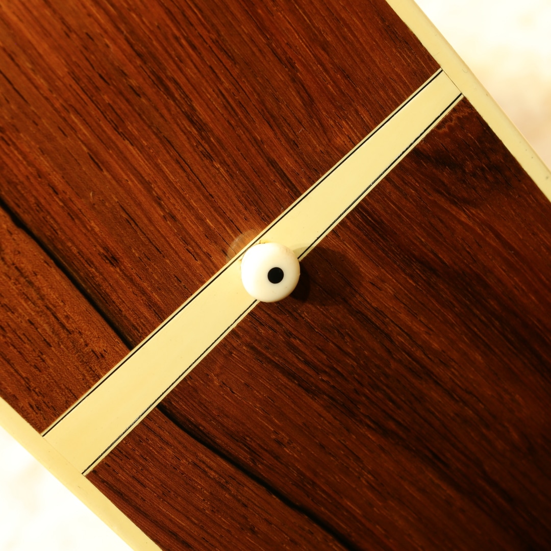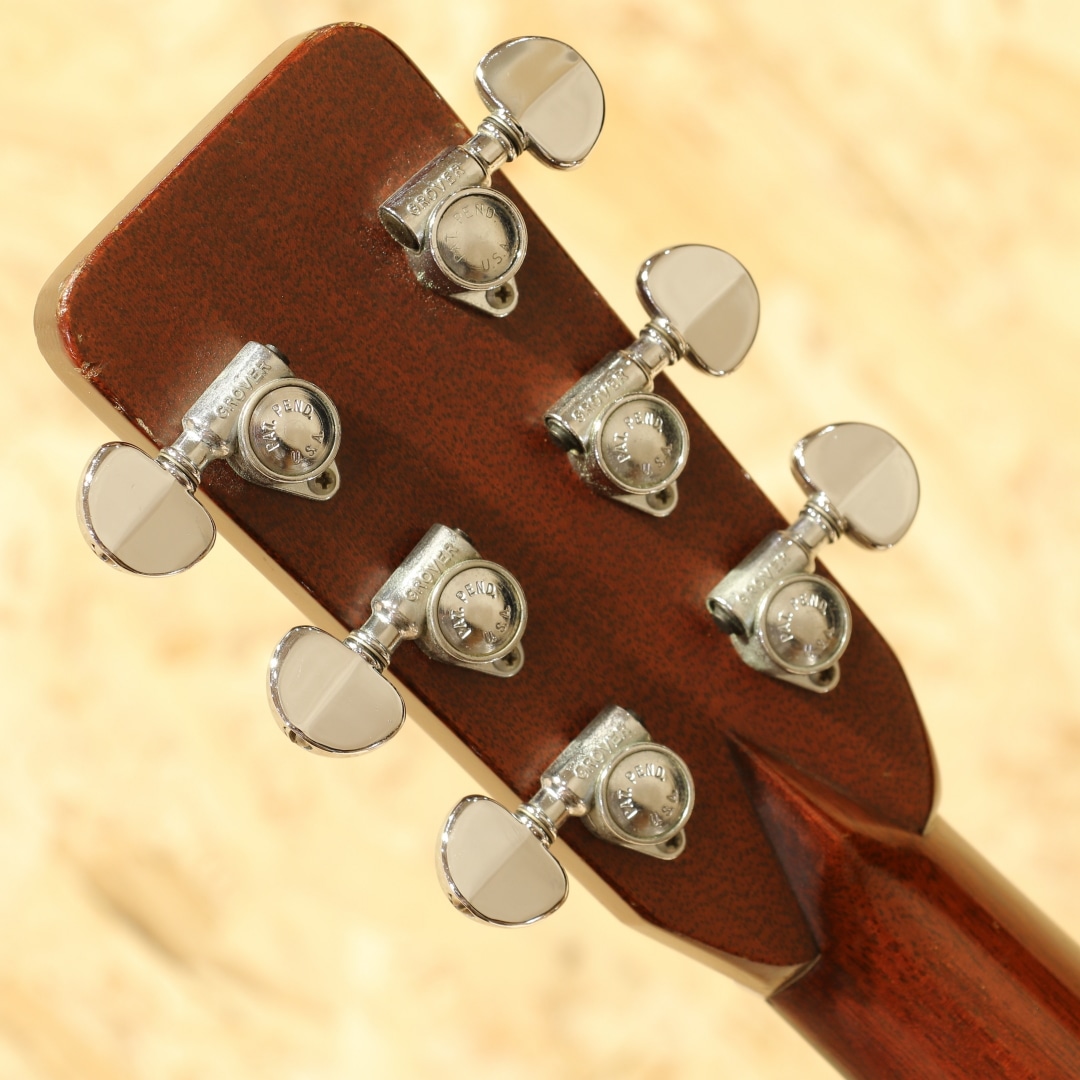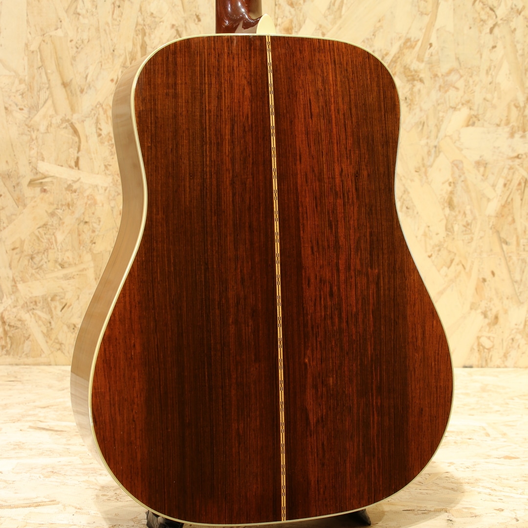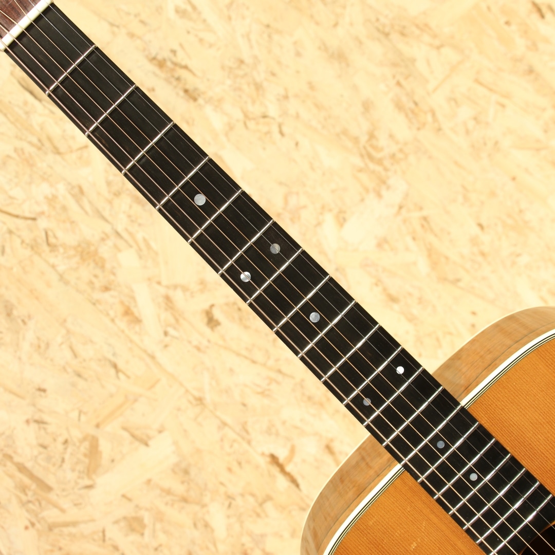 マーチンギターの中で最も有名なモデルと言えば、”D-28”。アメリカントラッドミュージックで数々の名演を残し、今なお多くを魅了し続けるモデル。世界で最も愛されるアコースティックギターの1つです。本器は1968年製Vintage美品。杢の揃ったスプルーストップに、サイド&バックはキレイな柾目杢のハカランダが使われています。マホガニーネック、エボニー指板&ブリッジ、オリジナルミルクボトルグローバーペグ、ピックガードは同サイズでフィニッシュも施されたオリジナルと見紛うブラックガードに交換、スモールローズウッドブリッジプレート、スクエアネックロッド、チェッカーバックストリップ、ハカランダ化粧板、ノンスキャロップドXブレイシング。この時期の特徴にもなる骨太で少しコンプがかったような立ち上がりが弾けるようなパンチのあるサウンド。深みがありつつも重たくなりすぎない低音感、何より圧倒的な音量やはり後のインディアンローズウッドの仕様とは完全に一線を画しハカランダマーチンならではの品格です。ピック弾きでのパフォーマンスに特に力を発揮し、分離よくクリアでアルペジオなども明瞭です。サウンドホール寄り、ほぼガード下のためぱっと見ではあまりわからないレベルのマーチンクラックの補修、その他クラックなどは見られず、わずかな小傷やウェザーチェックが部分的にみられる程度で半世紀経たことを感じさせないとてもキレイな外観を保った美しい1本。ネックはリセット、リフレット済み、ナットサドルなどの消耗品は交換されています。プレイコンディションも良好です。年々高騰を見せながら、良品の玉数が少なくなっているハカランダマーチン。是非お手元でお楽しみください。汎用ハードケース付属