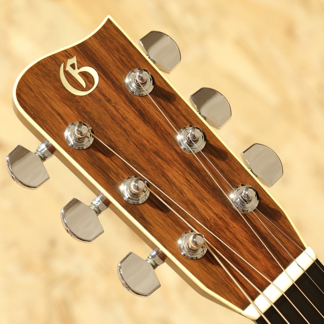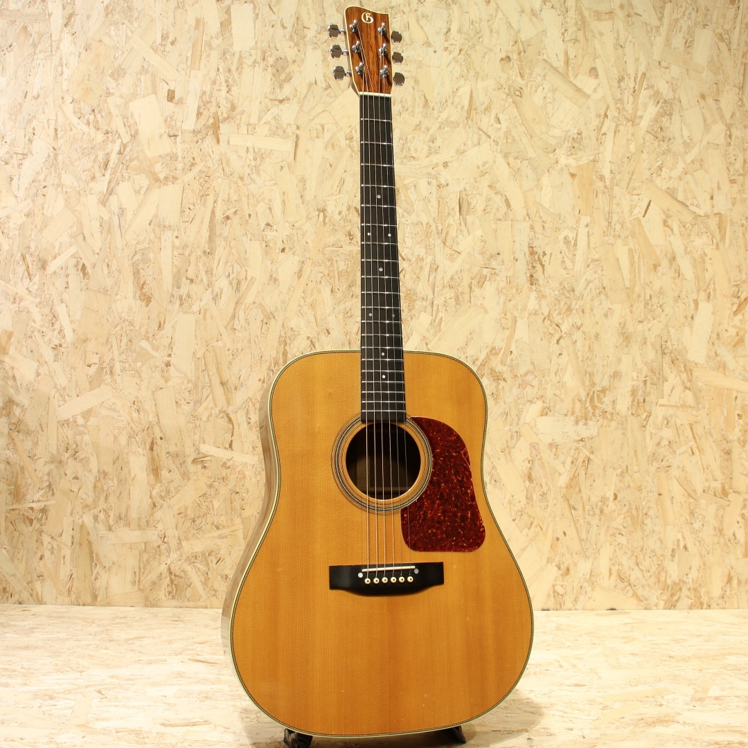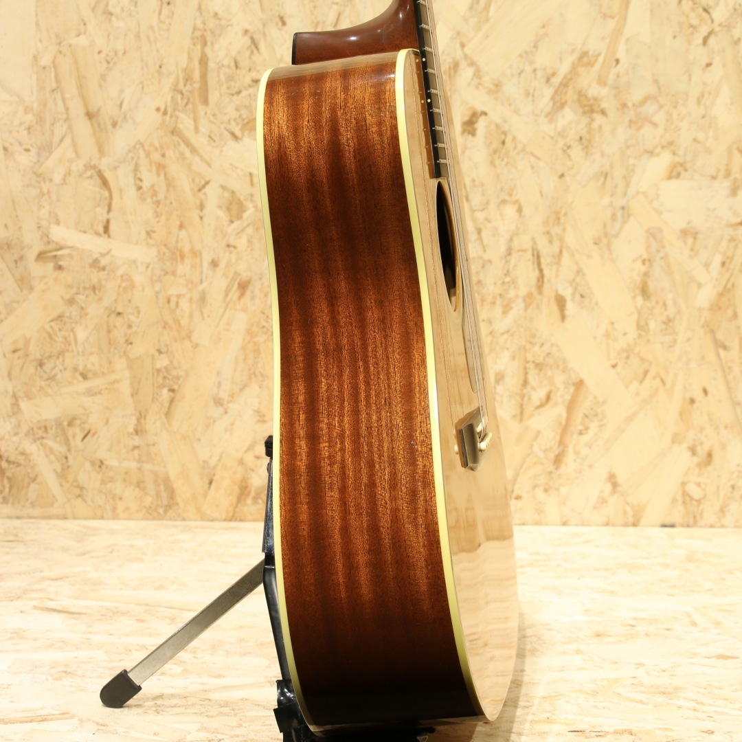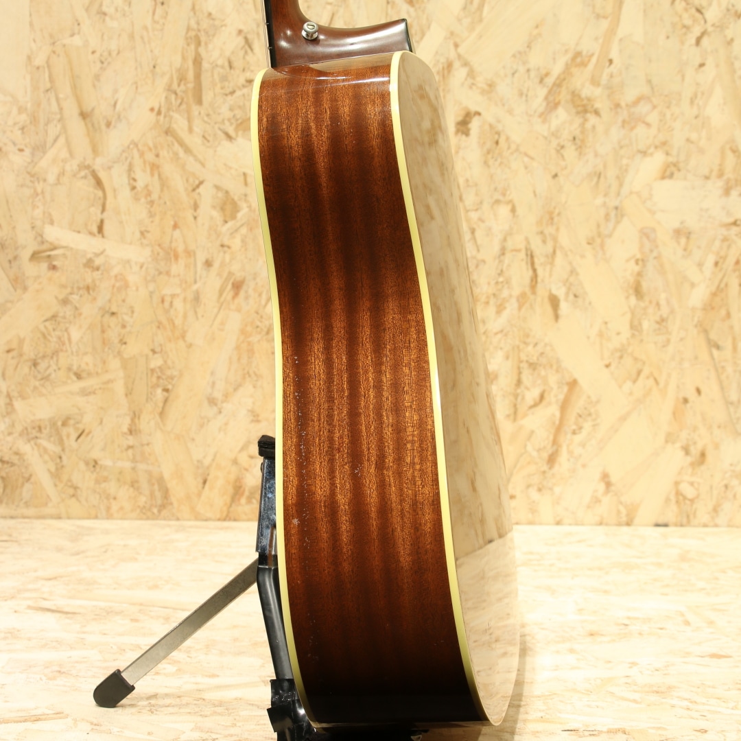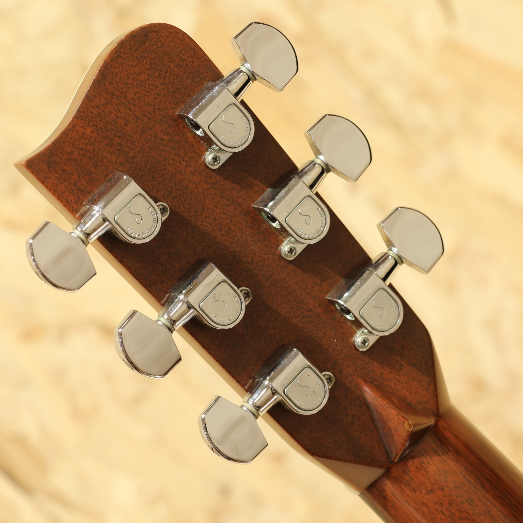 名手ドク・ワトソンの使用で知られるテネシー発ブランド"Gallagher Guitar"。熟練の木工職人であるJWギャラガーは、当初スリンガーランド・ドラム工場にて新型シェルビー・ギターの生産ライン立ち上げのために雇われました。その後、1965年に自らの名前を冠した最初のギターを製作したのが本ブランドの起源となりました。1969年、息子とともにギター製作に励んでいた彼らはユニオングローブで開催されたフィドラーズ・コンベンションに参加。その場所でドクワトソンと出会いました。本器は、ドクワトソンが気に入って使用していたG-50からインスパイアを受けたモデル"Doc Watson"、1996年製のUSED品。シトカスプルーストップ、マホガニーサイド&バック、マホガニーネック、エボニー指板&ブリッジ、シャーラーロトマチッククロームペグ、ドット指板インレイ、べっ甲柄ピックガード、ヘリンボーンロゼッタ&トリム、ジグザグバックストリップ、アイボロイドバインディング、スキャロップドXブレイシング。マホガニードレッドの明るく抜けの良い質感。ボリュームもありながら音像はぼやけず、ストローク時の空気感を含んだ迫力のあるサウンドは本器の魅力の1つです。単音でのトーンも太く、ブルーグラスでガンガン弾いていただくも良し、カントリーライクな弾き語り、ドロップチューニングでもハッキリとした発音ですので、フィンガーピッキングでもご使用いただけそうなオールマイティな1本です。広めのナット幅で分離よく明瞭な音色、やや丸みのあるVシェイプネックで幅広さを感じさせない馴染みの良いネックです。ネックボリュート先端の打痕、ボディの随所に打ちキズのようなものが散見されますが、どれも表層的なもので経年を思えば良い状態が保たれています。ネックコンディションも良好、現代的な弦高セッティングでまだ調整幅も余裕があります。是非ご検討ください。オリジナルハードケースが付属します。