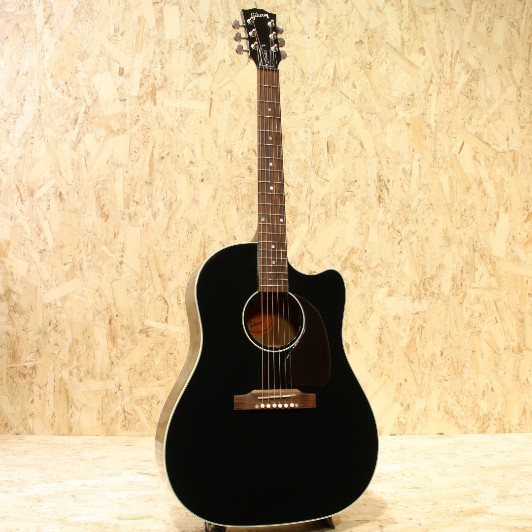 "The Workhorse(頼りになる馬車馬)" の愛称で信頼されるベストセラー・モデル。ウォームな低域とエッジの効いた中高域が織りなす優れた表現力でプレイヤーを支え、どんなときにも信頼できるパートナーとして1942年の登場以来、ギブソン・ラウンド・ショルダー・ラインナップの中心的役割を担い続ける”J-45”。基本的なスタイルは継承されつつもマイナーチェンジを繰り返し、年々進化し続けております。本器はカッタウェイが搭載されたモデル”J-45 Standard EC”、ラウンドショルダーモデルの中でも人気の高いエボニーブラックにて仕上げられた2018年製の1本。シトカスプルーストップ、マホガニーサイド&バック、マホガニーネック、ローズウッド指板&ブリッジ、グローバーペグ、MOP指板ドット、べっ甲柄スモールガード、スキャロップド・Xブレイシング、L.R.Baggs Element VTCピックアップ搭載。カッタウェイ仕様を除けば、J-45 Standardモデルと同様、ダイナミックなストロークからフィンガープレイまで幅広く応えてくれるオールラウンドな1本。カッタウェイを施しハイポジションでの演奏性は飛躍的に向上しています。ローコードからギターソロプレイまでガンガンご使用いただけます。ブラックカラーの為、表面上に擦り傷が確認できやすいですが、割れ等の大きなダメージは無く、パーツのくすみなど外観上の使用感のみと綺麗な状態が保たれています。演奏面に関わるネックコンディション等は問題なし、憧れのギブソンサウンドとプレイアビリティの高さを両立させた1本。オリジナルハードケースが付属します。