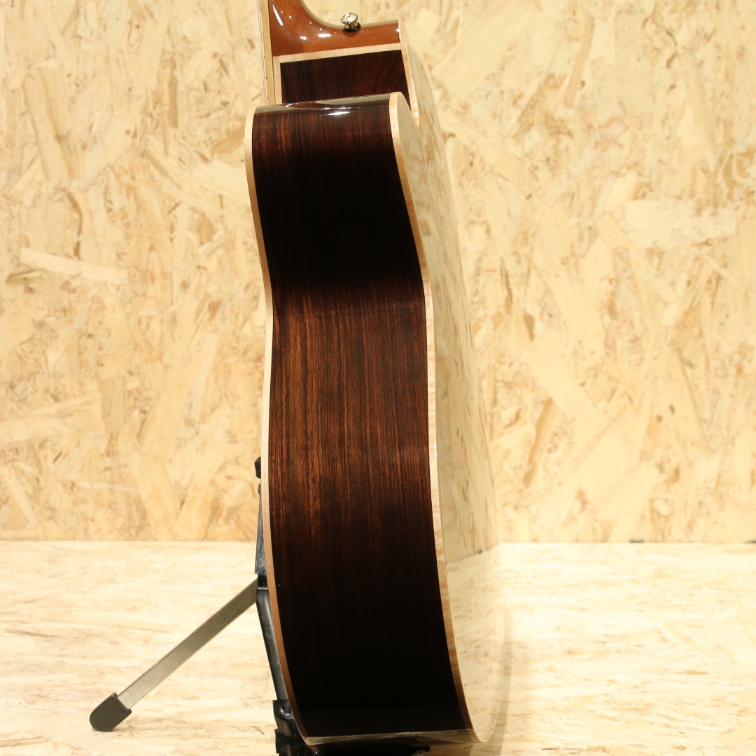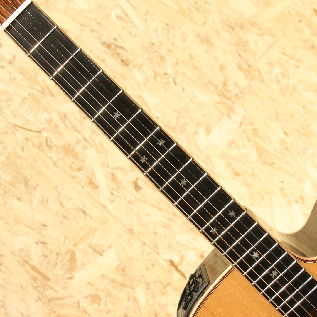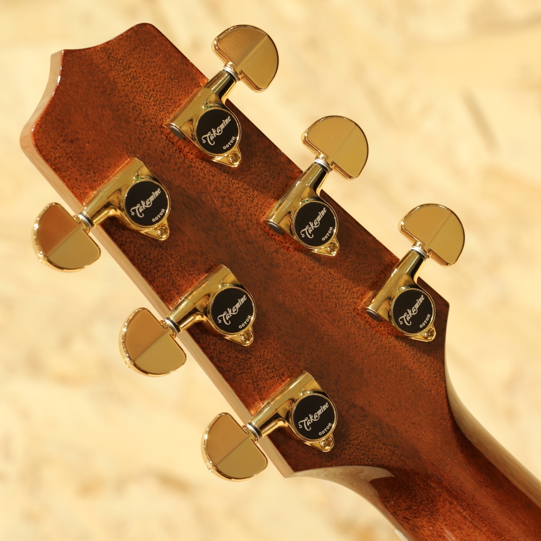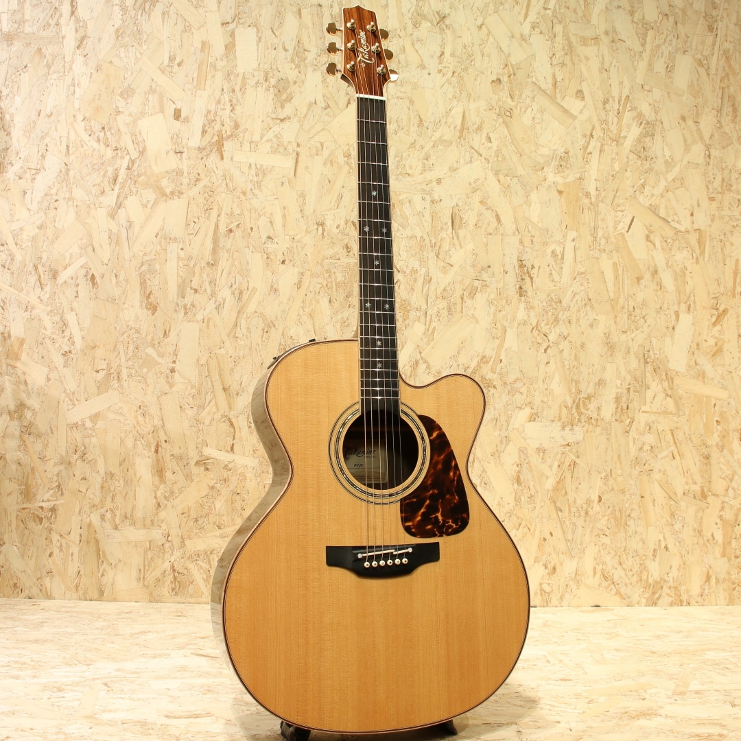 「ものづくり 音づくり 人づくり」をコンセプトに50年以上ものあいだ、日本そして世界のミュージック・シーンやアーティストをギターづくりという形で支え続けてきた国産ブランド、”タカミネ”。長年培ってきたギターづくりのノウハウを現在も継承し、岐阜県中津川市に構えるファクトリーでは今もなお様々なギターを世に生み出し続けています。本器は日本未発売の海外向けモデル、ジャンボボディにカッタウェイを搭載したオール単板エレアコ”P7JC”。2017年製USED品。シトカスプルーストップ、ローズウッドサイド&バック、マホガニーネック、エボニー指板&スルーブリッジ、オリジナルゴトーペグ、ベネチアンカッタウェイ、タカミネパラスティックピエゾ&CT-4 DXプリアンプ搭載。元々海外で高い評価を受けたことで日本でも人気になった経緯を持つタカミネ。海外に向けたモデルを製造することにも納得の歴史を持ってます。基本スペックではサイドのみ合板とすることも多く、耐ハウリング性能を考慮しての設計を行っています。その中でも本器は珍しくオール単板仕様のエレアコモデルとした上位機種。現在海外では50万円近くの値段で販売がされている機種です。生ギターの設計に近い構造とタカミネが得意とするピックアップシステムを両方取り入れた欲張り仕様となっています。カッタウェイを搭載しているところからポジションを問わない演奏性も確保された設計。ジャンボボディとすることで迫力のあるロー感を出しやすく、重厚な響きを体感できます。タカミネらしく音色のトーンバランスも整えられたサウンド。扱いやすさに焦点が置かれ、音の芯をきっちりと出力する音色は変な癖を感じさせません。通常のモデルと比べても生の響きにふくよかさを感じられ、また一味違った印象を持つであろう1本。デュアルモードを搭載したCT4-DX(DMP)を採用。タカミネを象徴するパラスティックピエゾ&コンタクトピエゾをこの個体は標準搭載しており、プリアンプで任意のミックスと音作りが可能となっています。2系統のEQとノッチフィルターにより、それぞれのピックアップの個性を最大限に活かしたイコライジングと任意のミックス・バランス調整によりフレキシブルなサウンドを実現します。細かなサウンドメイクが手元のみで調節できるのもタカミネならではのポイントです。ボディサイド6弦側のくびれやや下に薄い当てキズが見られるのが惜しい点、薄い擦れキズ等の若干の使用感こそ見られますが、全体を通してもキレイなコンディションをキープされている個体です。ネック周りの演奏性も国産ギターならではの良好な状態を保たれ、ステージでの演奏をサポートしてくれるであろう1本となっています。人気の高いタカミネ、日本未発売モデルの為珍しいギターです。ファンの方にはもちろんのこと、バンド編成でも埋もれないエレアコをお探しの方は是非お試し下さい。