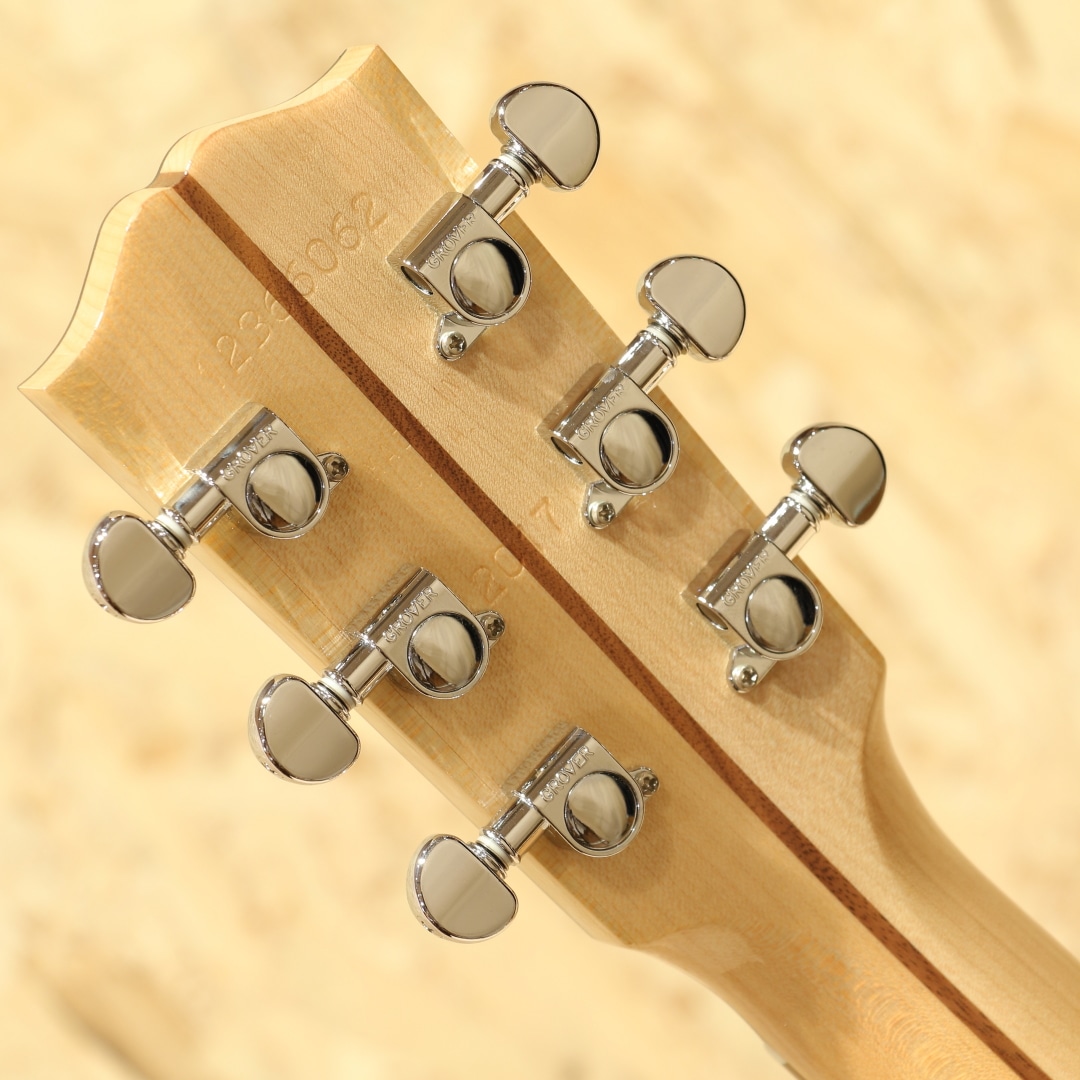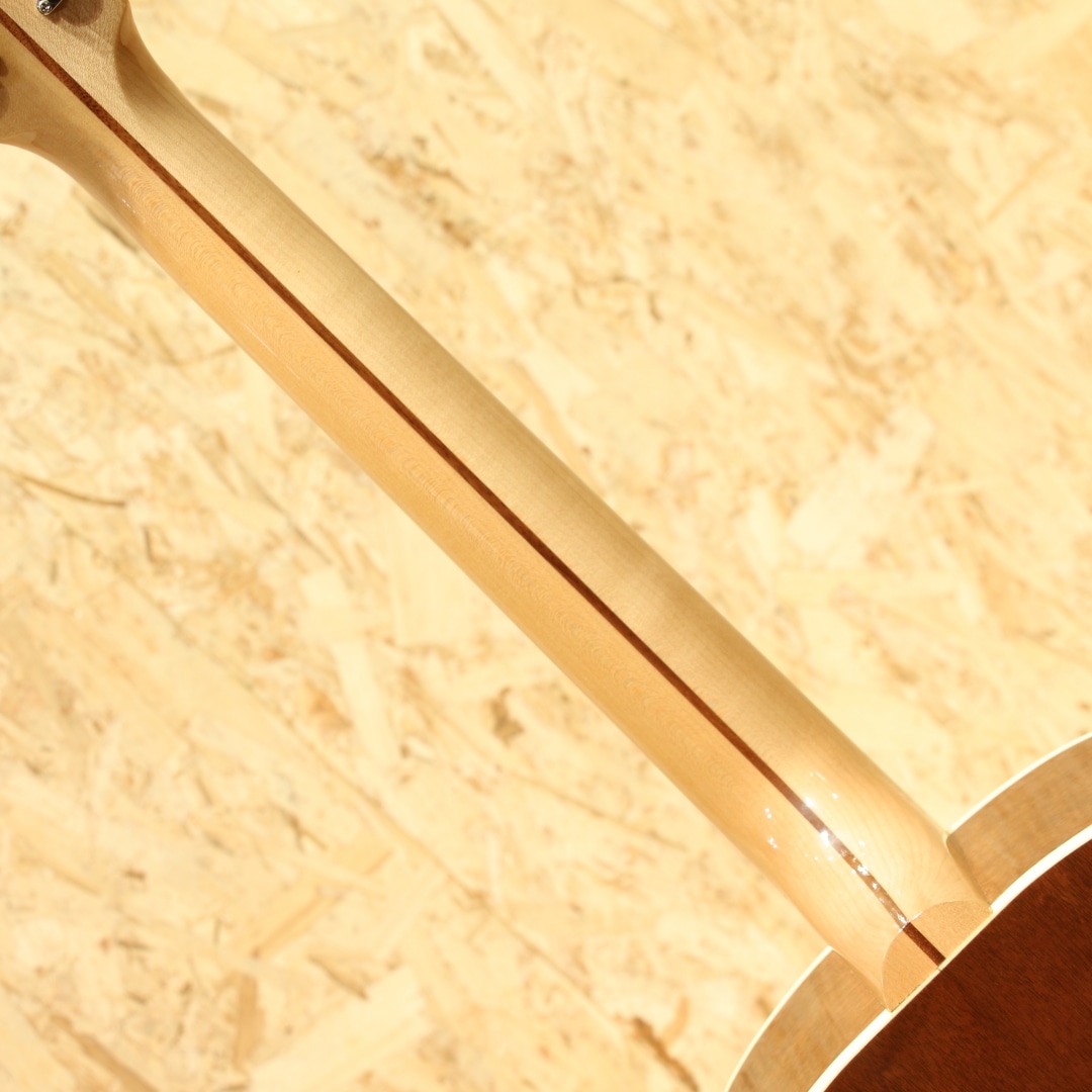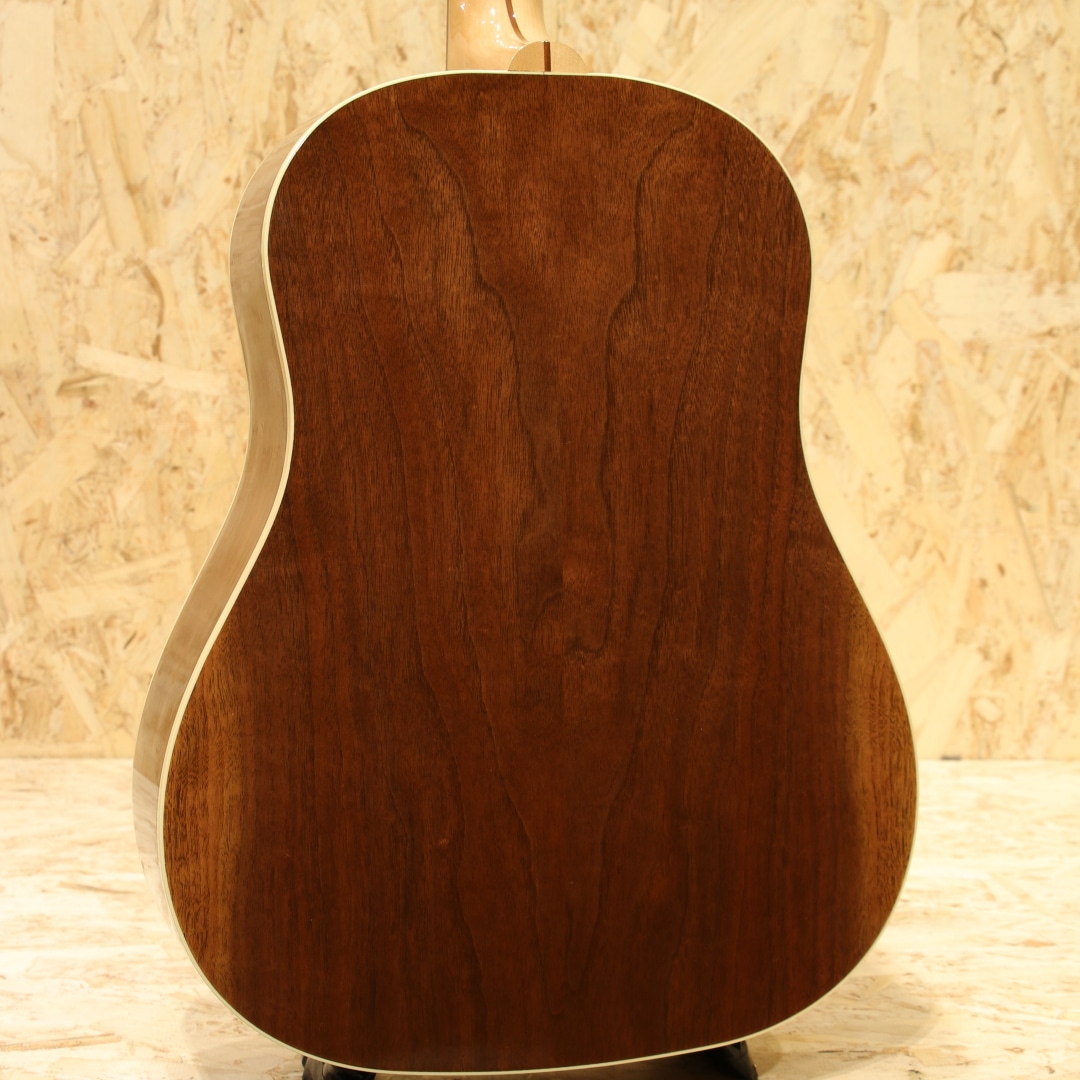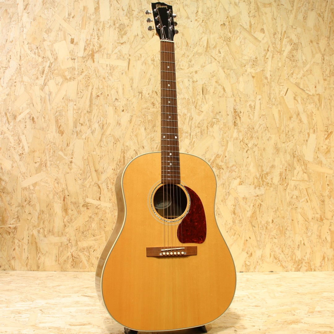 GIBSON伝統のJモデル。大元を辿れば1934年に発売が開始された”Jumbo”から始まり、今日まで続く”J-45”や”の系譜となるギター群です。そのJ-45/J-50を基に2014年にJの仲間入りを果たしたのが本器”J-15”。現行では製作が行われていないモデルです。本個体は2016年製のUSED品。シトカスプルーストップ、ウォルナットサイド&バック、メイプル&ウォルナットの3Pネック、ウォルナット指板&レクタングルブリッジ、ドット指板インレイ、べっ甲柄スモールガード、グローバークロームペグ、スキャロップドXブレイシング、アンティークナチュラルフィニッシュ、L.R Baggs Element搭載。J-45/J-50と同じボディシェイプ、同じ胴厚、同じスケールを持ち、USAの同じ工場で同じ工程を踏んで製作。材や細部は異なるものの、これだけでも驚異のコストパフォーマンスを誇っています。そして全ての材は北米産のトーンウッドを使用。ネックに使われているメイプル材とトップのシトカスプルースはカナダが産地、サイドバックと指板に使われているウォルナットもアメリカの北部が有名です。カナダの国境に近いモンタナ工場だからこその調達のし易さもあったのでしょう。これによってJ-45/J-50と異なった個性を持った1台へと仕上がっています。同時期に生産されていたモダンな仕様のHP(High Paformance)シリーズと比較しても、よりトラディショナルなスタイルを踏襲したモデルとなっています。やはり気になるウォルナットのサウンド。J-45などのマホガニーよりもローズウッドのようにレンジ感が広く、中高音にピークを持つ材。音の質感としてはマホガニーのような乾いた響きを特色としています。歯切れが良く音が前に出るような響き、シャキッとした爽やかなサウンド。ですがボディ厚はしっかりある為、空気感やふくよかな音色も持ち合わせます。軽いタッチでも音が前に出やすくなり、パワフルに弾かずとも鉄弦らしい煌びやかさを出せるレスポンスの良さも特色の一つです。単音での音抜けも良く、まさにプレイスタイルを問わないギター、扱いやすい1本と言えるでしょう。ピックアップにはL.R Baggs Elementを搭載。アンダーサドルタイプのピエゾピックアップを内蔵しており、音の芯を捉えたサウンドの出力が出来るシステムです。操作はボリューム1発で非常にシンプル、難しい操作は要りません。アクティブタイプで出力も充分、繋いですぐに使えるロングセールのピックアップシステムです。全体を通しても使用感は非常に少なく、新品と見紛う程の状態をキープされている個体。よくよく見ると薄っすらクロスでの拭き跡が僅かに見られる程となっています。ネックのコンディションも非常に良好、サドル残やトラスロッド残りも充分に残したこれからも使っていける1本です。USA製でありながら比較的手に取りやすいリーズナブルさも魅力の一つ。J-45に近しい感触、また異なる個性を持っています。初めてのGIBSONアコースティックにも最適なモデル、ステージですぐ使える即戦力の1本です。是非お手元でお確かめくださいませ。