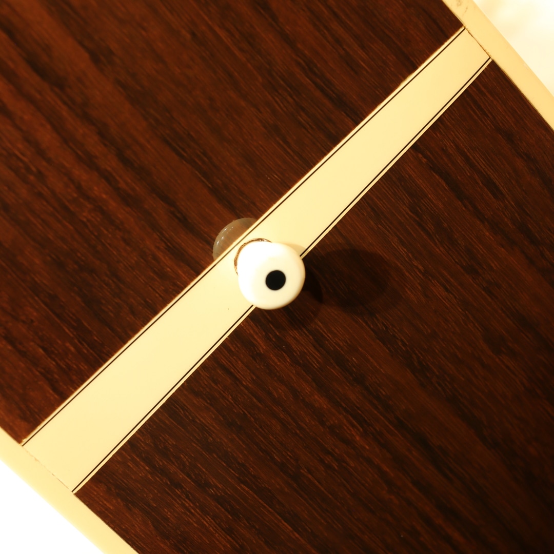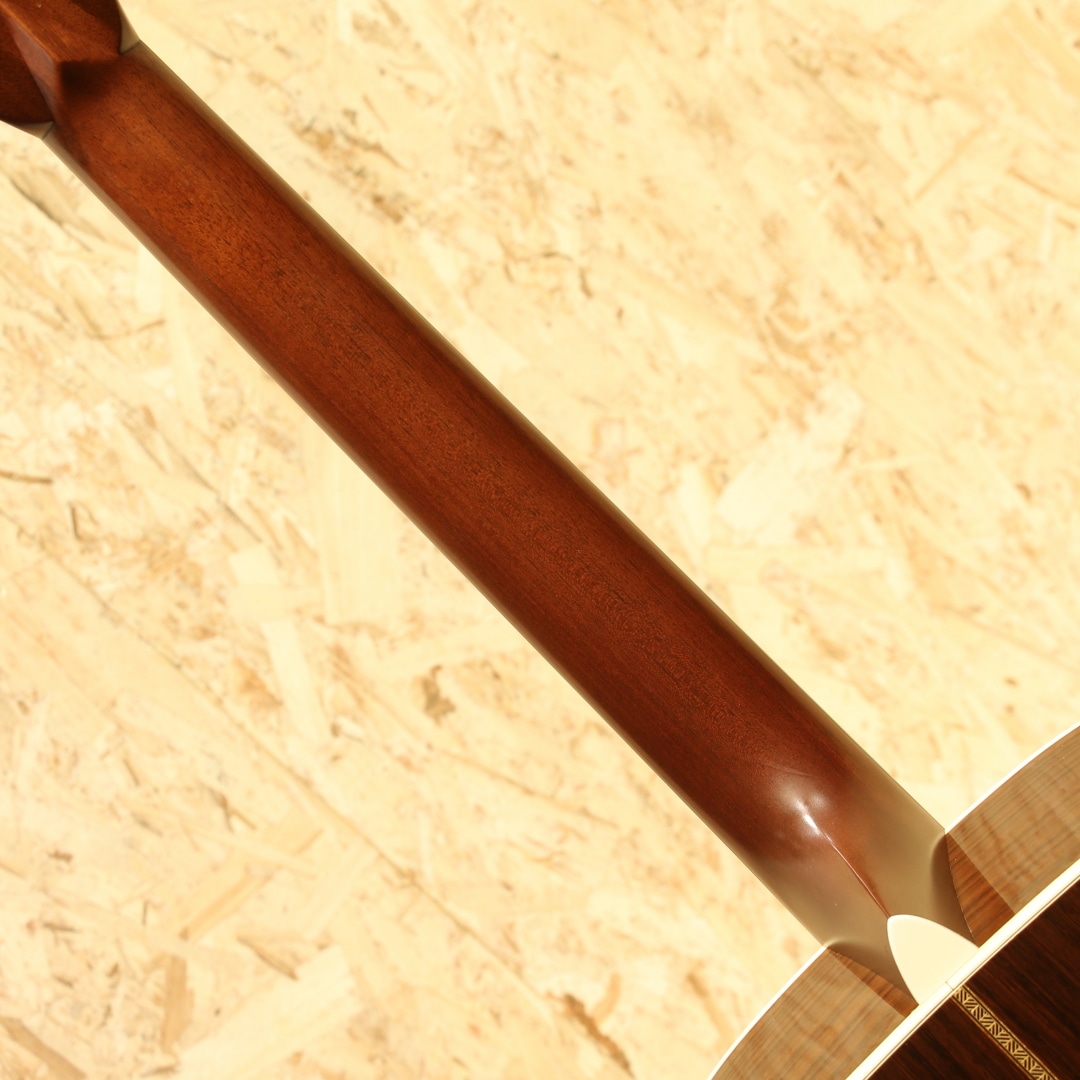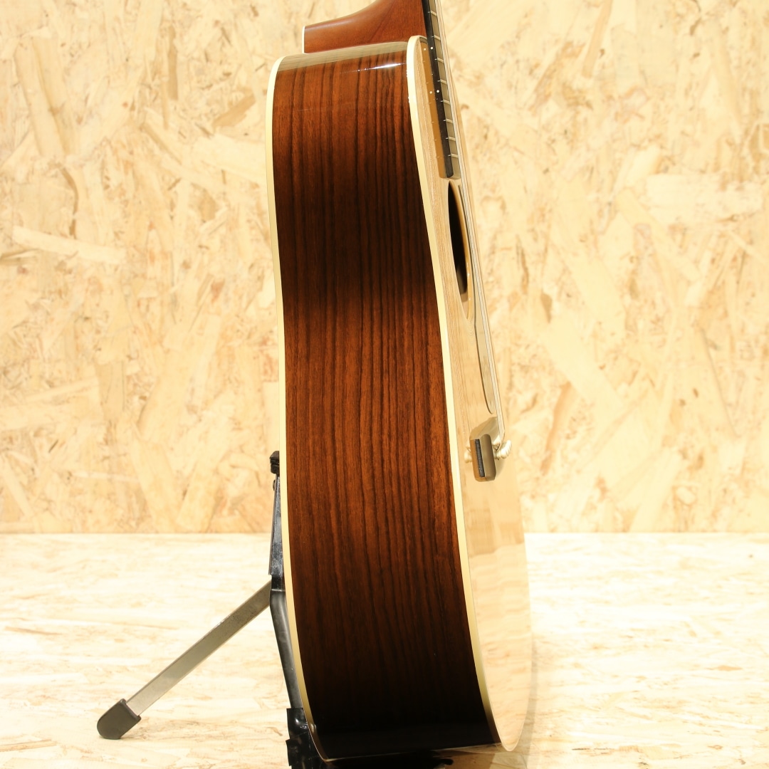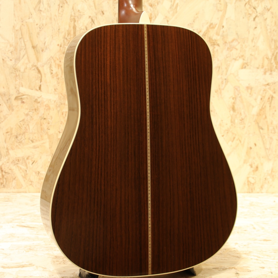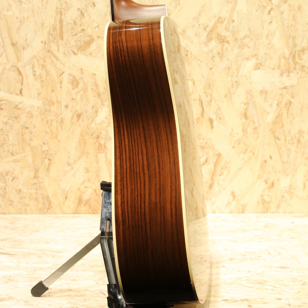 マーチンギターの中で最も有名なモデル"D-28"。現在同様の14fジョイントのドレッドモデルとして1934年に誕生してから、時を超え今もなお愛されるワールドスタンダードモデル。1944年にオリジナルスキャロップブレイシングが廃止された後、32年の時を経て現代に甦ったスキャロップブレイシング採用モデルの先駆け"HD-28"。どの時代においてもスタンダードである"D-28"を基にオールドテイストを持ったモデルとして、現在もラインナップを続けるロングセラーモデルのひとつです。本器は2000年製のUSED品。スプルーストップ、ローズウッドサイド&バック、マホガニーネック、ADJロッド、エボニー指板&ブリッジ、グローバーロトマチックペグ、ブラックピックガード、ヘリンボーントリム、ジグザグバックストリップ、スキャロップドXブレイシング。戦前期の象徴であるヘリンボーントリム、当時のD-28をベースとし、Herringbone Dreadnoughtの頭文字を取ったネーミングとして名づけられました。ナット幅は42.9mmでやや細身なCシェイプ。親指で握り込んだ演奏スタイルにも対応しやすく、手馴染みの良さにも定評があり現行品のナット幅が広いと感じられている方にはオススメのネックグリップです。当時のD-28と比較するとスキャロップブレイシングによって空気感の強い、ふくよかで華やかな響きを獲得。現行品のHD-28と比較するとブレイシングの位置が異なりフォワードではないため、芯の強く輪郭を感じやすい引き締まったサウンドが特徴です。軽く弾いてもボリューム感があり、心地よく響きます。D-28らしいパンチ感はキープされつつも、より柔軟性を高められており使用するジャンルは選びません。オールマイティに使える優秀な個体です。ボディバック面に薄いバックルキズ、ピックガード表面に極薄い弾きキズこそ見られますが、使用感は少なくキレイな状態をキープされています。ネックの演奏性も良し、ロッドはやや固いですがまだ回し幅は残っており、サドルの残りも充分で弦高調整をする余裕もあります。現行品とは異なる響きを生み出してくれるHD28。ナット幅も42.9mmで現行品に握りにくさを感じられていた方にはお試し頂きたい1本です。是非ご検討下さいませ。