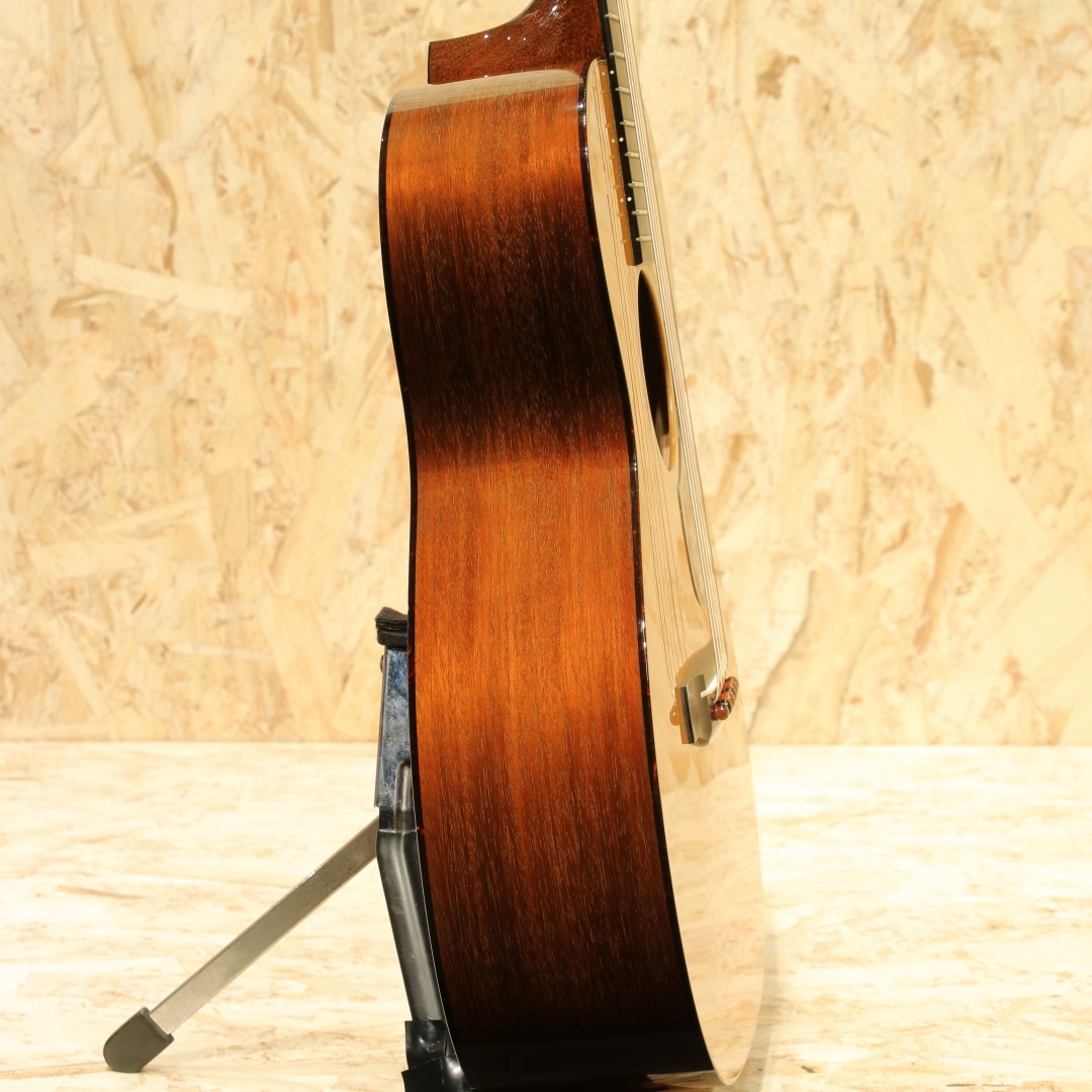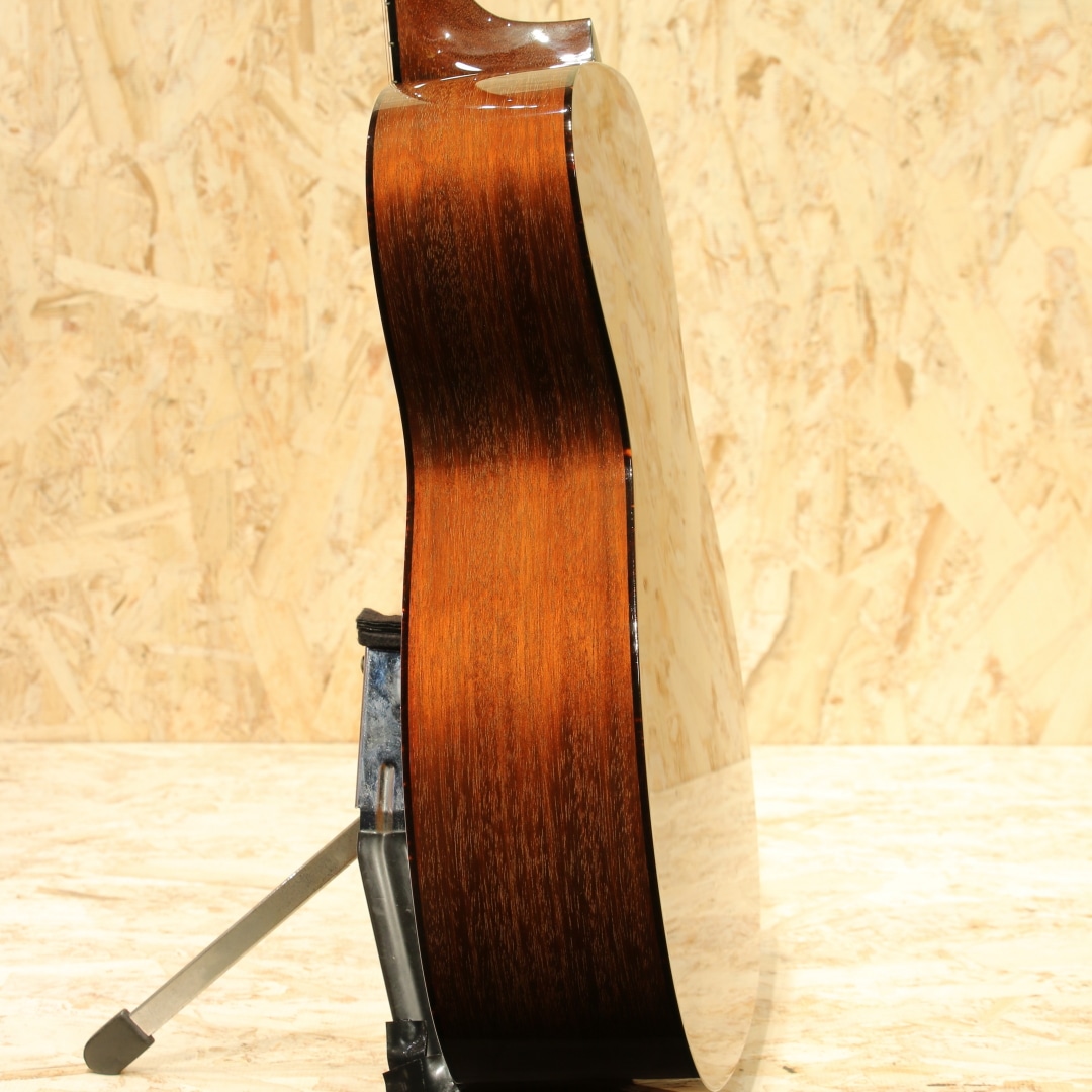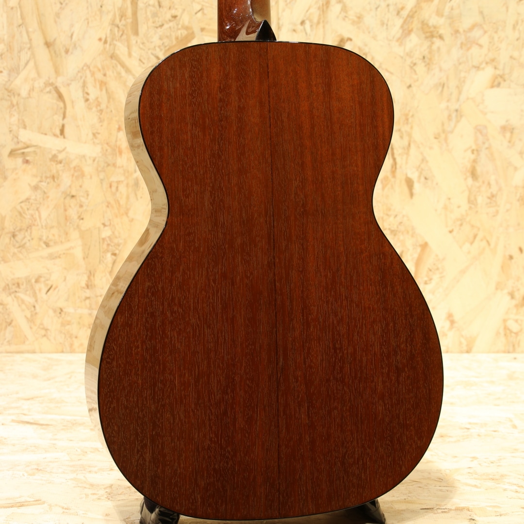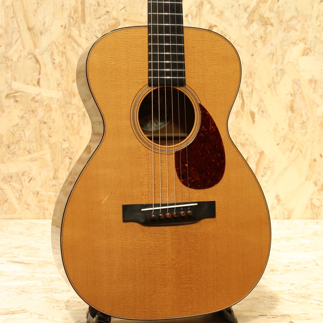 世界的にもっとも高い評価を得ているブランドの一つであるコリングスギターの新しいアイデアとしてリリースされたラインナップ"トラディショナル「T」シリーズ"。ビルのルーツに遡りコリングス・サウンドに更なるトーンバリエーションが加わったモデルとなっていて、1930年代のビンテージギターの特徴でもある強力な基音のレスポンスを備えたギターに仕上がっています。本器はOサイズ、スタイル18を基にした"O1T”。2018年製のUSED品です。シトカスプルーストップ、ホンジュラスマホガニーサイド&バック、ホンデュラスマホガニーネック、エボニー指板&ブリッジ、ウェバリーペグ、ナット幅44.45mm、MOPドット指板ポジション、べっ甲柄セルロイドピックガード、べっ甲柄バインディング、タンブレースを短縮した戦前スタイルのスキャロップドXブレイシング、極薄のニトロセルロースラッカーフィニッシュ。トラディショナルシリーズならではの指板角を丸めたネックシェイプは長年弾き続けた愛器のような安定感があり、握った瞬間にしっくり来る感覚を覚えます。組み込みには動物性接着剤を使用し、極薄のニトロセルロースラッカーフィニッシュが用いられたこだわりの造り。これによって、よりダイレクトな手応えとレスポンス、ダイナミックなサウンドを生み出しています。材は厚みから重量に至るまで調整され、より丸さと滑らかさを持ったトーンを出力。コリングス特有の輪郭感は残しながらも基音の太さや線の太さを実感できるサウンドとなっています。音と音とには確かな間隔があり、サウンドに立体感を覚えます。強弱タッチがそのままに飛び出る表現力の高さにも驚きますが、ハイポジションに至るまでコシと粘りのあるサスティーンも流石コリングス。高音域の抜けがフィーチャーされがちな小ぶりシェイプですが、豊かな中音域とサイズを超えたボリューム感が気持ちよく、OOでも充分かもと感じさせてくれます。ショートスケールながら絶妙なテンション感を持っているので、ピックストロークでもフィンガーピックでも幅広いスタイルに対応できる高ポテンシャル。ブリッジ6弦側の下やボディトップ6弦側ショルダー箇所に瞬間接着剤が付いたような跡、ボディバックやボディトップ6弦側ショルダーに光にかざすと見える程度の薄い当てキズ、ボディサイド1弦側ボトムに少し見え擦れキズ等の使用感は見られますが、全体を通してキレイな状態をキープされています。ネック周りの演奏性も非常に良いままに保たれており、この辺りは流石のコリングスでしょう。サドルの上下幅もまだ残されており、これからも使っていける1本です。量産メーカーとは生産スタイルも一線を画すスタイルを貫くコリングスならではのハイクオリティな逸品。ぜひそのお手元でご体感ください。