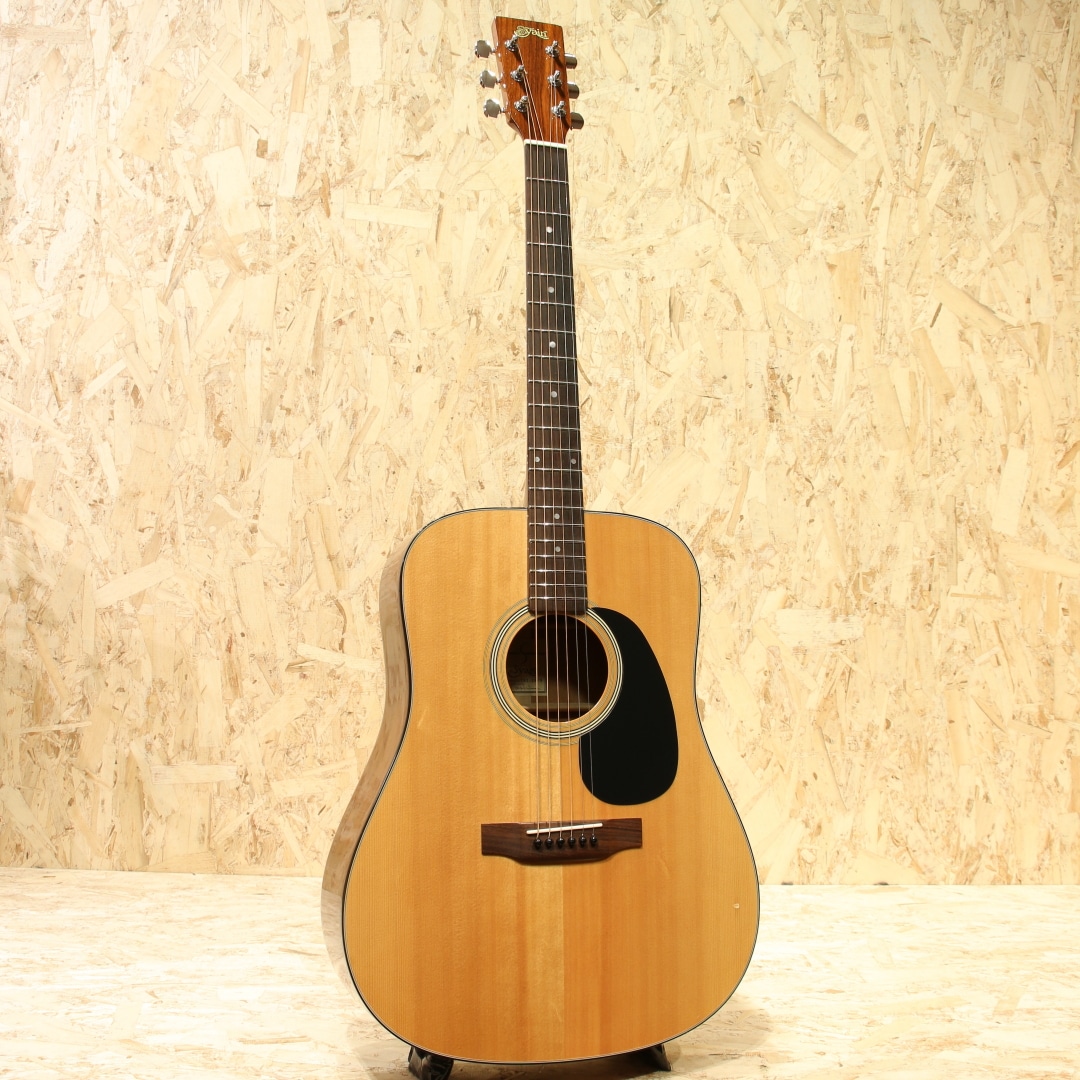 手に取りやすい金額帯で様々なモデルを製造している”S.yairi”。入門の方やステージに立つためのギターをお探しの方が持つことも多いブランドです。本器は現在では廃番となってしまったD-18スタイル"YDT-18N"。2000年代製USED品。シトカスプルース単板トップ、マホガニー単板サイド&バック、マホガニーネック、ローズウッド指板&ブリッジ、オリジナルシャーラーペグ、パール指板ドット、ブラックピックガード、ノンスキャロップドXブレイシング。当時のD-18を参考とし、同じような仕様で本器は製造されています。スプルース&マホガニーの王道組み合わせ、全て単板で製造されているなど充実したスペック。それでいてお手頃な金額というのも驚異的なコストパフォーマンスです。現代的なネックグリップで演奏性も劣ることは無く、現行品のD18に比べてナット幅が狭い分握り込んだ演奏がしやすいメリットも持ちます。大きなサイズ感だからこその重さを感じさせる響き、空気感を含んだトーンが魅力的。音には芯があり、解像度もやや高めな印象。程よく纏まり程よく分離して響いてくれます。癖が少ない為プレイスタイルを問わないところも扱いやすく、入門の方にもオススメできる1本。全体を通しても使用感はさほど多くなく、綺麗なコンディションをキープされている個体。ネック周りの演奏性も良く、サドルの残りも充分とまだまだ使っていけるUSED品です。コストパフォーマンスに優れたブランドS.Yairi。2本目のギターにも良い1本です。是非ご検討下さいませ。