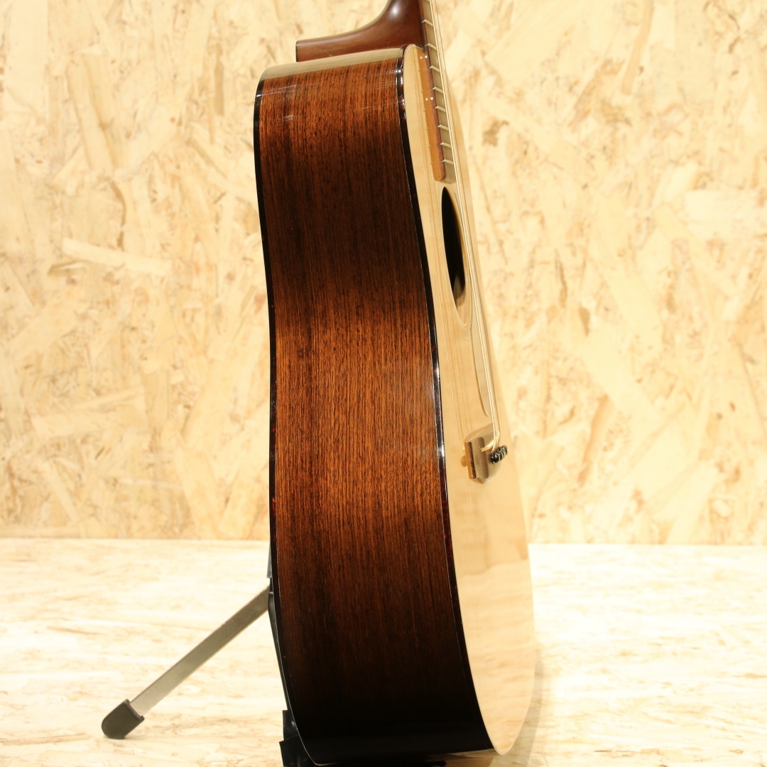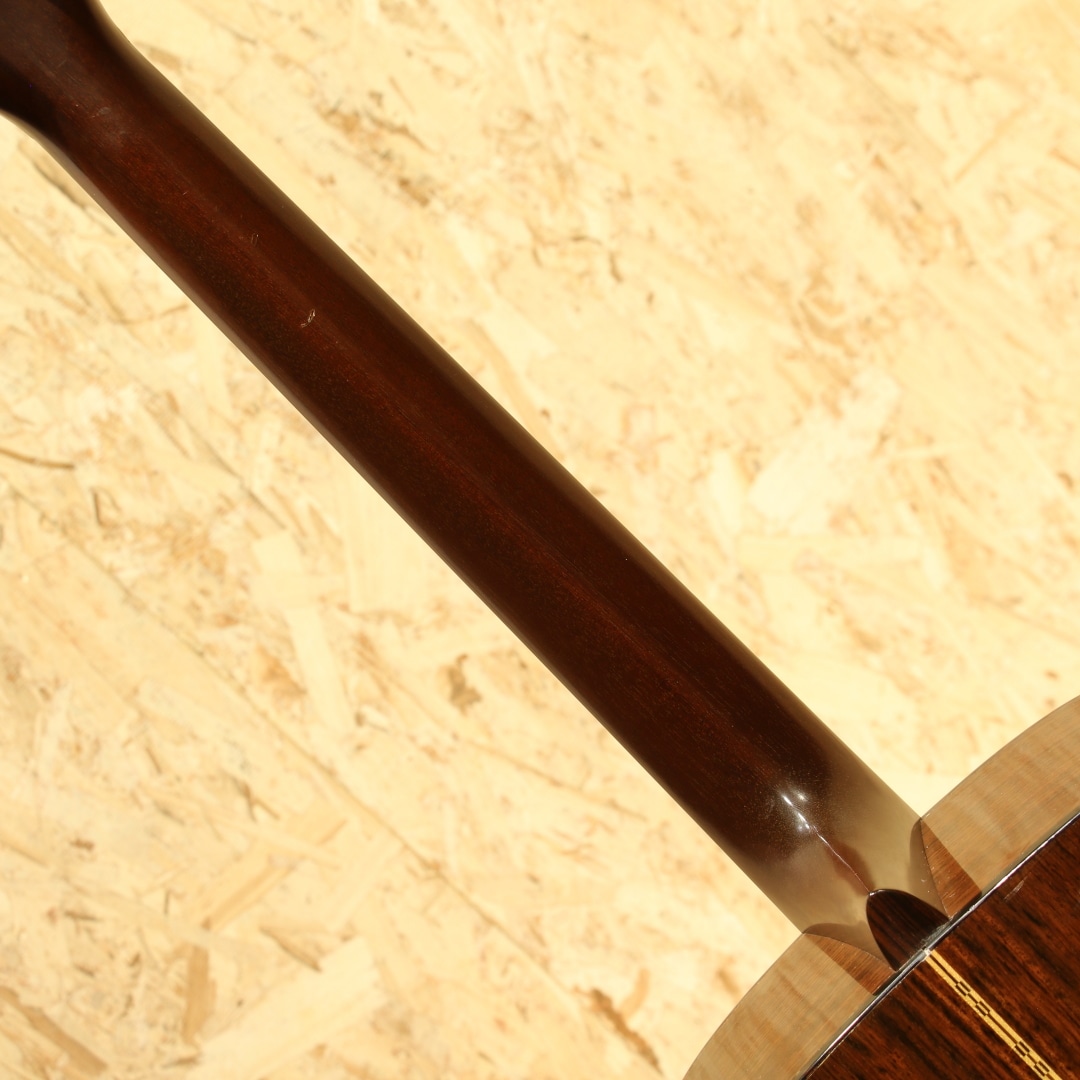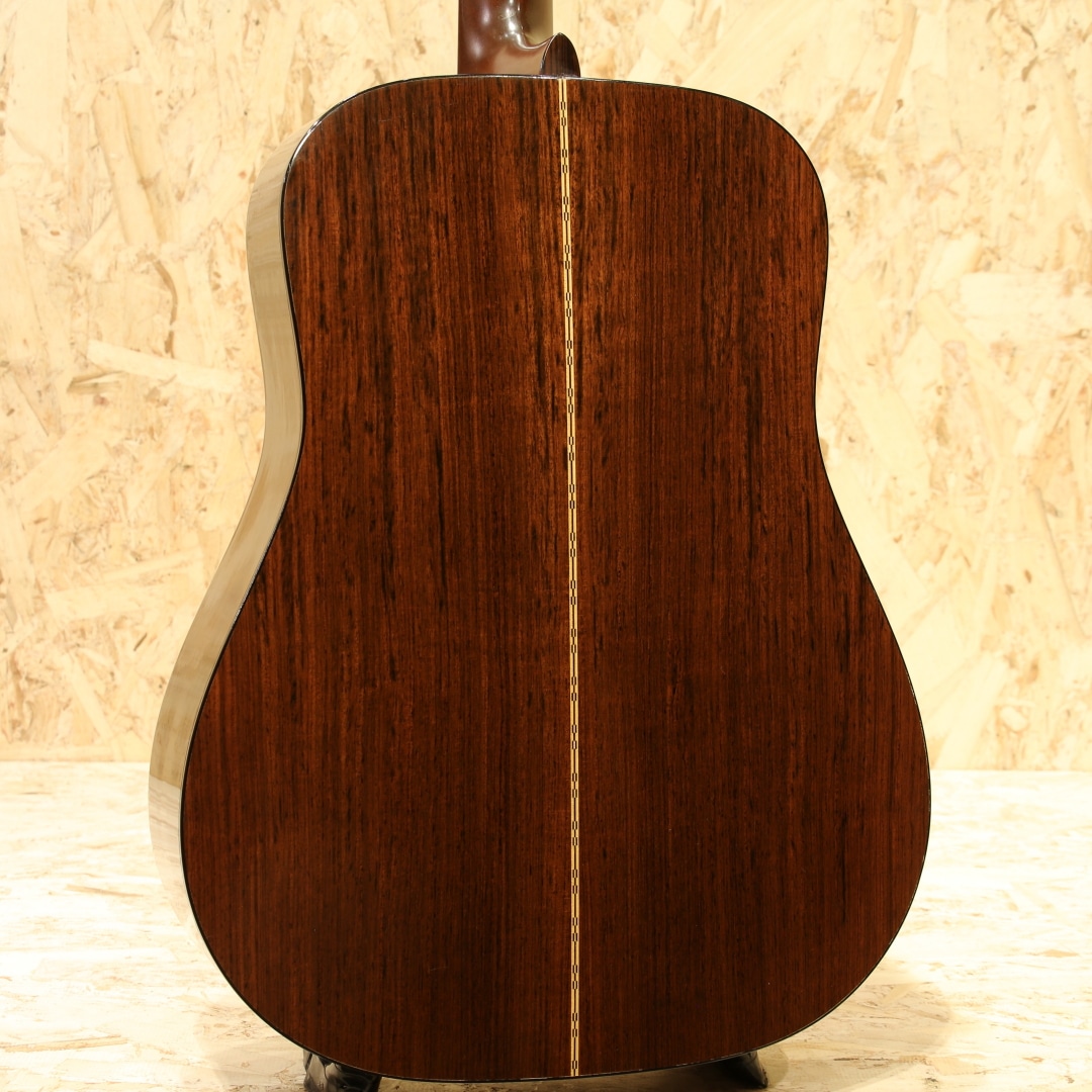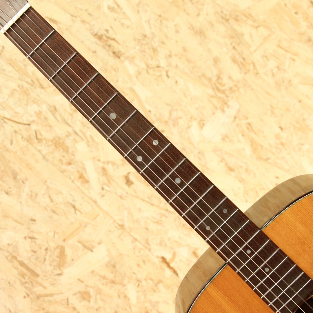 1833年創業のマーティンギター。その代表機種D-21は1955年から1969年まで製造開始され、その幕を下ろしました。代表機種、D-18とD-28の中間的なスペックを持つ唯一の機種としてコアなファンもおり歴史的名器の一つです。本器は創業150周年を記念して1983年に製造された1本。この年のみ製造が確認されますが市場での露出は極めて稀です。”D-21 150th Anniversary”。1983年製USED品です。スプルーストップ、ロースウッドサイド&バック、マホガニーネック、ローズウッド指板&ブリッジ、Klusonカバードチューナー、オリジナル塗り込み80’s薄色のべっ甲柄ピックガード、ロングサドル、べっ甲柄ボディーバインディング、べっ甲柄エンドグラフ、MOP指板ドット、白黒パーフリング、SQネック、42.5mmナット幅、ローズウッドブリッジプレート、ノンスキャロップドXブレイシング。当時はすでに廃盤となっていたD-21。インディアンローズウッド仕様では単品のカスタムを除いては当時初めての復活でした。ボディ内部バック面センターには”1833-1983 150th Year”のスタンプ、ラベルにはマーティンIII世とマーティンIV世の連名でサインが記入されています。Vシェイプネックで細身の42.5mmナット幅で握り込んだ演奏スタイルにも対応しやすい点はメリット。ボディー内部のヒールエンドには横向きでゴールドのプレートが配されており、150TH ANNIVERSARYの文字とともに型番とシリアルがしっかりと彫り込まれています。80年代らしいサウンドで当時のD-28と比べてもD21の特徴がはっきりと出ており、軽量で軽やかな立ち上がり、クリスピーさの中にローズウッドの芯が感じられるまさしく21サウンドがそこにはあります。解像度の高い、クリアで抜けの良い出音でSQネック時代の太いサウンドも健在。全体としてハイレベルにまとめられている点は流石といったところで作りの良さで定評のあるこの年代ならではのテイストがあります。ピックガード周りやサウンドホール周辺にいくつかの弾き傷や小傷は見られるものの全体的にも大変傷は少なく素晴らしい状態をキープ。何よりネックがストレートで素晴らしいコンディションが保たれており演奏性も大変良好なギターです。マーティン創業150周年を記念して製作された贅沢な仕様の1本。80年代は大変流通も少ない為この年代を狙うファンも多くいます。市場への露出は稀ですのでお探しだった方は是非お早めに。当時のモノではありませんが70sのマーティンブルーハードケースが付属します(MARTINのプレートは欠損しています)。