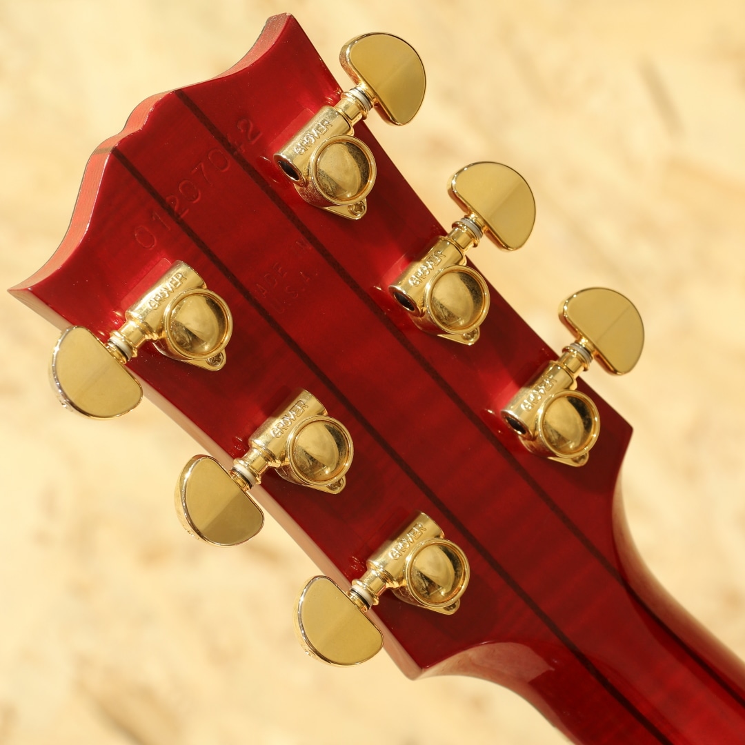 味わいある鳩のインレイピックガードが印象的なGIBSONフラッグシップモデルの一つ"Dove"。当時ギブソンとしては初となるスクエアショルダー型の"ハミングバード"が好調だったことで、1962年にリリースが決まったモデルです。本器は"DOVE AN"、2007年製USED品です。スプルーストップ、フレイムメイプルサイド&バック、メイプルネック、ローズウッド指板&ブリッジ、グローバーゴールドペグ、ロッドカバーはゴールドタイプへ変更、クラウンヘッドインレイ、ダブルパラレログラム指板インレイ、スキャロップドXブレイシング、アンティークナチュラルカラー、L.R Baggs Lyric搭載。63年より存在するナチュラルカラーをイメージしたアンティークナチュラルカラーの1本。メイプルのやや甘く重心が低い、やや無骨なサウンドが魅力的なモデルです。空気を含み唸るような響き方や輪郭のあるキランとした繊細なサウンドまで幅広く対応。ピックでガシガシ演奏しても良し、繊細なフィンガーで演奏しても良し。オールラウンドに使える1本です。ピックアップにはL.R Baggs Lyricを搭載。ボディ内部に内蔵されたマイクによって収音し、ボディ内の空気を拾い上げるシステム。箱全体で響くところを拾うので生の響きに近い音色を出力できるシステムです。ガランとした響きやボワっと膨らむ出方はマイク特有。弾き語りやアコースティックの小編成のライブなどで本領を発揮。ややこしい設定も無く簡単に繋ぐことが可能な為、ステージやレコーディングで即戦力として活躍が期待できます。バック面6弦側ボトム付近に米粒大の当てキズ、同じくバック面1弦側と6弦側のくびれ付近のバインディングに補修跡があり、剥がれた際にできたであろう塗装のチップが見受けられますが修正時のタッチアップが行われておりしっかり補修されております。その他には光にかざせば視認できる擦れキズや薄いバックルキズの様なものは確認できるものの綺麗なコンディションが保たれており、ネック・プレイコンディション共に良好で即戦力間違いなしの1本です。ギブソンスクエアショルダーの最上位機種。家弾きからライブまで幅広く使用することが出来る1本です。憧れのギブソンメイプルギターのサウンドを是非ご体感下さいませ。チップボードケースが付属します。