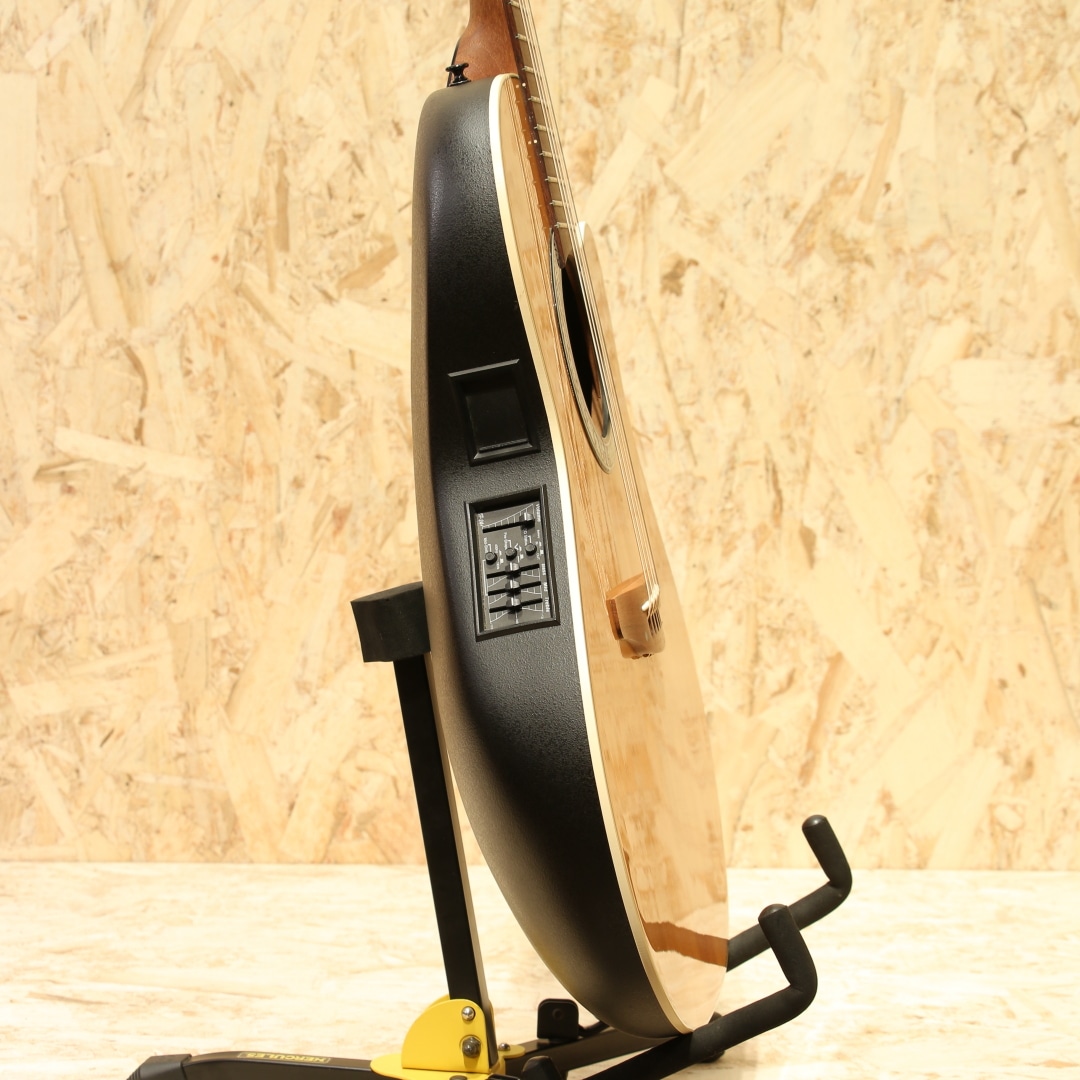 1966年、ヘリコプターの製造会社の社長であり、有名なギタリストでもあったチャールズ・カーマンによって設立されたオベーションは航空機の技術をギターに活かしたエレクトリックアコースティックギターを発売。保守的なミュージシャンにも受け入れられ、エレアコの代名詞的ブランドへと成長します。本器はUSAメイドのスーパーシャロ―ボウル"1861 Standard Balladeer"。2006年製のUSED品。スプルーストップ、リラコード樹脂製スーパーシャロ―ボウル、マホガニーネック、ローズウッド指板、ウォルナットブリッジ、クロームロトマチックペグ、ベネチアンカッタウェイ、ナチュラルフィニッシュ、OP24+プリアンプ搭載。同ブランドの中で一番の薄さを誇るスーパーシャローボディはエレキにも近しいフィーリングで、ボディの圧迫感を感じることなく体に馴染みます。そしてトップで生み出した音をサウンドホールへ集める効果もあり、遠達生にも優れたオリジナルシェイプです。音の立ち上がりの早さにも優れており、テクニカルなフレージングへの追従性も高いです。瞬発力を求められるリードプレイ、音切れの良さと立ち上がりの早さからカッティングプレイ等でも活躍してくれるであろうサウンドです。プリアンプにはOP24+を搭載。シンプルな操作性、直感的な操作で簡単にラインサウンドを出力できるシステムです。Volume,3.5Band EQ&Mid Shiftにてミドルピーク値の変更が可能,EQ StatusにてEQのオンオフの変更が可能、Pre-Shapeスイッチをオンにするとベース&トレブルが強調され、同時にミドル域を抑制します。オベーション特有の輪郭感のあるトーン、ジャリっとした音色が心地よい響きです。コントロールパネルのスイッチ箇所は経年劣化により動きが鈍いですがしっかり作動します。ブリッジ際にウェザーチェックが確認できますが、木部までは貫通しておらず塗装面のみです。その他、僅かな擦り傷などはあるものの20年の経過を思えば大変綺麗な状態が保たれています。バインディングの継ぎ目に沿って塗装引きが起こりその際に空気が入ったと思われる白く濁った箇所がいくつかありますが、塗装やバインディングの浮き等は見られず外観上のものでご使用に影響はありません。プレイコンディションも良好のスーパーシャローオベーション、是非ご検討ください。オリジナルハードケースが付属します。
