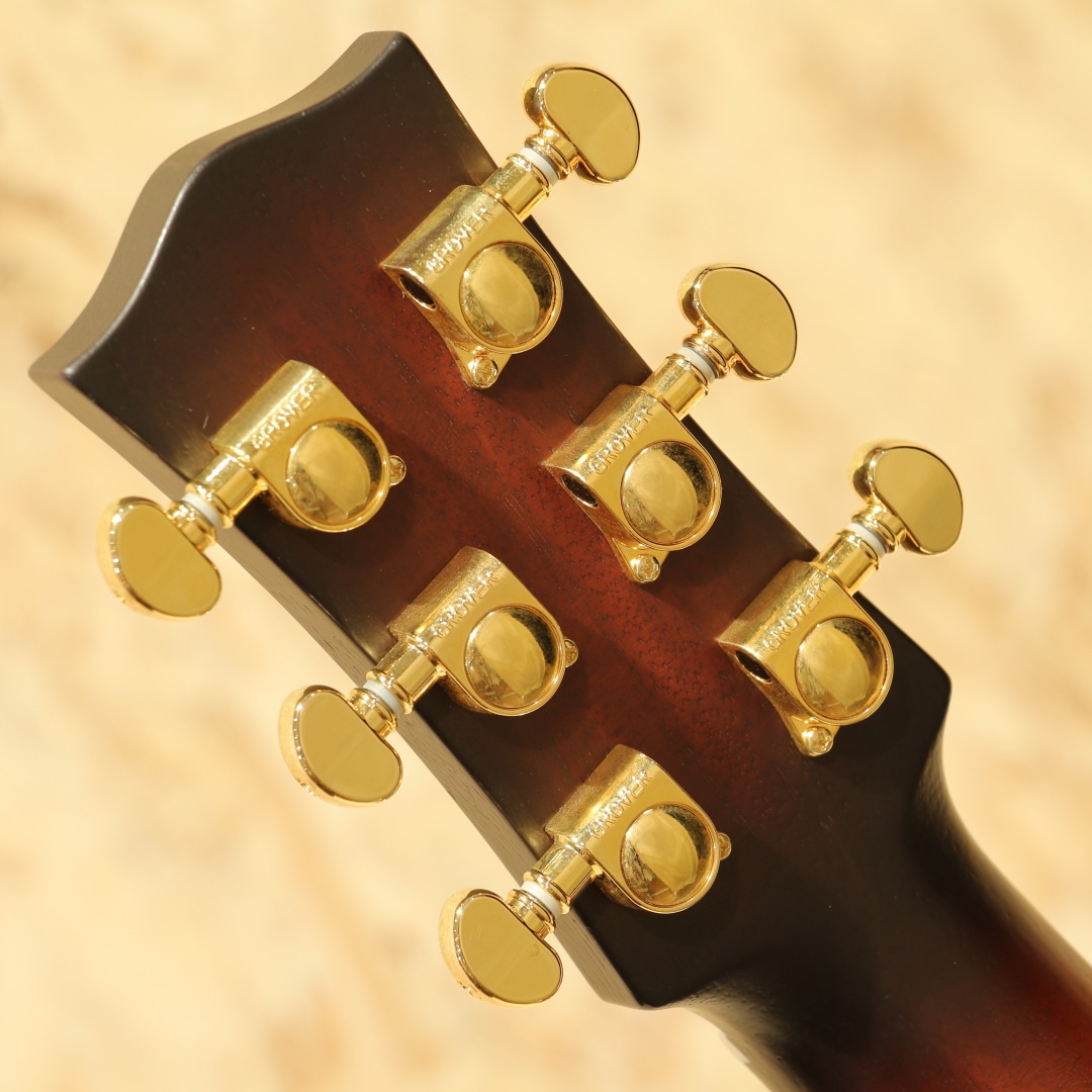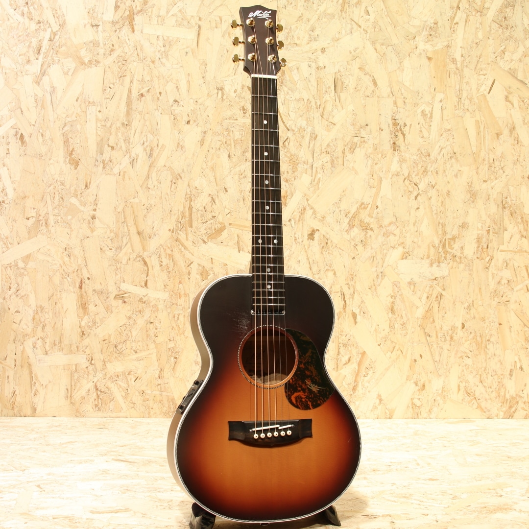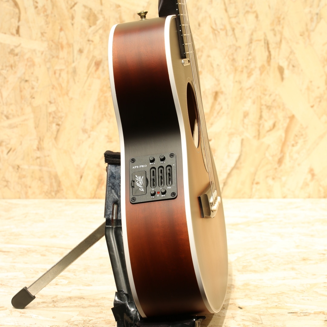 1946年に創業されたオーストラリアの老舗ブランド「メイトンギター」。特に地元オーストリアでは高いシェア率を誇り、トミーエマニュエルを始め、ジョーロビンソンやキーランマーフィーなど世界で活躍するトッププレイヤーが使用しています。手軽に持ち運べるサイズ感が魅力のMini-Matonより吟遊詩人の意味を持つTroubadour(トルバドー)シリーズ”EMTB-6 Mini Maton”。2020年代製USED品です。シトカスプルーストップ、クイーンズランドメイプルサイド&バック、クイーンズランドメイプルネック、ストリーキーエボニー指板&ブリッジ、、アイボロイドバインディング、グローバーゴールドペグ、プリアンプシステム"AP5 Pro"内蔵。抱えやすく扱いやすいボディで演奏性の良い1本。小さい見かけとは裏腹に本格的なサウンドで、スモールサイズならではの素早いタッチレスポンスとブライトで歯切れの良いトーンはタイトなリズムを得意とし、ビートを刻んだり、ファンキーなスタイルでも存分に個性を発揮します。ピックアップには世界最高峰とも名高いP.U.システム"AP5Pro"を搭載。アンダーサドルピエゾとコンデンサーマイクのブレンドにより、アコギ本来の空気感から鋭くパワフルなピエゾサウンドまでフレキシブルに操作と出力出来ます。プリアンプの操作自体も直感的、トレブル/ベースのEQに加えミドル/フリケンシーも備えられており、非常に幅広い実用的なセットアップが可能。汎用性と実用性を高次元で融合させた秀逸なピックアップシステムとなっています。トップ面には激しくかき鳴らされていたであろうピッキング痕やボトム付近に3cmほどの何かが擦れたような跡、1弦側サイドボトム部には光にかざせばはっきりと視認できる擦れた後がございますが、主戦力として活躍していたからこその勲章で、木部まで到達しているようなキズや割れ等は無くネック・プレイコンディションは大変良好、メイトンらしい低めな弦高セッティング、ショートスケールも相まって大変弾きやすい印象です。小ぶりなサイズ感でトラベルギターとしても、取り回しの良いサブギターとしても活躍の期待できる本器。オリジナルハードケースが付属致します。