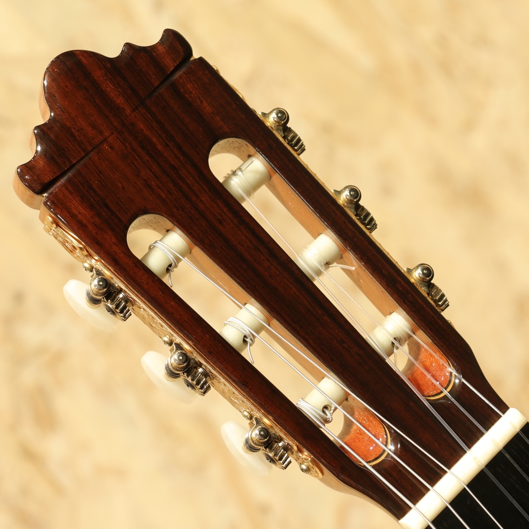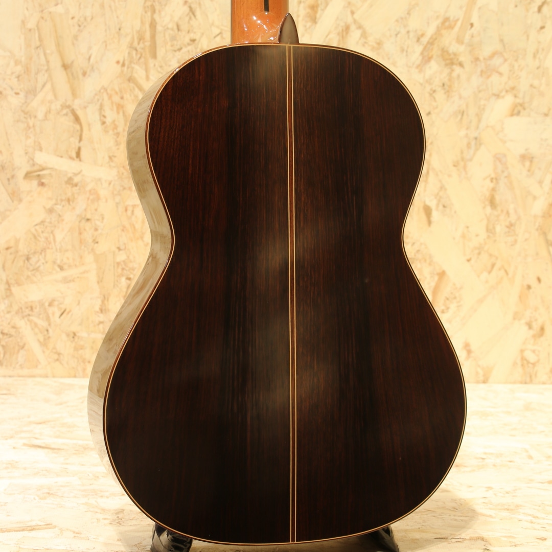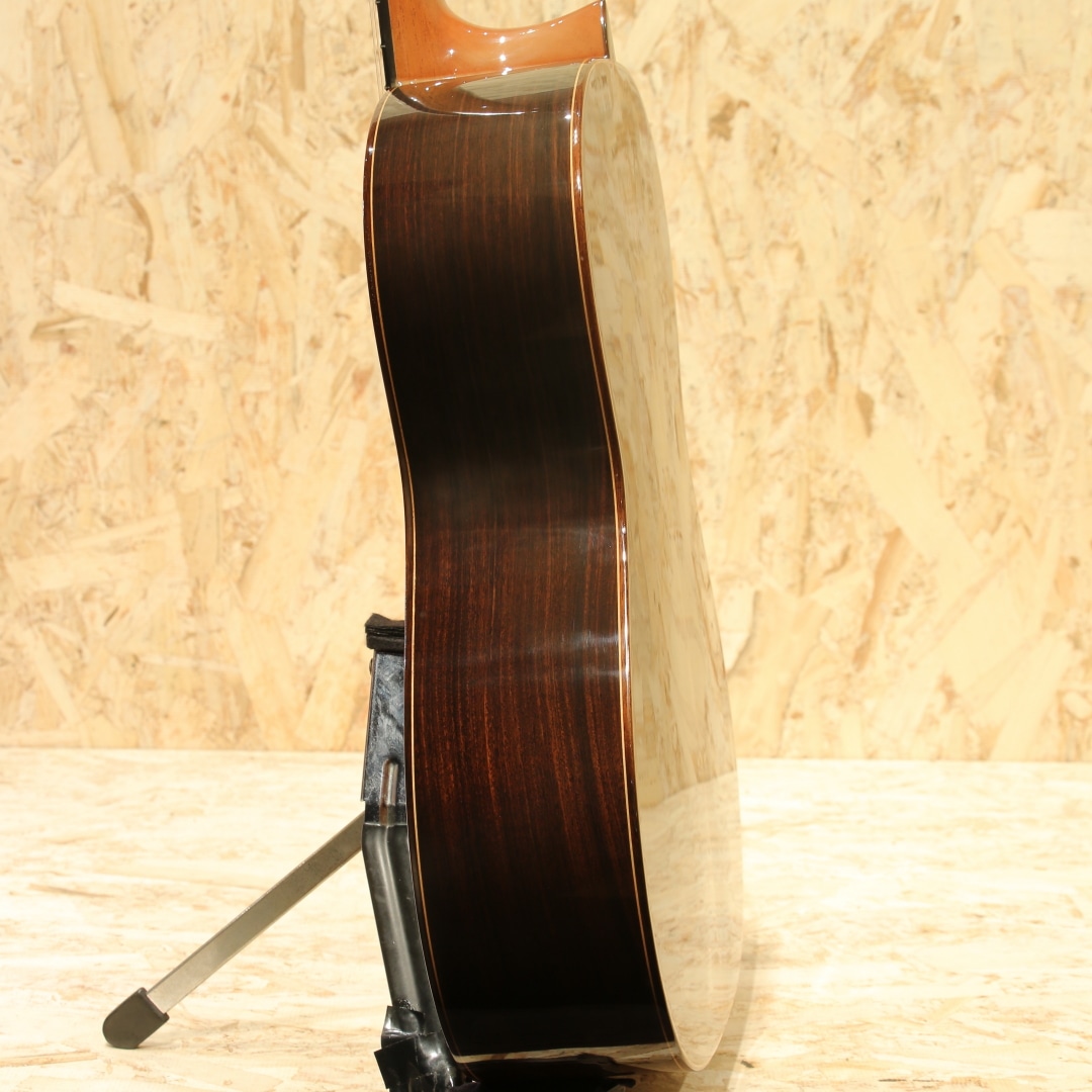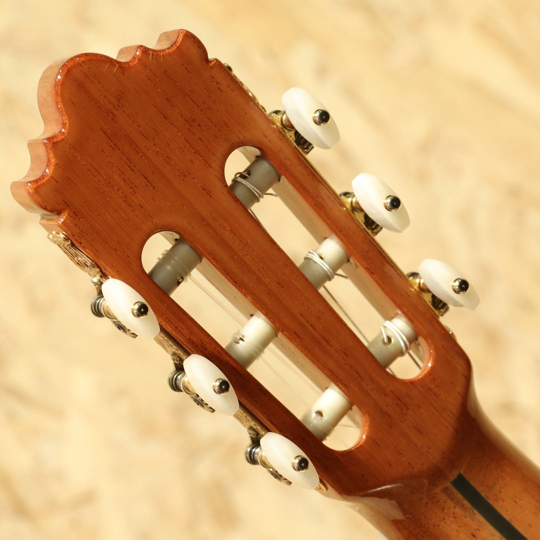 スペインの”ホセ・ラミレス”は、世界で最も著名なクラシックギター製作の名門。ホセ・ラミレス1世(1857~1923)が編み上げた高度な製作技術は、その後2世へと受け継がれ、そしてギターの内部構造に革新的な改良を施した3世の時代になり、「ラミレス」の名声は世界的に確立されました。巨匠アンドレス・セゴビアをはじめとする、世界のトップ演奏家に広く愛用されるラミレスのクラシックギター。その技と伝統は4世へと受け継がれ、現在は4世代目であるアマリア・ラミレス(ホセ・ラミレス4世の姉)、5世代目にあたるクリスティーナとホセ・エンリケによってしっかりと受け継がれています。本器はラミレスの品質を、より多くの演奏家に解放することがコンセプトのEstudio Model(エステューディオ・モデル)"2N-E"。2007年製USED品です。シダートップ、ローズウッドサイド&バック、マホガニーネック、エボニー指板、ローズウッドブリッジ、オリジナルモザイクロゼッタ、ゴールドペグ、52mmナット幅、650mmスケールとトラディショナルな仕様を持つ本器。ラミレスらしい材構成から奏でられるサウンドは、明瞭な響きを持ちつつも一つ一つの音を深みのある音で表現し、特に高音域はその明瞭さと表現力豊かな響きが際立ちます。ボリューム感もありつつ硬さは感じさせない空気感を含んだトーン、シダー材の広がりのある音の遠達性との相性も抜群で高音域は甘さの中にふくよかさを伴い低音域は安定感のある太くマイルドな印象を覚えます。気持ちよく響く出音もさることながら、木が振動していることもしっかり感じさせてくれる本器。ボディバックとサイド、ネックヒールキャップ周辺に塗装の白濁や薄いムラなどが散見されますが割れ修正や目立つ様な打痕などの致命傷は無く経年を加味すると綺麗に保たれている本器。ネックはわずかに順反りが見られますが、許容範囲内の程度で標準的なプレイコンディションに整えられております。名門ブランドが生み出すお手頃価格の本格クラシックギター、是非ご検討ください。汎用ハードケースが付属します。
