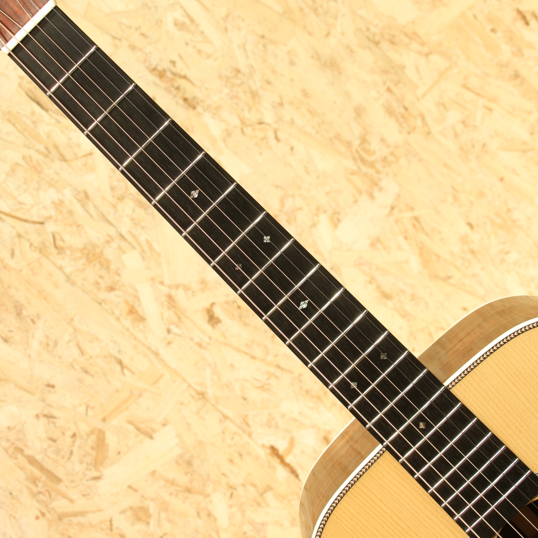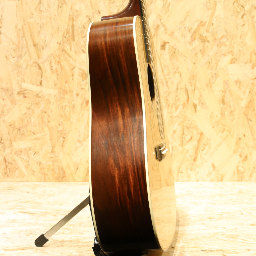 いつの時代もかわらない憧れMartin Guitar。遥か戦前のモデルも至高のヴィンテージとして愛され続けるマーティンギターは、近年の優れた技術により数々のモデルが復刻されてきました。その中でも抜群の完成度を誇り人気を集めるのが『Authentic Series』。選りすぐりの職人たちの集まるカスタムショップにて製作され、現代マーティンの最高峰にふさわしいクオリティを誇っています。本器は1937年製"D-28"を忠実に復刻した"D-28 Authentic 1937"、2022年製USED品。VTS加工の施されたアディロンダックスプルーストップ、グアテマランローズウッドサイド&バック、ジニュインマホガニーネック、エボニー指板&ブリッジ、ウェバリーオープンバックペグ、ダイアモンド指板インレイ、塗り込みピックガード、ヘリンボーントリム、アイボロイドバインディング、ジグザグバックストリップ、スチールTバーロッド、ニカワ接着、トップ構造は1937年式のフォワードシフテッドスキャロップドXブレイシング。塗装にはヴィンテージライクな雰囲気を醸し出す艶の少ないビンテージグロスフィニッシュを採用されています。本器は既存のモデルに比べより当時のボディシェイプに近い形へと変更されるなど、細やかな個所に見直しされたリニューアルモデル。ほんの僅かな差ですがくびれ箇所やショルダー箇所の形状で当時のD-28らしいルックスを復刻することに成功しています。その他にもヘッドの厚みやバックストリップ、指板の厚み、側板の割れ止め、指板エンドとブリッジ形状など、細部に渡るまでが忠実に復刻されています。シリアルスタンプも当時そっくりにデザインされた非常にマニアックなリメイクギター。ルックスの完成度も非常に高いですが、なによりもサウンド面も既存のものとは一線を画す音色。アディロンダックスプルースらしい大きく振動する爆発的な響き方。基音の強いふくよかなサウンドで中低音成分の厚みのある音色はアディロンダック特有のものです。VTS加工の恩恵もあいまった長年弾き込まれたかのような優れたタッチレスポンスやサウンドレンジの広さをも獲得しています。グァテマランローズの艶感のある整った音色も合わさり、存在感のあるトーンと音抜け良く響いてくれます。ヘッド際やネックヒールに打ちキズ、サイド面とボトム面にうっすらとした線キズが見られますが表面上のものでご使用に影響はございません。1弦側バック面のバインディングの継ぎ目に沿って僅かな段差が確認できますが、視認上では分かりにくく触って感じることができる程のものです。ネックコンディションは大変良好、低めな弦高セッティングで演奏性も抜群です。古き良き時代、ゴールデンエラの良さを現代の技術で再現したオーセンティックシリーズ。カスタムショップ製だからこその拘りを詰め込んだハイクオリティマーティンギターの抜群のコンディションを保ったUSED品。オリジナルハードケースが付属します。