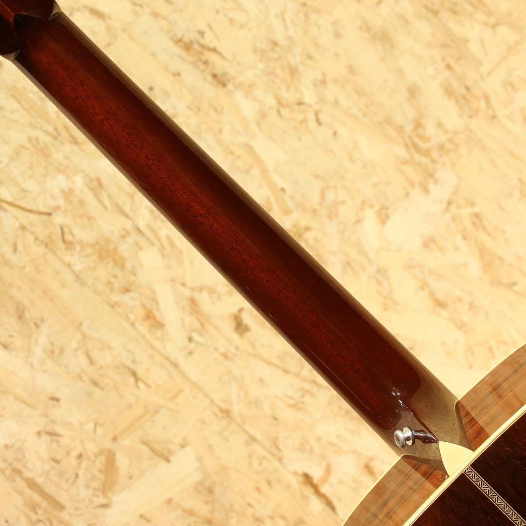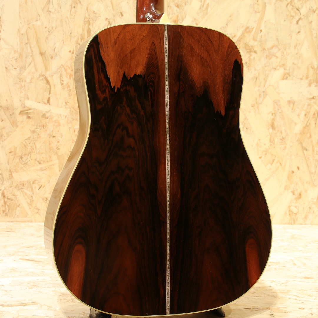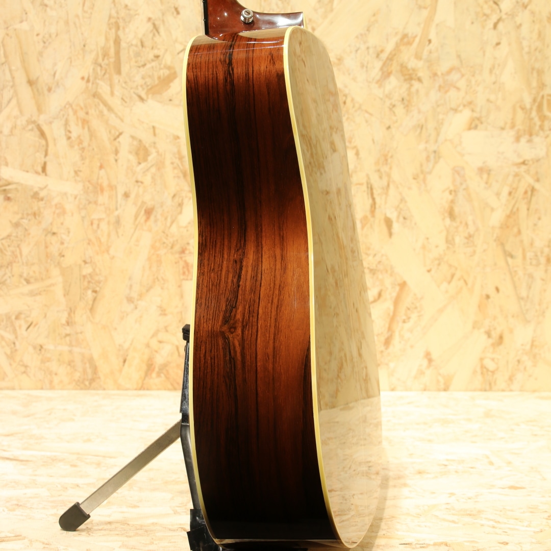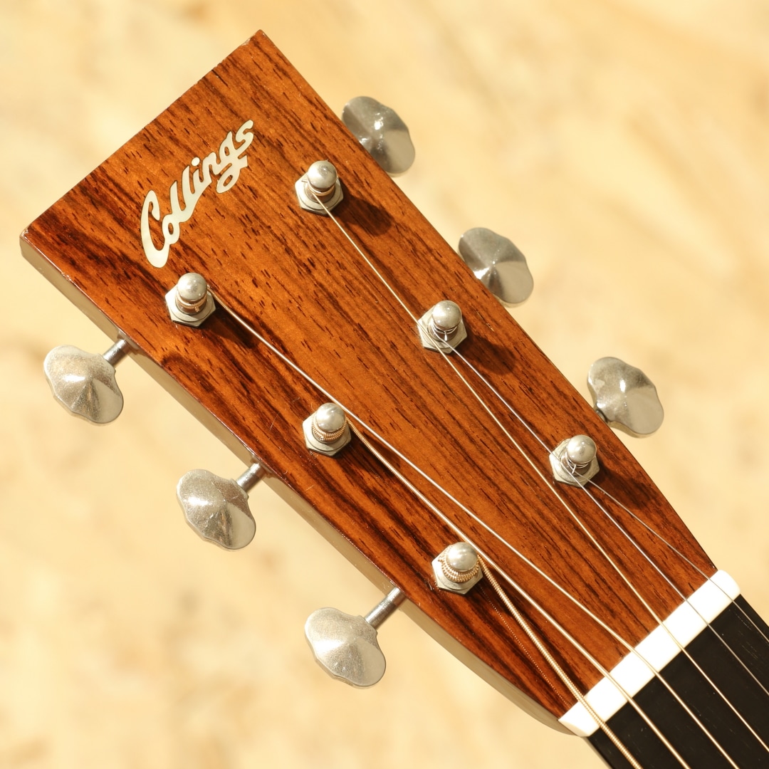 1980年代に創業者ビル・コリングスが小さな工房からスタートしたコリングス。戦前マーティンよりインスパイアされたスタイルで製造を開始し、みずからに昇華させたスタイルは唯一無二となり、世界的にもっとも高く評価を得ているブランドの一つとなっています。コリングスの高く保たれたその完成度は、プレイヤーがその楽器を手に持つだけで見惚れてしまう美しさを持ち、音を出せば納得する響きを放ちます。本器はスタイル28を基にした"D2H"をベースにアディロンダックスプルーストップ、ハカランダS&B仕様の流通少なく希少なモデル”D2H Ba Jacaranda”。ラッカー塗装最終期に作られた1本、1998年製USED品。端正な目幅で柾目杢が浮き出る美しいスプルーストップ、濃い色味の美しいハカランダサイド&バック、ホンジュラスマホガニーネック、エボニー指板&ブリッジ、ウェバリーオープンバックペグ、べっ甲柄ピックガード、ヘリンボーントリムパーフリング、ジグザグバックストリップ、アイボロイドバインディング、トップ構造は戦前マーチンの問題点を考慮したオリジナルスキャロップブレイシング、ラッカーフィニッシュ、ネックヒールストラップピン取付。D2HはトラッドなD-28スタイルを踏襲し、迫力のあるサウンドや空気感を含んだレンジ感の広いトーンを継承。その中でもエキゾチックウッドS&Bモデル自体の流通は少なく、またハカランダモデルは他社に比べても珍しいコリングス。音色の太さとキメの細やかな解像度の高いサウンド、磨き抜かれたような艶やかさのある響き。ハカランダ特有の硬質さや抜けの良いハイレンジサウンドも相まって透明感を持った音色を生み出してくれます。トップ材のアディロンダックスプルースによって生み出される弾力の強い分厚いトーン、ドレッドサイズの迫力とコリングス特有の音像のハッキリとした音色との相性は素晴らしく、倍音の乗ったファットなトーンとサスティンに富んだコシのある響き。繊細なタッチにも敏感に反応してくれる広いダイナミクスレンジも持ち合わせ、フラットピックでガツンと鳴らすもよし、柔らかなタッチで煌びやかで明瞭なトーンを楽しむもよしとコリングスらしい魅力を存分に体感できる1本。45mmナット幅で各弦の分離感にも優れています。トップ面ブリッジ下にクラック修正跡がございますが、裏から補強材も当てられており丁寧にリペアされています。杢目に沿った割れの為、補修跡もさほど目立たない仕上がりです。6弦側、1弦側のくびれ付近の両サイド面にもクラック修正跡が見られますが、こちらも接着リペア済です。ヘッドサイドに弦交換等の際にできたと思われるワインダー傷、その他使用に伴うへこみ傷や打痕、小傷は見られますが、約30年の経過を鑑みれば綺麗な状態が保たれており、大切に扱われてきたことがうかがえます。ネックまわりのコンディションも大変良好。扱いやすいコンディションで弾き心地ともに抜群です。流通稀なアディロンダック×ハカランダモデルのドレッドノートコリングス。是非お見逃しなく。オリジナルハードケースが付属します。