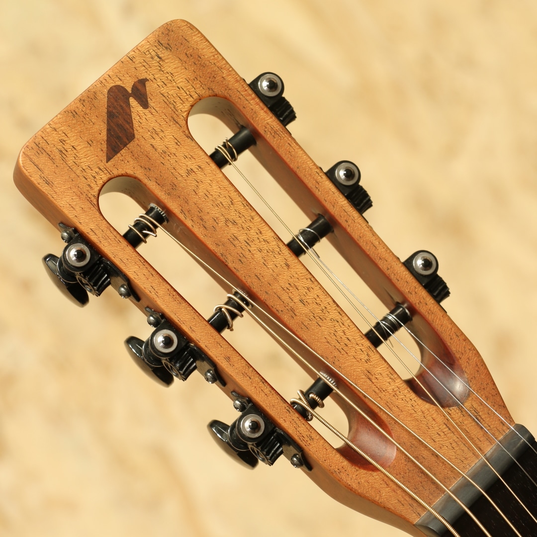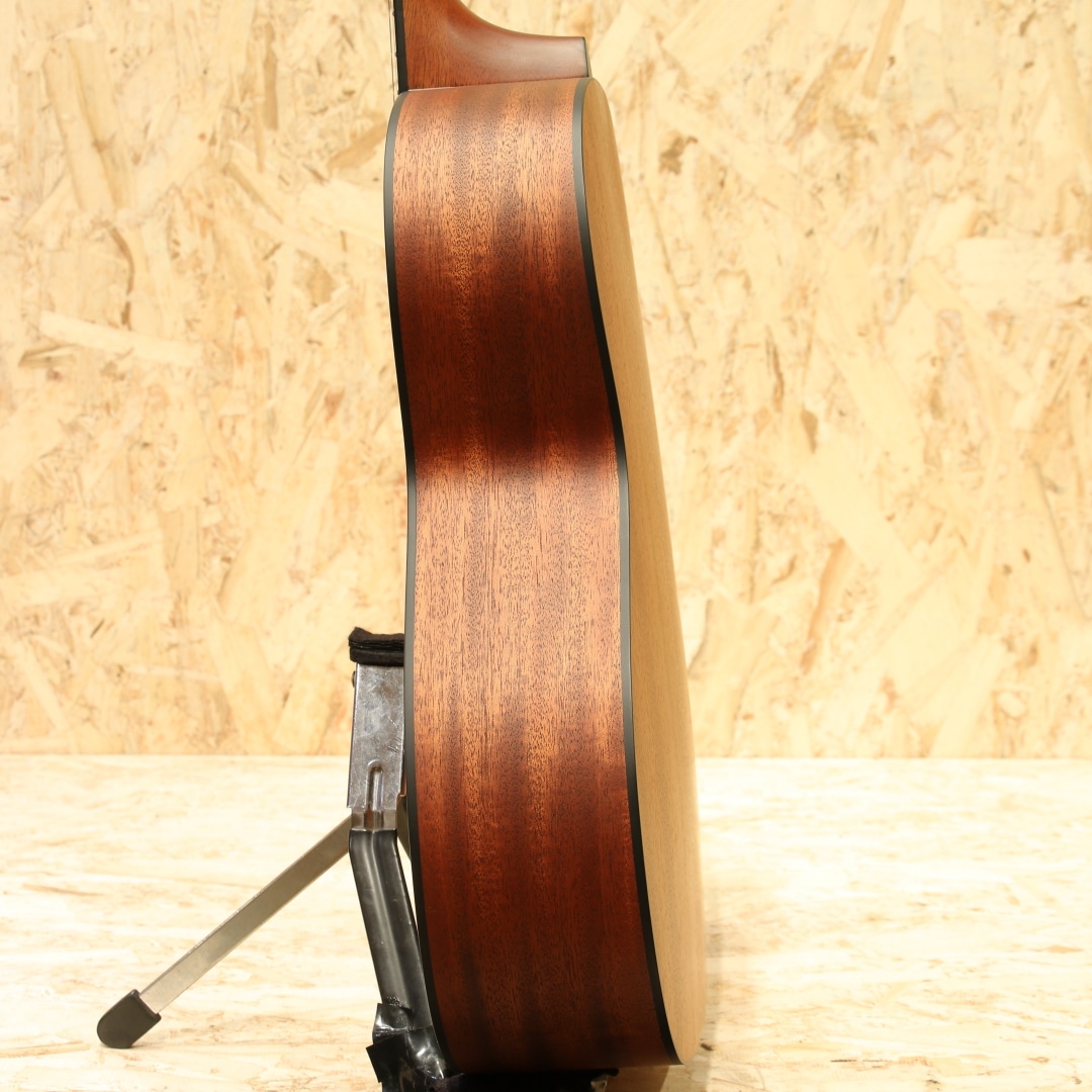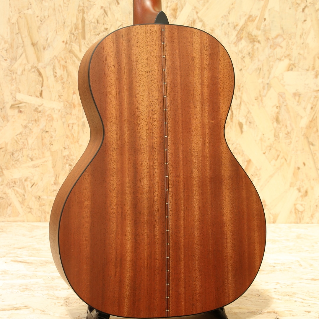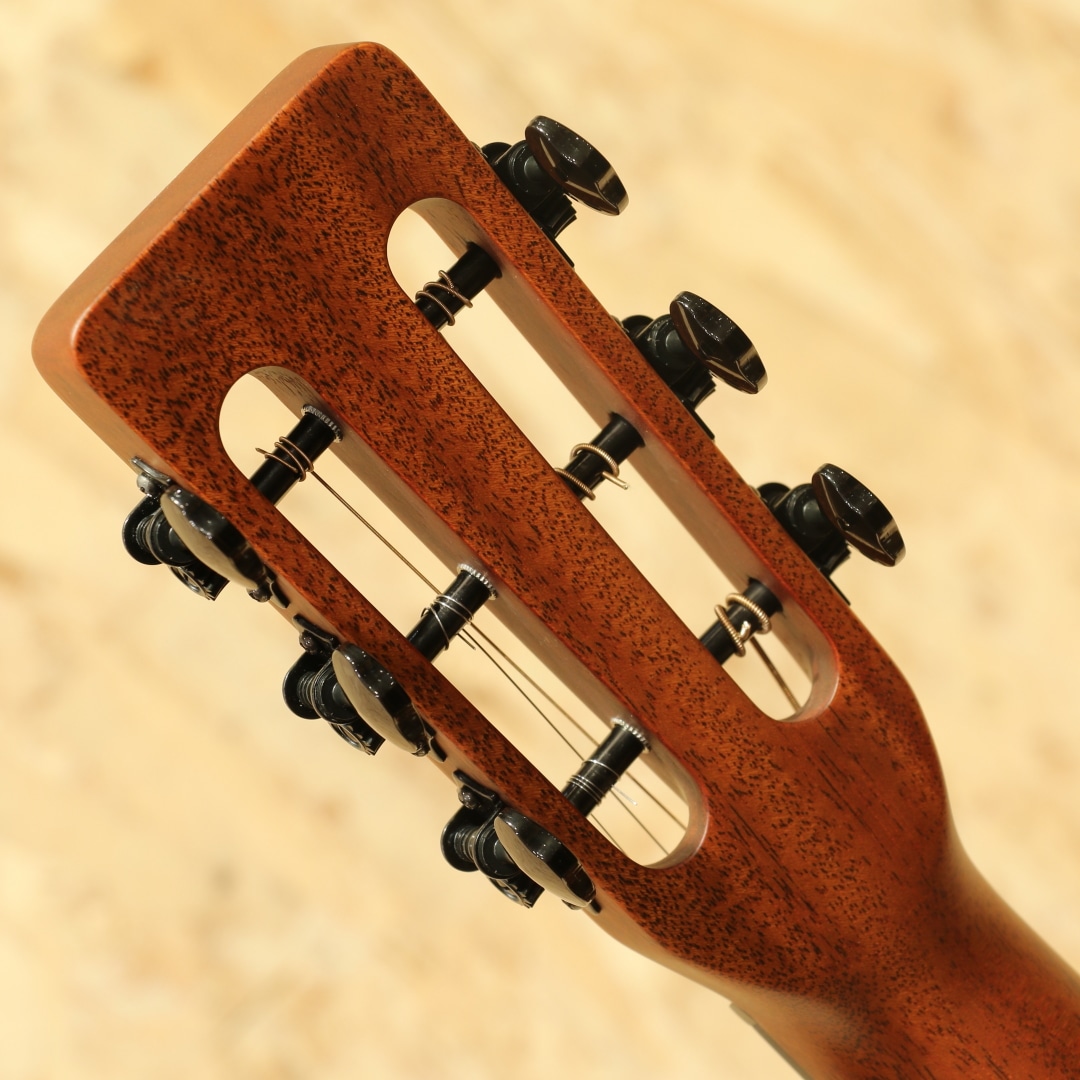 熟練の職人によって半手工ラインで丁寧に製造される、現代の国産モーリスギター。かつての大量生産の面影はなく、各工程を担当する専門スタッフによる確かな技術が注ぎ込まれています。本器はショップオーダーによるY-91 Custom 2021年製USED品。オールマホガニー単板ボディに、12フレットジョイントとスロテッドヘッドを組み合わせたクラシカルなニューヨーカースタイルが魅力です。ブラックセルバインディングで装飾された小ぶりなボディに、マホガニーネック、ローズウッド指板&ストレートブリッジを採用。ナット幅43mmのレギュラーネックに薄手のラウンドシェイプ、扱いやすい630mmのショートスケールを備え、柔らかなテンション感と高い演奏性を実現しています。マットフィニッシュによるさらりとした手触りと、素朴で品のある外観も印象的。コンパクトなボディながら、ニューヨーカースタイル特有の奥行きある響きと、オールマホガニーならではの甘くオーガニックなトーンを楽しめる一本です。全体的に使用感は極めて少なく、大変美しいコンディションを保っています。ゆったりとリラックスして弾ける、心地よい鳴りのアコースティックギターです。汎用セミハードケースが付属します。