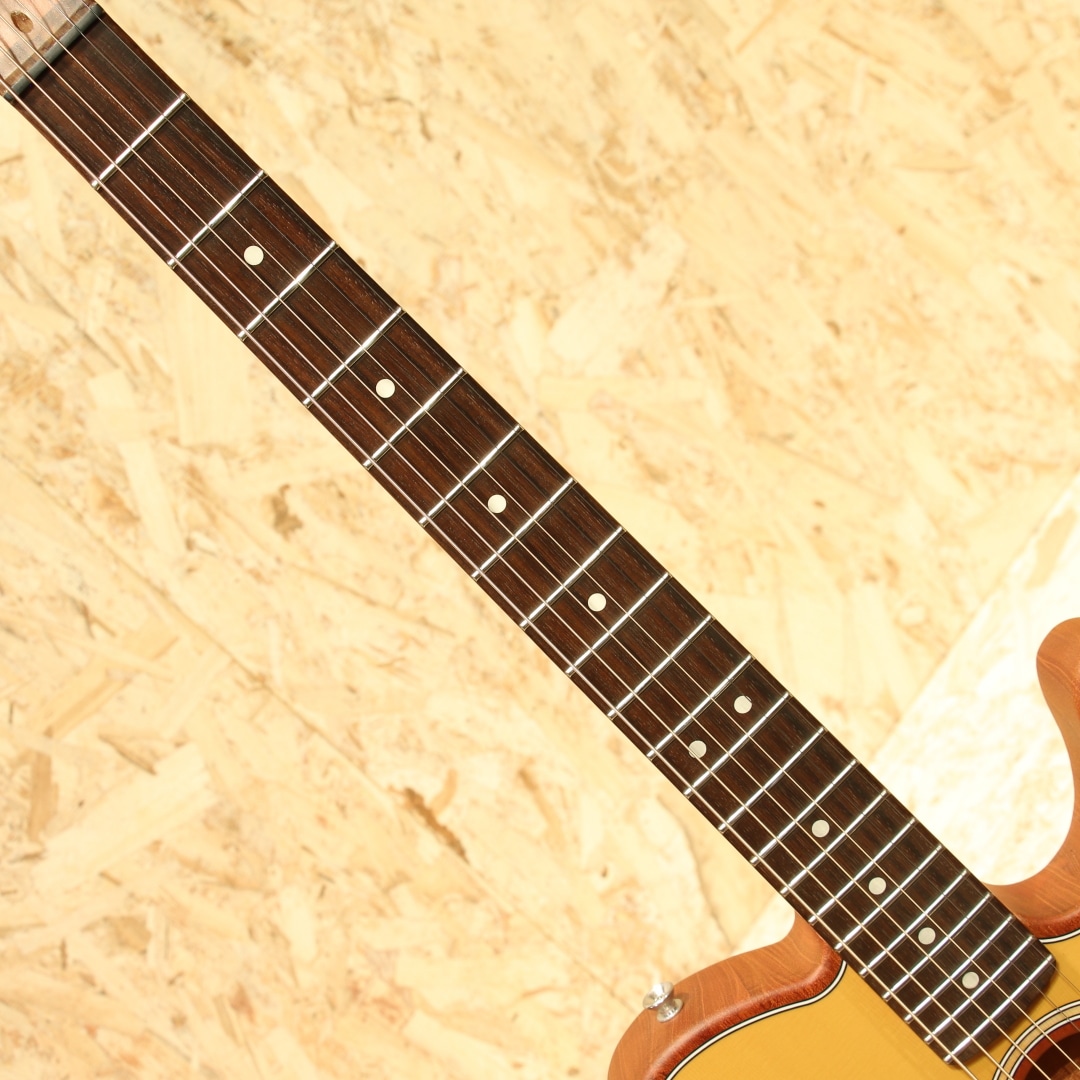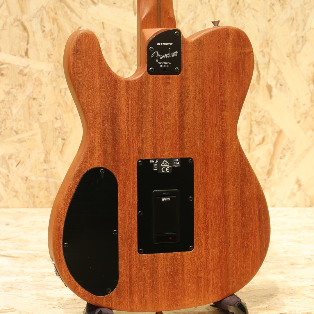 "American Acoustasonic Telecasterは常に進化を 続けるフェンダーの精神を体現した楽器です。Fishmanと 共同開発した強力なサウンドプロセッサーを内蔵し、スタジ オワーク/ライブパフォーマンスの両方において、幅広いア コースティックギターのトーンとエレクトリックギターのトー ンを融合した、全く新しいユニークな表現を実現します。本器はアコスタシリーズの中でも人気の高いテレキャスターシェイプのバタースコッチブロンドカラー”'Acoustasonic Player Telecaster BTB”。2022年製USED品です。テレキャスターの形をしながらも重さは約2.7kgとエレキギターと比べると非常に軽量なボディ。ボディをくりぬいたホロウボディ構造故の軽量さですが、生のアコースティックギターに比べてハウリング耐性が高くステージでのパフォーマンスに特に強い仕様と言えるボディです。エレキを普段演奏される方にはアコギの厚みあるボディに違和感を覚えることもありますが、ボディの厚みがエレキギター並みという点も非常に嬉しい点。Fenderが作るギターであるためエレキギターでお馴染みの薄めのCネックシェイプ、エレキギターからの持ち替えにも違和感のないネック。エレキ弾きが探していた違和感の少ない引き心地でアコースティックサウンドを奏でられる欲張り仕様、エレキのようなアコギを実現しています。シンプルながら幅広いサウンドメイク、対応できるシチュエーションの多彩さが最大の魅力。手元のみでの音作りにこだわりたい方、バンドの中でエレキアコギ両方弾く方、宅録で持ち替えずに済むオールマイティなギターとしてもオススメの1本です。ヘッド表側1弦ペグ付近に米粒大の当てキズが1つあるもののその他に特筆するような使用感は見られず、電装系も問題なく作動します。フェンダーアコースティックギターの進化を加速させた革新的なギター。是非お手元でお楽しみ下さい。オリジナルギグケースが付属します。