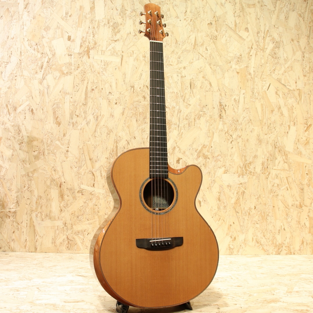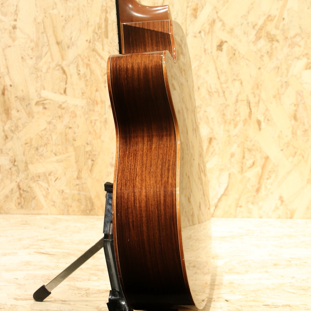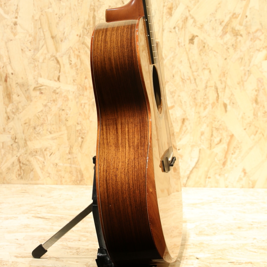 1962年より福岡久留米にてギター製造を行う老舗純国産ギターブランド、アストリアスギター。現在もベテランを中心とした約15名のスタッフで運営しています。腕利きの職人達が自らの感性によってボディシェイプから内部構造まで完全にオリジナルデザインしたフィンガーピッカー向けの16インチギター”グラン・ソロ・プレミオ”。本器はシダートップ、インディアンローズウッドサイド&バック仕様の2021年製USED品。マホガニーネック、エボニー指板&ブリッジ、オリジナルゴトー510ペグ、コアウッドバインディング、ベネチアンカッタウェイ、スキャロップドXブレイシング、後付けにてK&K Trinity Pro System(トリニティ・プロ・システム)搭載。ソフトなタッチでも充分な音量が得られるフィンガーピッキングに最適なサウンド。通常のグランソロにカッタウェイ、ボディエルボー部のコンター加工、さらにネックヒールサイドのカット加工が加わっており、非常に高いプレイアビリティを誇ります。また、通常のグランソロよりも胴厚をわずかに厚く設計することで、ピッキングレスポンスを損なうことなく、さらに深みのある豊かな音量を実現しています。シダートップ特有の柔軟で広がりのあるサウンド。基音を感じながら、繊細に響くアストリアスサウンド。くびれの深いオリジナルシェイプは16インチの大きさを感じさせず、自然と身体に馴染みます。搭載ピックアップはK&K社Trinity Pro System(トリニティ・プロ・システム)、3つのコンタクトピエゾと内部に伸びるグースネックマイクを専用のプリアンプを通してブレンド出力します。またプリアンプ側にはミックスのモノラルアウトとステレオアウトがあり、スタイルに応じての使い分けが可能。どちらのパターンであっても、ピエゾピックアップとマイクロフォンを独立してのバランス調節が可能です。余すことなく奥深く明瞭な鳴りをアウトプットしてくれます。ボディバインディングやブリッジに打痕やそれによる塗装欠けが見られます。トップやバック面にも打痕や擦り傷、8と10フレットのネック裏に打痕、擦り傷と外観上の使用感は強いですが表面上のものでご使用への影響はございません。ネックコンディションは良好、低めな弦高設定でフィンガースタイルをこれから始められる方にもオススメの1本です。年間でもわずかな生産のみとなるソロシリーズ最高峰のピックアップ搭載USED品。是非ご検討ください。軽量かつ保護性に優れたスーパーライトケースが付属します。