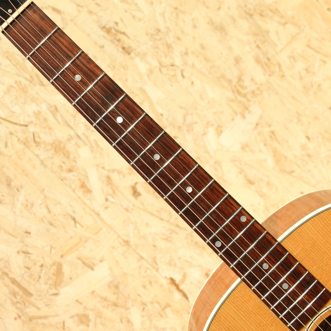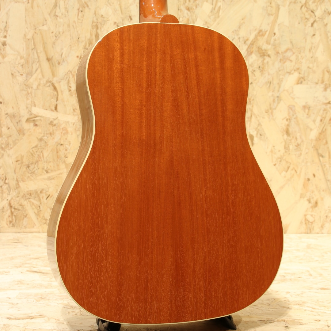 ギブソンフラットトップのコアなマニアからの人気も高いJ-35のマンスリーリミテッドモデル。1936年から1943年の短期間に実際に生産されていたJ-35。製造時期によって様々な仕様が存在しますが本器はナチュラルカラー仕様の1本。シトカスプルーストップ、マホガニーサイド&バック、マホガニーネック、ローズウッド指板&レクタングルブリッジ、スロットサドル、クルーソン刻印なしペグ、スクリプトヘッドロゴ&バンナーロゴ、パール指板ドット、オリジナルファイアストライプピックガード、スキャロップドXブレイシング、ナチュラルフィニッシュ。J-35は名器J-45やJ-50の前身にあたるモデル。Jumbo、Advanced JumboからJ-45へと続く橋渡し的な立ち位置として知られ、その実仕様変更も多く様々な仕様が存在しました。ナチュラルカラーは後期から製造開始されています。このモデルはプリウォースクリプトロゴにバンナーロゴが入った40sの雰囲気をまとった仕様。オリジナルはロングサドルですが、現代風にアレンジが加えられておりスロットサドル仕様。ネックグリップも三角を感じながら現代的な丸みのあるやや薄手のグリップ仕上げ。握り込みやすく馴染みやすい印象です。繊細な音色かつラウドな出音が特徴。ストロークでは爆発力のある大胆なサウンドで、フィンガーでは繊細に情緒豊かに。素朴で甘い音色から、明るい爽やかな音色まで幅広い表情を見せてくれます。ピックアップにはL.R Baggs Elementを搭載しておりボリューム1つで操作も簡単、幅広い用途にも応えてくれる仕様です。僅かな塗装のへこみやうっすらとした擦り傷などはありますが、光の加減などで分かるような表面的なものが多く比較的使用感の少ない綺麗な状態が保たれています。ネック/プレイコンディションも良好です。スクリプトバナーロゴやファイヤーストライプは非常に人気の高い仕様、エレアコ仕様ですぐにでもステージやレコーディングで活躍してくれる実践仕様の1本です。現在のスタンダードモデルと同タイプのオリジナルハードケースが付属します。