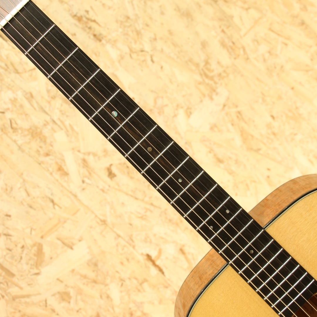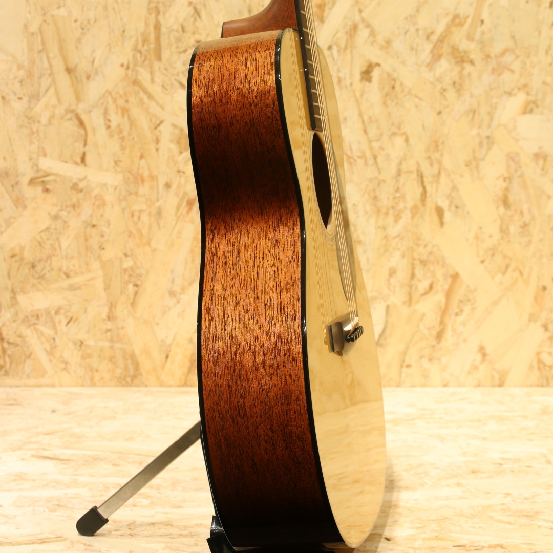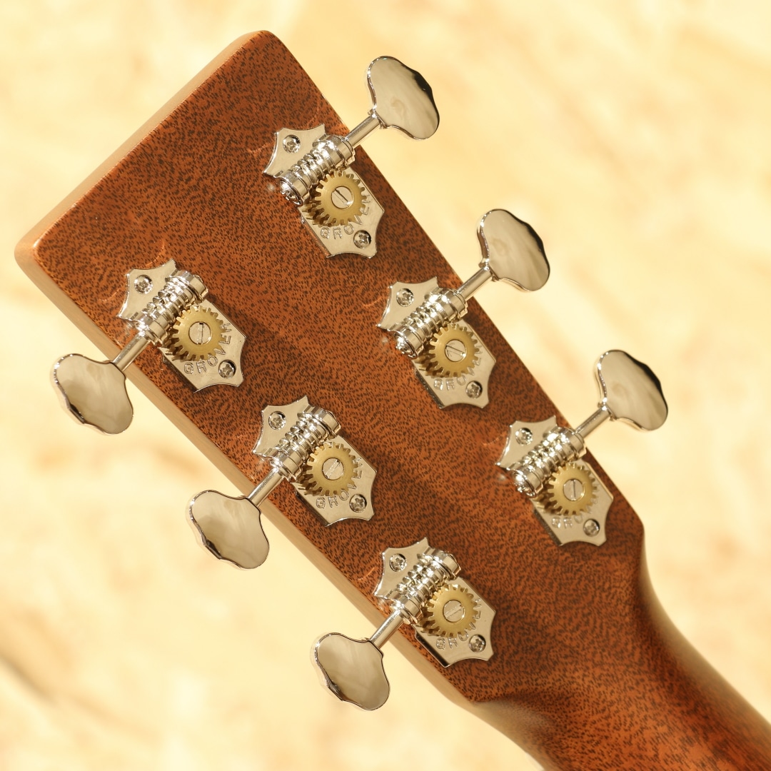 マーチンを代表する機種"OOO-28"と並び、もうひとつの側面を見せるリプルオーサイズのロングセラーモデル"OOO-18"。いくつもの仕様変更を繰り返した長い歴史の中で、2025年度に新たなる進化を遂げた最新版。スプルーストップ、マホガニーサイド&バック、エボニー指板&ブリッジ、チェッカーフラッグバックストリップ、グローバーオープンバックペグ、オールドスタイル18ドット指板インレイ、べっ甲柄ピックガード、44.5mmナット幅、ゴールデンエラ(GE)モディファイドローオーバルネックシェイプ、ゴールデンエラ(GE)スキャロップドXブレイシング。スタイル18では今回5点の仕様変更が加えられ大きなところではモダンデラックスのようなGEブレイス形状、GEネックシェイプへと変化したスタンダードシリーズ。細やかな部分ではナット形状の変化、ボリュート形状の変化、指板端の面取り処理、ネックヒールの形状、ブリッジ形状に変更が加えられています。ナット形状は2017年以前のように底面に角度を付けられたナット形状に、指板厚を薄くし指板端の面取り加工を施すことでより握り込みやすく手に当たらないような演奏性への配慮、ネックヒールはより滑らかな曲線を描く形状へ変化しこちらもよりヴィンテージライクなルックスにするための一端を担っています。何よりもブレイシングの変更が大きなところでしょう。GEブレイス形状のスキャロップブレイシングとなることでより戦前の仕様へとグッと近づきました。通常のブレイシングに比べ、Xの交点箇所のブレイシングに厚みを持たせより強固な支点となり、スキャロップが始まる位置が早く角をそぎ落とした形状。その為、トップ面の振幅が大きくなり、軽いタッチでもしっかりとした音粒をアウトプット、直前のモデルと比べても奥行きがありながら明瞭さも増したサウンドとなります。太いサウンドと明るく明朗とした響き、ドライブ感のあるトーンはそのままに。スタンダードな000らしいサウンドバランスの整った、レンジの広い柔らかな響きも持ち合わせます。フィンガリングもしやすく、このオープンなトーンをバーサタイルに使えます。ピックでの演奏ももちろんフィンガーピッキングでも気持ちよく反応してくれる本器。より深化したワールドスタンダードモデル。古きを訪ね新しきを知る、ゴールデンエラ期の良いところと現代に要求される演奏性を掛け合わせた現代のスタンダード。OOO-28に並びもうひとつの顔であり続けてくれる事を確信させてくれる"OOO-18"話題の最新仕様、是非お手元でご体感下さい。オリジナルハードケースが付属します。
