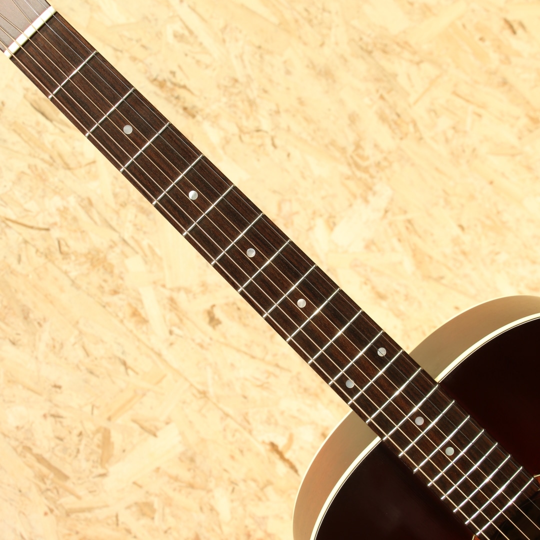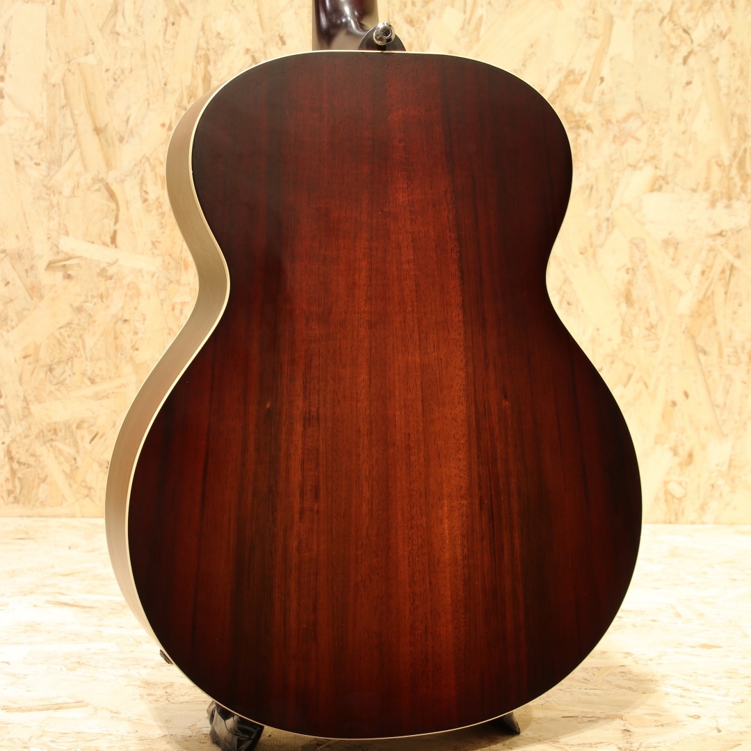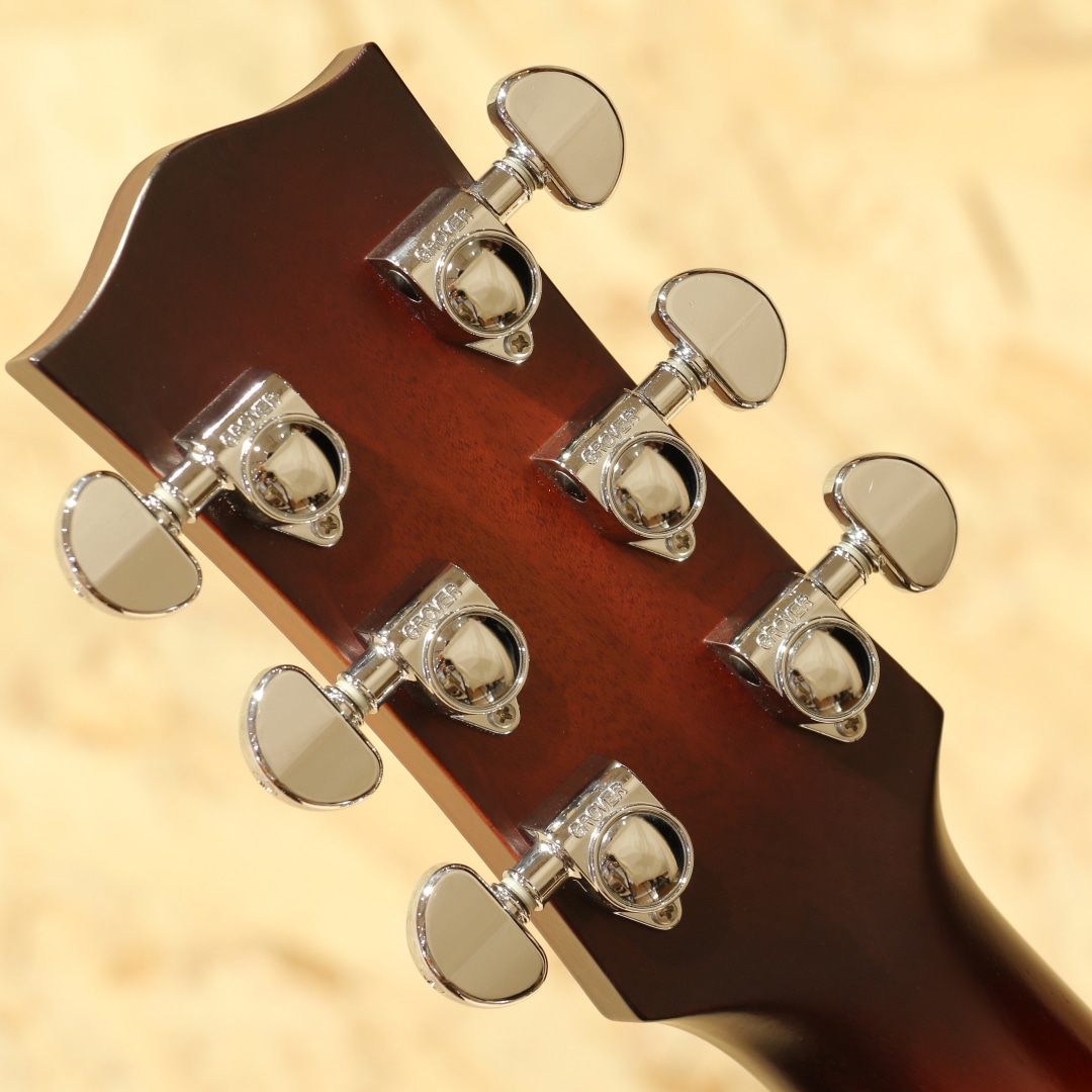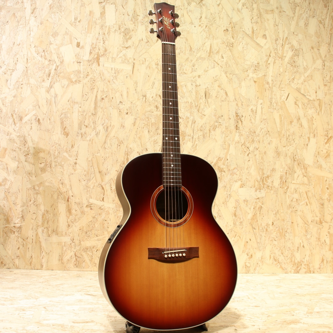 オーストラリアを代表する老舗ギターメーカー"MATON"。1946年、ギター製造会社がそれまでは存在しなかったオーストラリアに設立され、古くから地元ミュージシャンがこぞって愛用するブランドです。現在では世界を魅了するスーパーギタリスト"トミー・エマニュエル"が実践を通じてその高いポテンシャルを露呈し、音に煩いソロギタリストやスタジオ系ミュージシャンを中心に世界中で高く評価されています。本器はメイトンのマスタールシアーにより開発されたSolid Road Seriesより滅多に流通の見ないジャンボシェイプのレアモデル”SRS70J”のUSED品!レッドシダートップ、オーストラリアンブラックウッドサイド&バック、クイーンズランドメイプルネック、ローズウッド指板&ブリッジ、AP5Proプリアンプシステム搭載。トライトーンにて仕上げられたサンバーストは通常では製作されない特別カラー。メイトンブランドとしては珍しい16インチのジャンボボディ。低音から高音域にかけての音の立ち上がり反応が良く、弾きやすくバランスが取れたトーン、テクニカルなプレイにも追従する抜群の演奏性は健在。本サイズならではの押し出しのある中音域、ストローク時の和音のまとまったサウンドは歌モノのバッキングにもマッチします。搭載P.U.システムは"AP5Pro"。アンダーサドルピエゾとコンデンサーマイクのブレンドにより、アコギ本来の空気感から鋭くパワフルなピエゾサウンドまで手元での音作りが直感的に行えます。トレブル/ベースのEQに加えミドル/フリケンシーも備えられており、非常に幅広い実用的なセットアップが可能です。プレイの際に体が擦れやすいくびれやロウワバウトやサウンドホール周りに摩擦による塗装のテカリが見られますが、しっかりと弾き込まれてきたことがうかがえる使用感です。ヘッド先端にはクリップチューナーが取り付けられていたと思われる跡が確認できます。その他、表面的な細かな擦り傷などありますが、致命的な傷や修復歴はなく演奏性は抜群な状態がキープされております。ネックコンディションも大変良好、メイトンらしい低めな弦高設定でフィンガースタイルからフラットピックを使ったテクニカルなスタイルまで難なくご使用いただけます。やや強めのピッキング時には音のビビりなど見られますが演奏性を優先してのセッティングとなっています。アグレッシブなアタック音から倍音の繊細さまでリアルにアウトプットしてくれるラインサウンド。本器の現行仕様はスプルーストップの為、それとは異なる違った音色をお楽しみいただけます。是非お試しください。オリジナルハードケースが付属します。