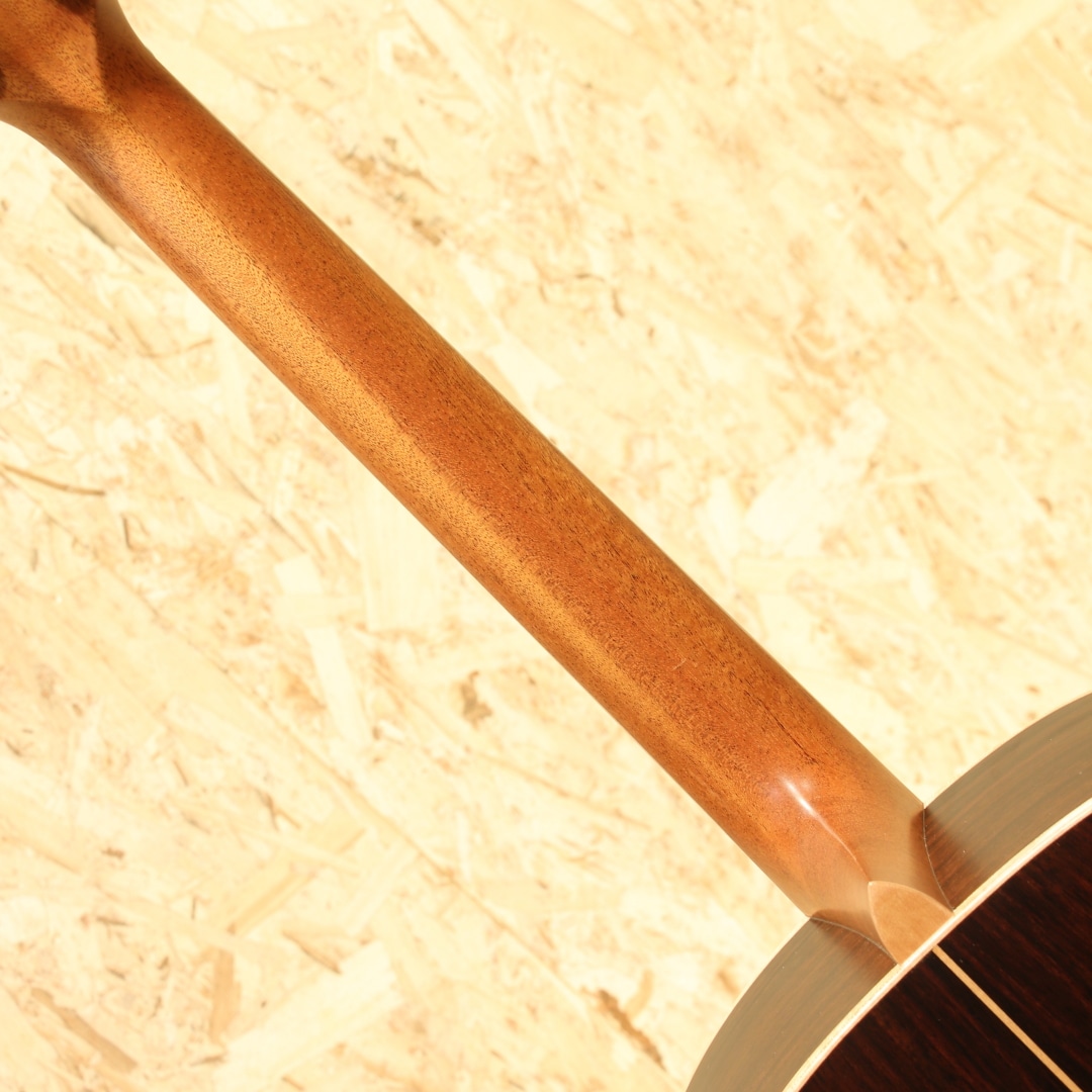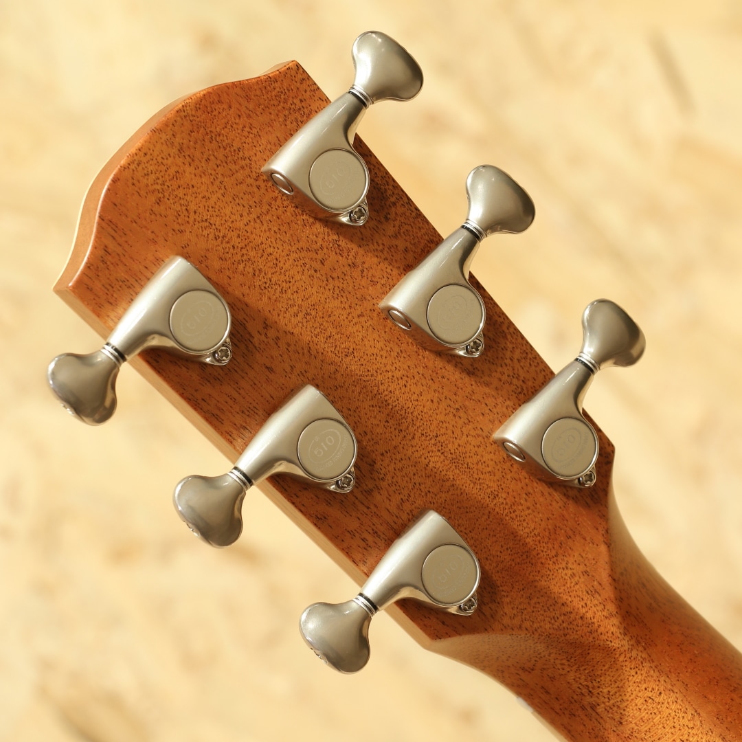 岐阜県の工房にて手作りにこだわり製造を続けるヤイリギター。世代を超えてずっと愛され続けるギター、年月を重ねても色あせないデザイン、使い込むほどに深みが増す音色をコンセプトとして現在でも約30名程の体制で1日20本程のペースで製造されています。海外の著名アーティストを始め、国内プロアーティストからも大きな支持を集めているブランドです。本器は可愛らしいルックスで本ブランドの中でも一際人気なAngelシリーズから同シリーズの最大サイズのロウワバウトを持ちながら深いくびれで抱えやすいBLシェイプをベースにカスタムされた1本。2024年製USED品。シダートップ、ローズウッドサイド&バック、マホガニーネック、ローズウッド指板&ブリッジ、Gotoh510ペグ、パール指板ドット、クリアピックガード、ウッドロゼッタ、ナチュラルカラー、スキャロップドXブレイシング、ボディエンドにはストリップピン装着。いわゆるスモールジャンボに近いシェイプを持つBLボディは16インチのロウワバウトと深いくびれを持ち、体にフィットしやすい印象です。シェイプの影響からかサイズ感以上のパワフルさが特徴で、ストローク時の明快なサウンドはドレッドノートのようなボリューム感。それでいてやや小振りなサイズとシダートップがゆえの立ち上がりの早い出音、ローズウッドの明瞭で華やかなトーンと相まって美しい響きを奏でます。45mmナット幅とやや広めな設定ですが、薄手のVシェイプネックで握った際の圧迫感はありません。フィンガースタイル、細やかなフレージングへの対応力も併せ持ちます。肌馴染みの良いサテンフィニッシュも扱いやすい魅力の1つです。全体を通しても極表面的な擦れキズが僅か見られる程で非常に使用感の少ない綺麗な個体。演奏性良好、サドルの高さにも余裕がある為弦高調整をする幅も残されています。国産ならではの安心感、長く使えるポテンシャルを持った1本です。オリジナルハードケースが付属します。