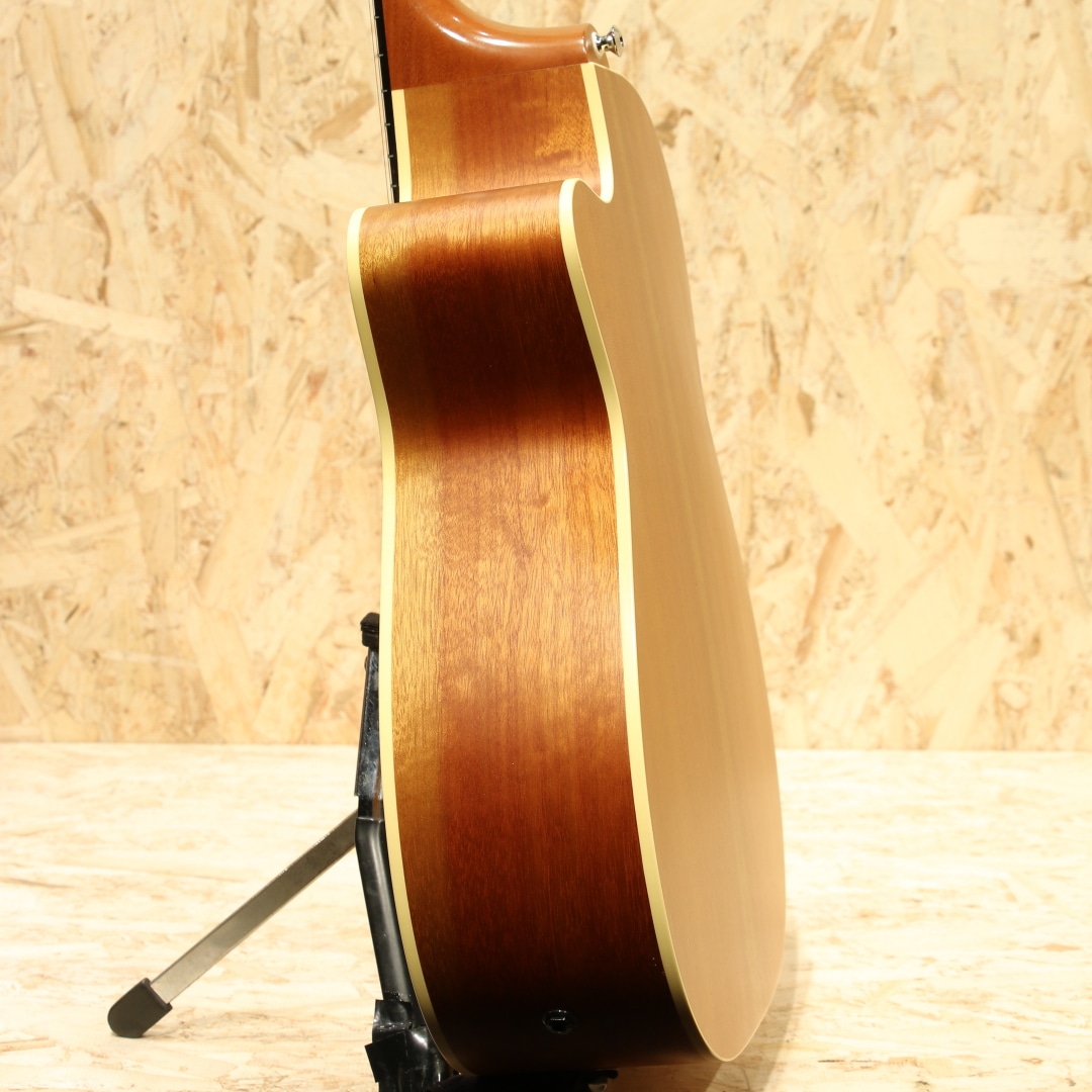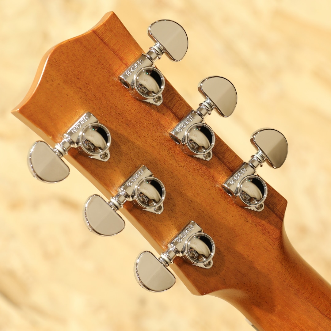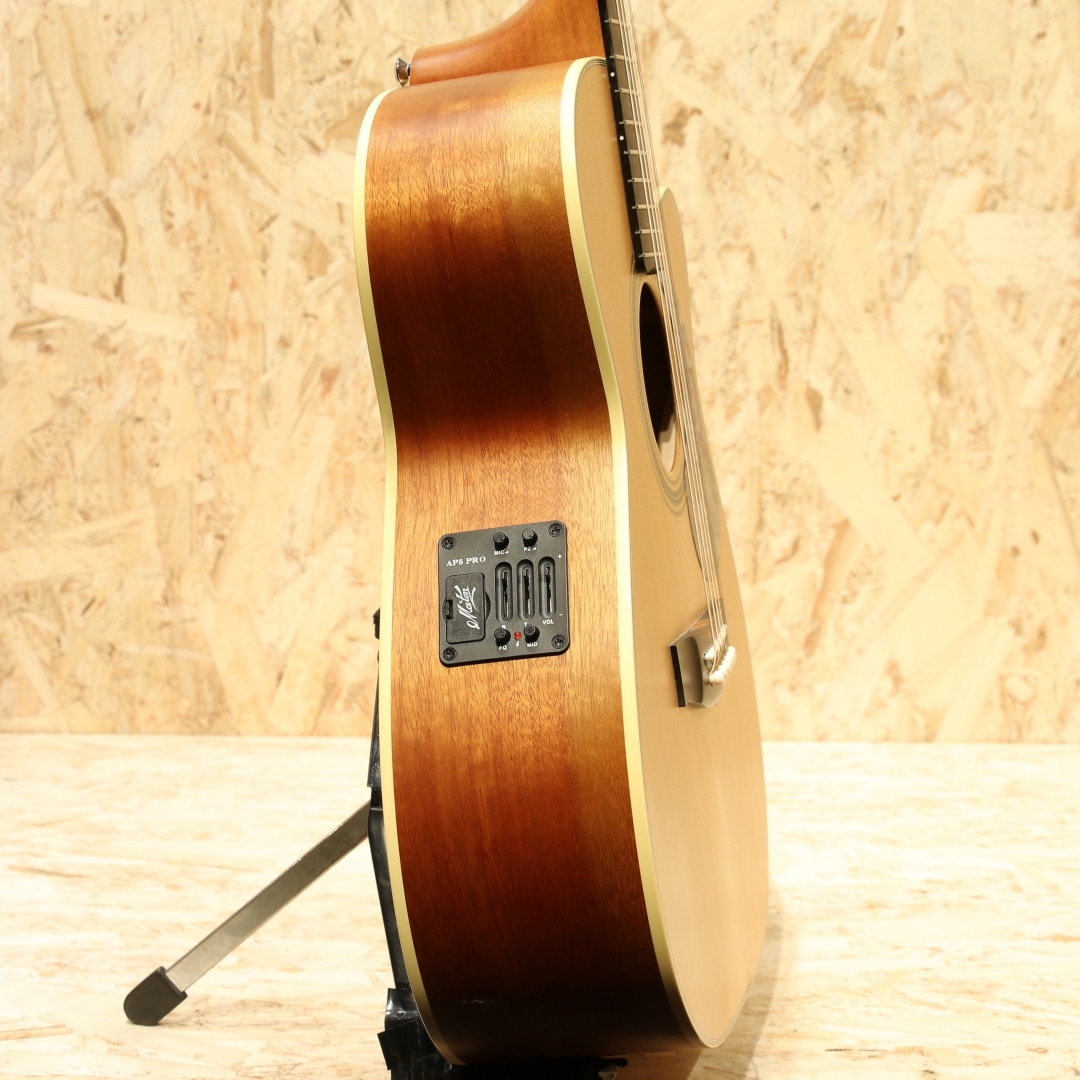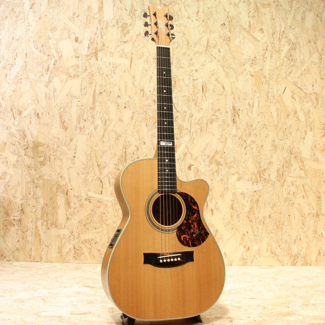 オーストラリアを代表する老舗ギターメーカー"MATON"。1946年、ギター製造会社がそれまでは存在しなかったオーストラリアに設立され、古くから地元ミュージシャンがこぞって愛用するブランドです。現在では世界を魅了するスーパーギタリスト"トミー・エマニュエル"が実践を通じてその高いポテンシャルを露呈し、音に煩いソロギタリストやスタジオ系ミュージシャンを中心に世界中で高く評価されています。本器は定番人気モデルEBG808シリーズ、世界的なギタープレイヤーであり、”アコギの神様”と称される、”Tommy Emmanuel(トミー・エマニュエル)のシグネチャーモデル。"EBG808C TE2020年代製USED品です。"AAA"グレードシトカスプルーストップ、クイーンズランドメイプルサイド&バック、セレクトクイーンズランドメイプルネック、エボニー指板&ブリッジ、グローバークロームロトマチックペグ、MOPドット指板ポジション、べっ甲柄ピックガード、ヘリンボーンロゼッタ、ベネチアンカッタウェイ、"AP5Pro"プリアンプシステム搭載。一般的なOOサイズより少し幅広なロウワバウトと深めの胴厚を持つ本器。弾きやすくバランスが取れたトーン、音量がありながらも整ったサウンド、そしてテクニカルなプレイにも追従する抜群の操作性。それらの特徴は完成度が高く、プロ・アマ問わず世界中のプレイヤーから高い評価を得ています。搭載マイクはメイトンの代名詞ともいえる"AP5Pro"。アンダーサドルピエゾとコンデンサーマイクのブレンドシステムで、ピエゾ/マイクの各ボリュームに加え、マスターボリュームを装備。トレブル/ベースのEQに加えミドル/フリケンシーが備えられており、簡単操作で幅の広い実用的なセットアップが可能になっています。コンデンサーマイクがアーム可動式となっており、こちらも簡単操作でのあらゆる対応が可能となっています。トップセンターシームに沿って割れた形跡がございますが、しっかりと補修されており使用上問題はございません。トップ面1弦側カッタウェイ部とくびれ部に材の収縮による塗装の引きがあるもののこちらも綺麗に修繕されております。バック面6弦側くびれ部とボトム部には米粒大の当てキズ、中央下部にはゴマ粒ほどの当てキズ、サイド1弦側シールドジャック付近にもゴマ粒大の当てキズ、ネック1f~6fには爪が当たったように見えるキズが見受けられたりするなどしっかりと弾き込まれてきた確固たる勲章が散見される本器。使用感こそ強いもののネック・プレイコンディション共に良好で即戦力間違いなしの1本です。よりアグレッシブなアタック音から倍音の繊細さまでリアルにアウトプットしてくれるラインサウンド。舞台上でも映えること間違いなし。オリジナルハードケースが付属します。