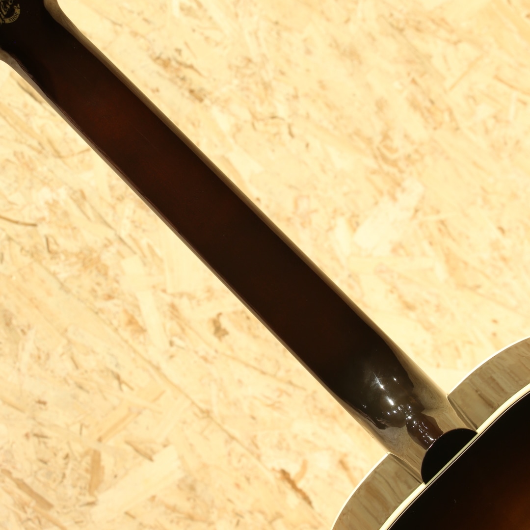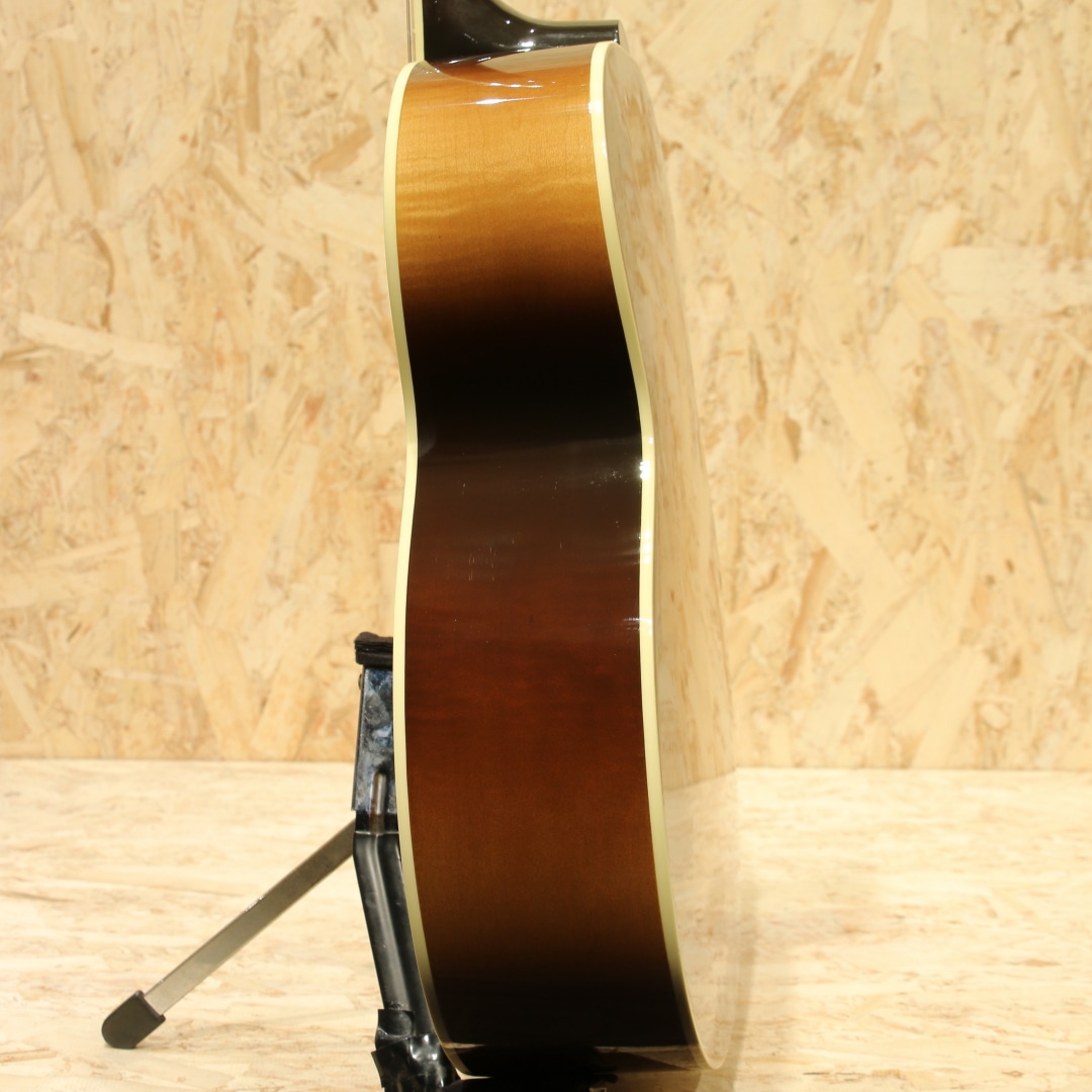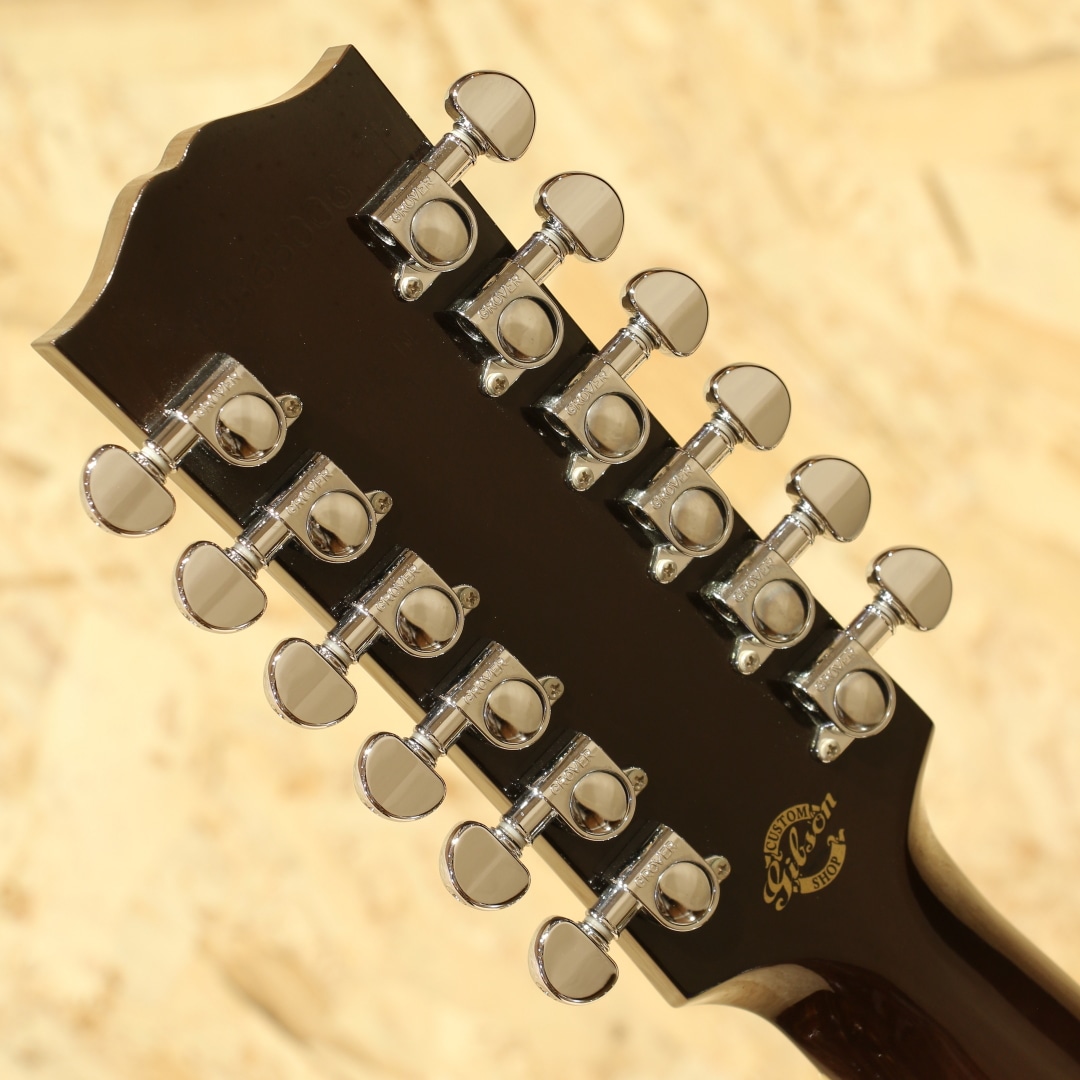 J-200よりも手の届く価格として1951年に発表されましたが当時はあまり注目をされず1959年までしか製作されていないJ-185。優れたトーンバランスはギブソンフラットトップの中で随一と言われ、J-200をダウンサイズした名器としての定評がありギブソンモンタナ工場職人曰く「ピアノの様なサウンド・バランス」と絶賛されるほどサウンドバランスに定評があります。エヴァリーブラザーズがこのサイズのギターを使用していた事でも有名で、現在では多くのアーティストからも支持されており、J-200と比べれば小ぶりで抱えやすく低域から高域までのバランスが非常に良く多彩なジャンルでお使いいただけます。本器は伝統的なルックスとモダンな演奏性を兼ね備えた12弦仕様の”J-185 12Strings”。2015年製USED品です。シトカスプルーストップ・フレイムメイプルサイド&バック、マホガニーネック、ローズウッド指板&ブリッジ、グローバーペグ、ダブルパラレログラムインレイ、べっ甲柄ピックガード、ピックアップにはL.R.Baggs Element VTC搭載。メイプル特有の煌びやかさと12弦が上手くマッチングし、明瞭且つダイナミックなサウンド。弦と弦がボディを通じて相互干渉するが故の馴染み合った音色。エフェクターのコーラスのように別の音がぶつかり合っているような感じも少なく、この響きは12弦ギターでしか出し得ず、イーグルスのホテルカリフォルニアのイントロなどでこのような12弦サウンドを体感することが出来ます。あのサウンドを出すならばやはり12弦でしか成し得ないでしょう。搭載ピックアップが定番のL.R.Baggs/Element VTC。ピエゾ独特の硬さの少ないナチュラルなラインサウンドは数多のミュージシャンから定評があります。サウンドホールに取り付けられた1vol.&1toneのシンプルなコントローラーは初めてエレアコを使用される方でも直感的な操作が可能です。トップ面1弦側ロウバウトにバインディングに沿った塗装引きの様に見える箇所があるものの全体を通して非常に綺麗なコンディションが保たれている本器。ネック・プレイコンディション共に良好。もともと定評のあるJ-185をベースにした本器は発売時同品番を某有名アーティストが使用していることから注目度が高まったものの国内入荷希少の為探されていた方も多いのではないでしょうか。是非お早目にお買い求めくださいませ。オリジナルハードケースが付属致します。