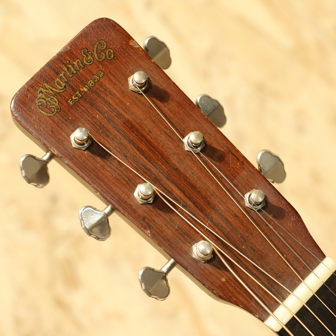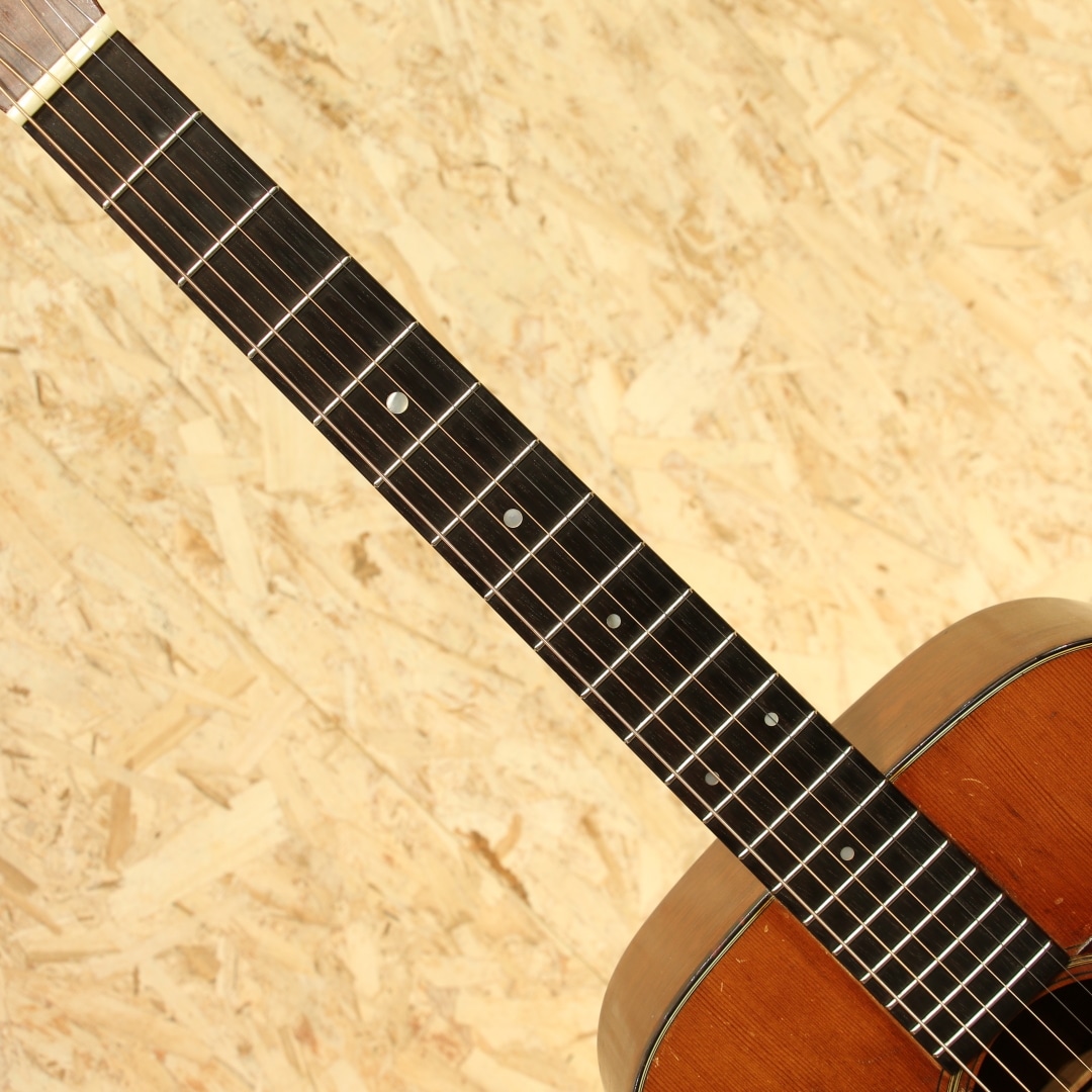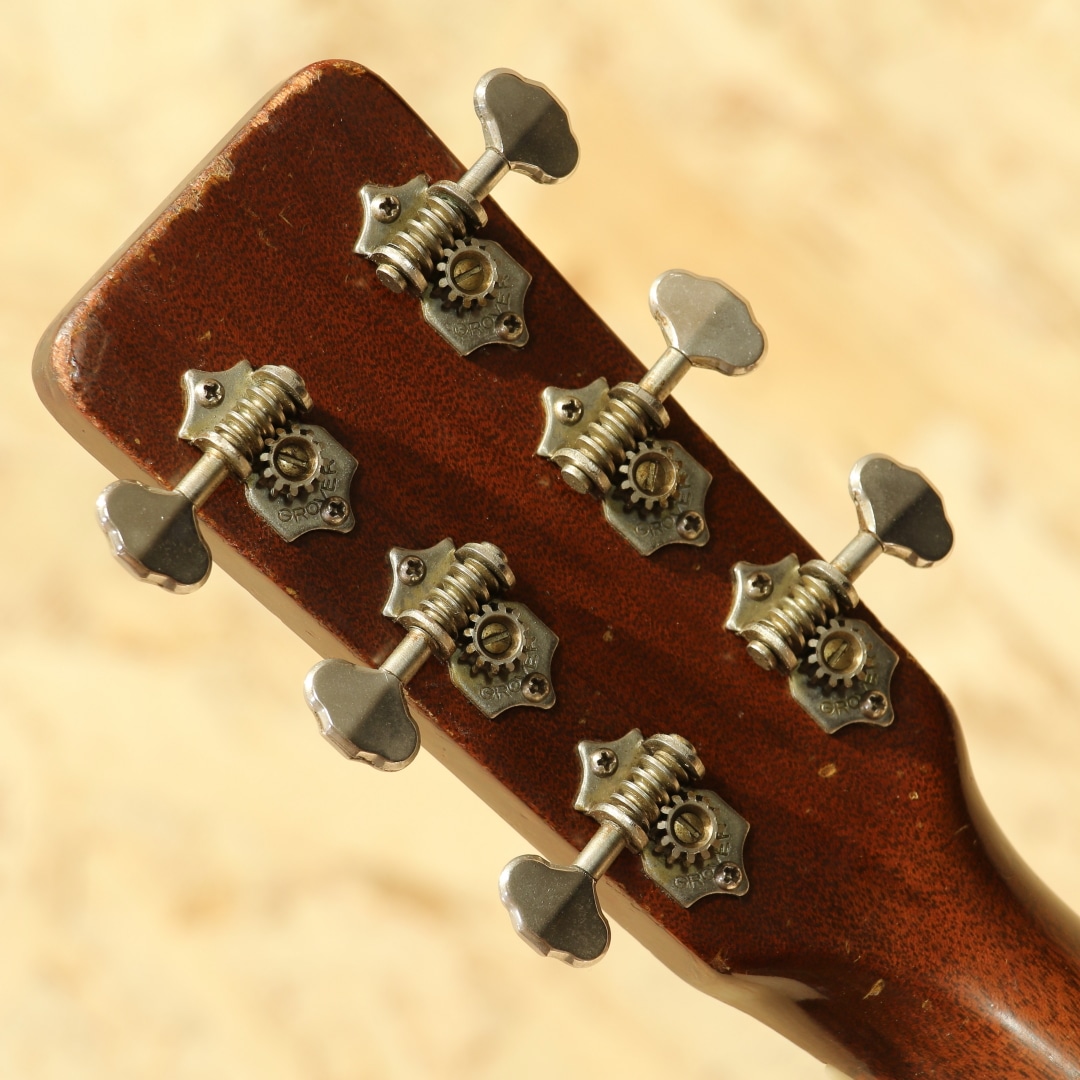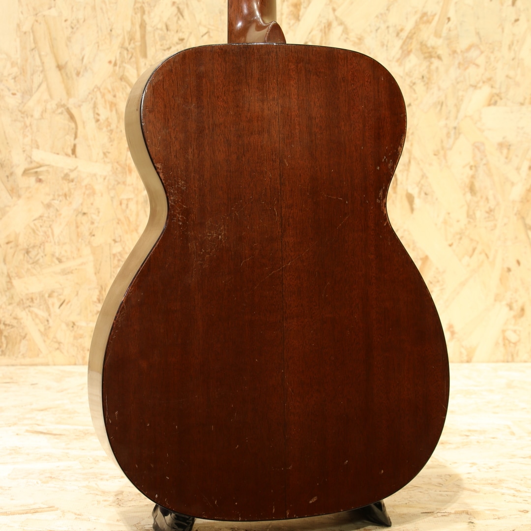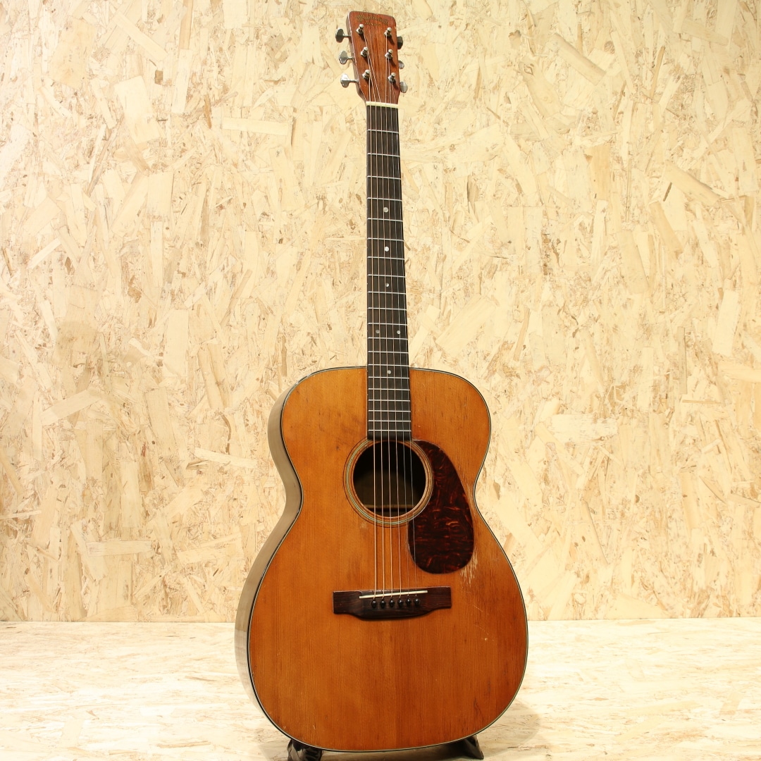 数あるマーチンギターの中でも多くのミュージシャンに愛されるマーチンの隠れた銘器"00-18"。レコーディングやステージ、作曲用などのルームギターとしても活躍してくれる人気の高い中間サイズのOOモデル、本器は1961年製の1本です。スプルーストップ、マホガニーサイド&バック、マホガニーネック、ハカランダ指板&ブリッジ、ロングサドル、ベッコウ柄ピックガード、スチールTバーロッド、オリジナルグローバーオープンバックペグ、ノンスキャロップブレイシング。軽快で乾いた響きはとても小気味よく反応してくれます。ダブルOならではのレンジ感とサスティン、力強くもタイトでノスタルジックな響きから、きらびやかなマーチンらしいトーンまでヴィンテージマーチンのよさを楽しんで頂けます。6弦側サイドロウバウトの膨らみ付近に3か所ほどのクラック修正跡あり。ネックはリセット済みでとてもよい状態をキープ、ブリッジもオリジナルでサドル(サドルは交換)の出代も十分で今後の使用も安心です。フィニッシュはトップの一部まばらに極薄のオーバーラッカー箇所は見られますが、全体的にはほぼオリジナルをキープ。やや傷も多く、色焼けもしっかりした最高に渋いルックス。使用感と割れなどの修理があるため、お求めやすい価格になっていますがしっかり整備されプレイコンディションは抜群、弾きやすくセットアップされたプレイヤーズコンディションです。抱えやすい程よいサイズ感で、理想のサイズとして愛される名器です。ハードケース付属