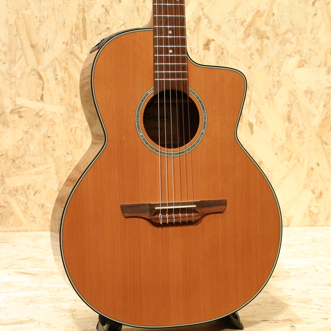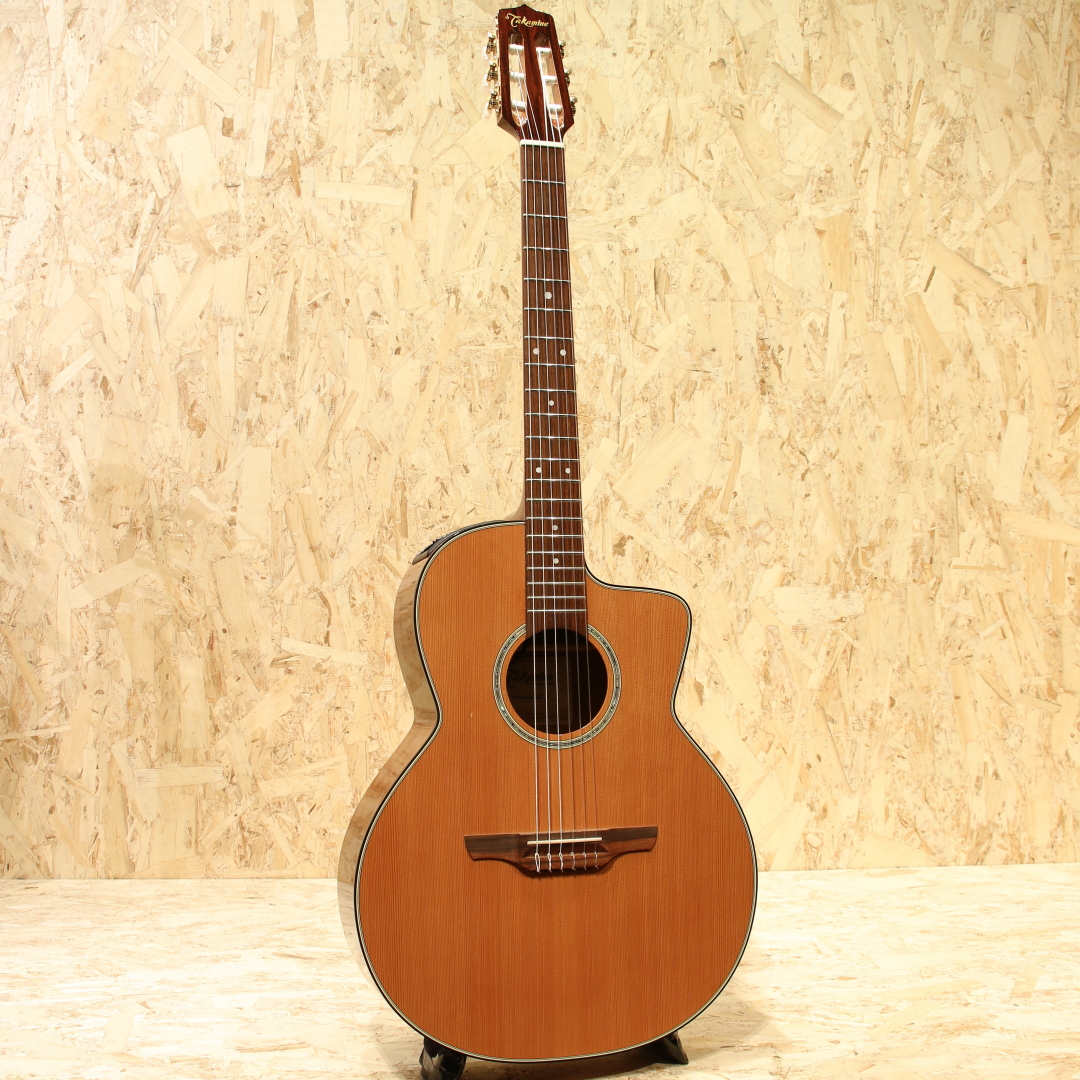 「ものづくり 音づくり 人づくり」をコンセプトに50年以上ものあいだ、日本そして世界のミュージック・シーンやアーティストをギターづくりという形で支え続けてきた国産ブランド、”タカミネ”。長年培ってきたギターづくりのノウハウを現在も継承し、岐阜県中津川市に構えるファクトリーでは今もなお様々なギターを世に生み出し続けています。本器はエレガット600シリーズのサペリ合板を採用したリーズナブルなモデル。"PTU620 NC N"。2022年製USED品です。シダートップ、サペリサイド&バック、マホガニーネック、ローズウッド指板&ブリッジ、オリジナルゴールドペグ644㎜スケール、ナット幅42mmとアコギモデルと変わらずアコギからの持ち替えに苦労しない太さのネックと握り心地が定評のエレガット定番機種です。タカミネが現在の社名に変更したのは1962年の事。それ以前は大曽根楽器という社名で楽器製造を行っていました。当時は歌謡曲、特に古賀メロディが流行っていたこともあり、大曽根楽器でもクラシックギターの製造を多く行っていたそうです。その後大音量化の中でエレクトリック要素に活路を見出し、今日まで続く確かな評価を得るブランドとなりました。杉(シダー)をトップに使用していることで柔らかさやしっとりとした印象を受ける音色。音の伝達性が良くしなやかに心地良く響きながら軽いタッチ感での反応。サペリ特有の明るくカラッとしたトーンとの相性も良く軽快で爽やかに奏でることもでき扱う人を選ばずに使えるナイロンギターに仕上がっております。トップ面6弦付近とカッタウェイ部付近に極小粒の当てキズ、サウンドホール6弦側付近に米粒台の当てキズが1つ、バック面6弦側くびれ部より少しネック寄りのバインディングに何かが擦れたような細かな線キズがあるものの幸い目立つキズは殆どない状態。ネック・プレイコンディション共に整えられており即戦力として期待が持てます。国産らしく丁寧な造りの印象を受ける本器。いつものバンドやレコーディングに、少しナイロンのサウンドを加えたいという方、太めの幅が苦手な方にはオススメしたい1本です。汎用ギグケースが付属いたします。