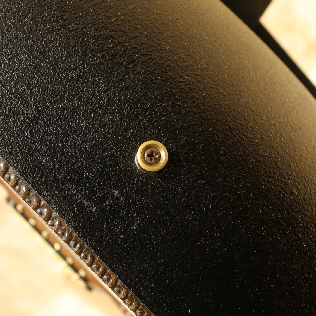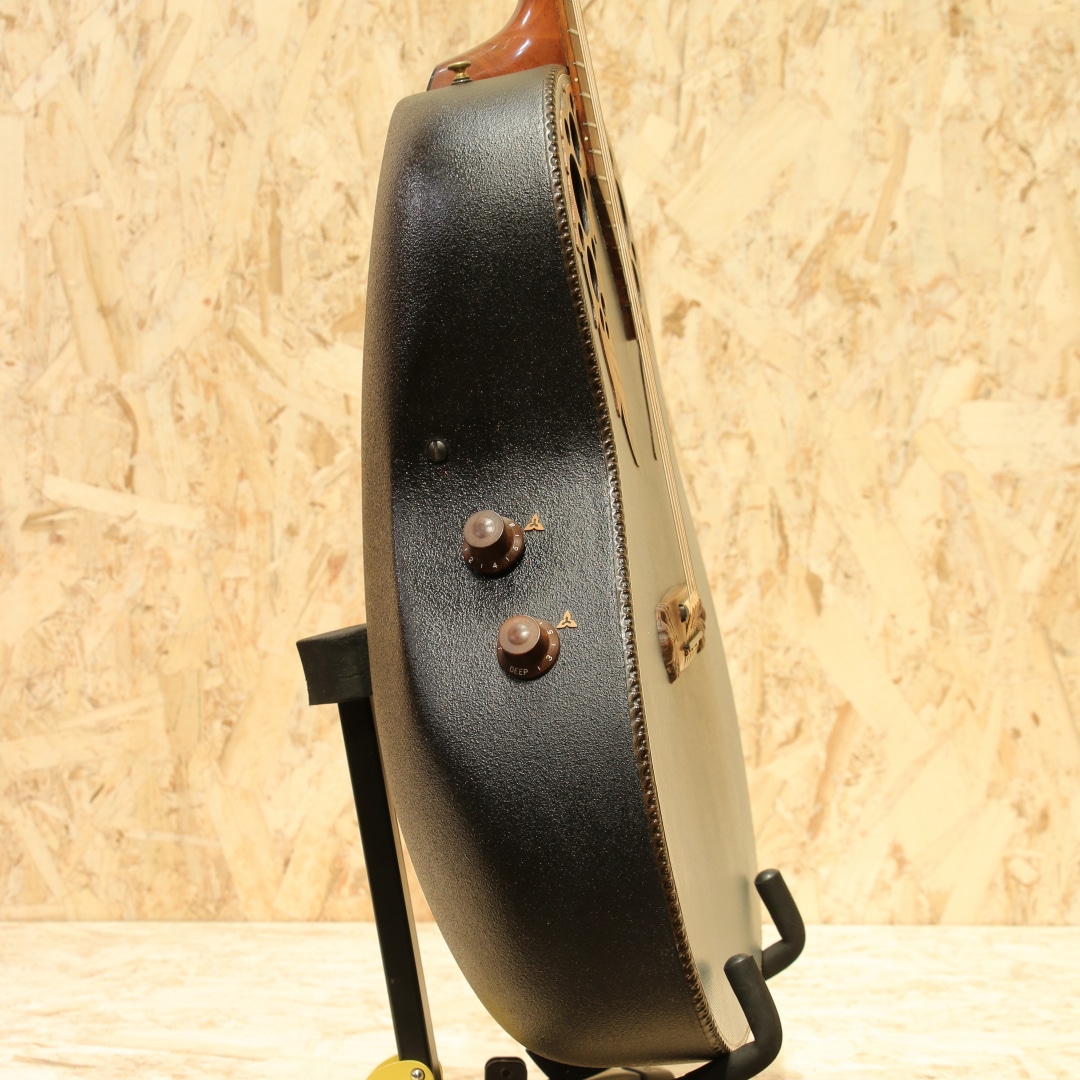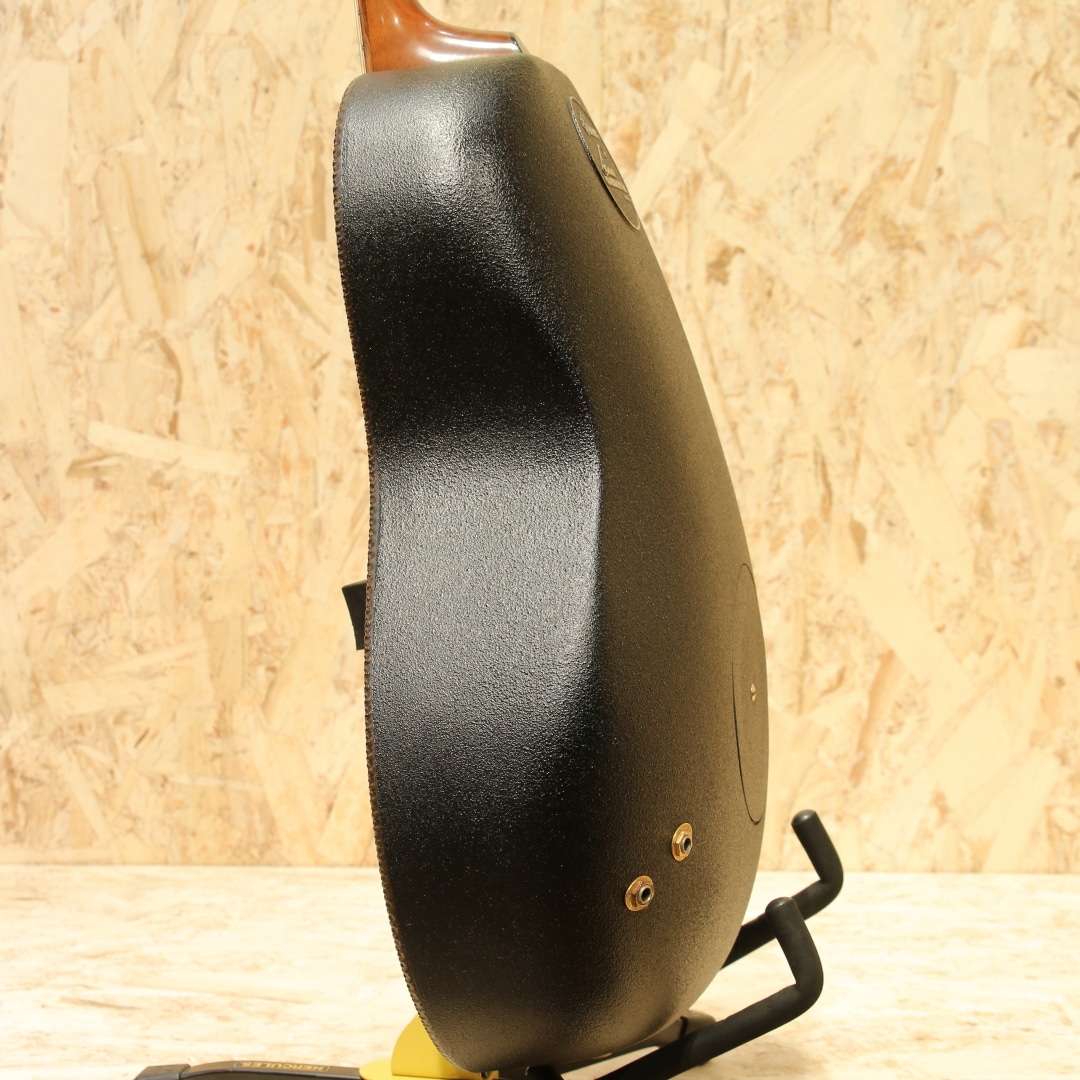 オべーションの創始者チャーリー・カマンの生音へのさらなる探究心から1976年に誕生したアダマス。こちらは一番人気のブルーの個体"1687-8"。本器は1984年製ウッドノブステレオアウトプット期。ウッドトップの約三分の一の薄さでも十分な強度を得られるアダマス独自のカーボングラファイトトップ、リラコード樹脂ディープボウル、ウォルナットネック、ウォルナット指板&ブリッジ、オリジナルシャーラーペグ、ウッド指板インレイ、マルチプルエポーレットサウンドホール、ファンブレイシング、トーンとボリュームの2wayウッドノブ。つややかな質感のヘッドと駒の彫刻等、この頃ならではともいえる芸術品のような精巧な仕上げも人気の1つです。アダマス特有の深みのある野太い響き。ラインでアウトした時の温かみのある音色は近年モノとは一線を画します。1979年から採用されたステレオアウト仕様のピックアップを搭載。シンプルな回路からは現行品にはない音の太さが生まれます。ステレオ出力時、偶数弦の出力がやや弱めですが、アンプやミキサーでの調整にて問題なくご使用いただけるかと思います。指板エンドとトップ面に接着された形跡、また6弦側ネックジョイント箇所の指板とネックの間に埋め跡が見られます。同作業に伴いネック裏に薄く上吹きが施されていますが丁寧なリペア作業の為、雰囲気を損なわない仕上がりです。1弦側の3フレット指板縁に打痕修正跡、同箇所6弦側ネック裏に表面上の打痕、ヘッド彫刻箇所によく見られる白濁が若干ありますが美しい艶やかさは保たれています。ボディトップ、バックのラメも残っており、バック面ロゴも若干の剥がれが見られるものの良い状態が保たれております。斬新なルックスとサウンドでエレアコの最高峰に登り詰めたともいえるアダマス。一見無機質に見えるカーボンボディと工芸品のようなヘッド&ブリッジデザイン、様々な木材でまとめられたサウンドホールエポレット、手作業にて仕上げられた美しいウッドノブ等はサウンドのみならず唯一無二の融合美を持つルックスです。依然として初期モノのアダマスはとりわけ出物が少なく、探されている方も多いのではないでしょうか。ネックコンディションも素晴らしく、プレイコンディション共に大変良い状態、実践仕様の良き相棒としても是非チェックして頂きたい一本です。オリジナルブラウンハードケースが付属します。(一部欠損のサウンドホールカバーが付属します)