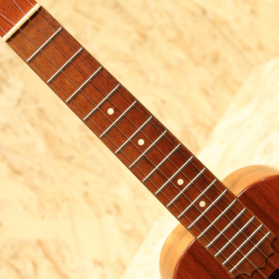 アルヴィン・オカミにより1995年に創設されたコアロハ・ウクレレ。現在は長男のアランと、次男のポールを中心に少数精鋭の職人たちで運営されております。今ではハワイを代表するウクレレメーカーの一つとなったコアロハ。モダンなルックスデザイン、優れた演奏性で、他のメーカーにはないハイファイでクリア、そしてなんと言っても大きな音量が特徴。本器はコンサートサイズのスタンダードモデル”KCM-00”。2010年製USED品です。ハワイアンコアボディ、エボニー指板&ブリッジ、ロゴ入りロトマチッククロームペグ、ドット指板インレイ。モダンなルックスデザイン、優れた演奏性で、他のメーカーにはないハイファイでクリア、そしてなんと言っても大きな音量が特徴。グロス仕上げで杢目の良さが際立ち、音色も艶やかでまとまりがあります。コンサートサイズで演奏の幅も広く、13フレットジョイントでソロ弾きや様々なジャンルに難なく対応可能。フレットのバリが出ないように設計された指板サイドも嬉しい仕様です。ペグ変更により以前に比べ弾けるハイファイさもありながら、芯のはっきりした深みのあるサウンドとなっています。グロス仕上げで杢目の良さが際立ち、音色も艶やかでまとまりがあります。トップ面6弦側ネックジョイント付近とバック面中央と1弦側下部に極々軽度な当てキズがある程度と非常に綺麗なコンディションが保たれている本器。ハワイ製の大定番ウクレレを是非ご体感ください。汎用ソフトケースが付属致します。